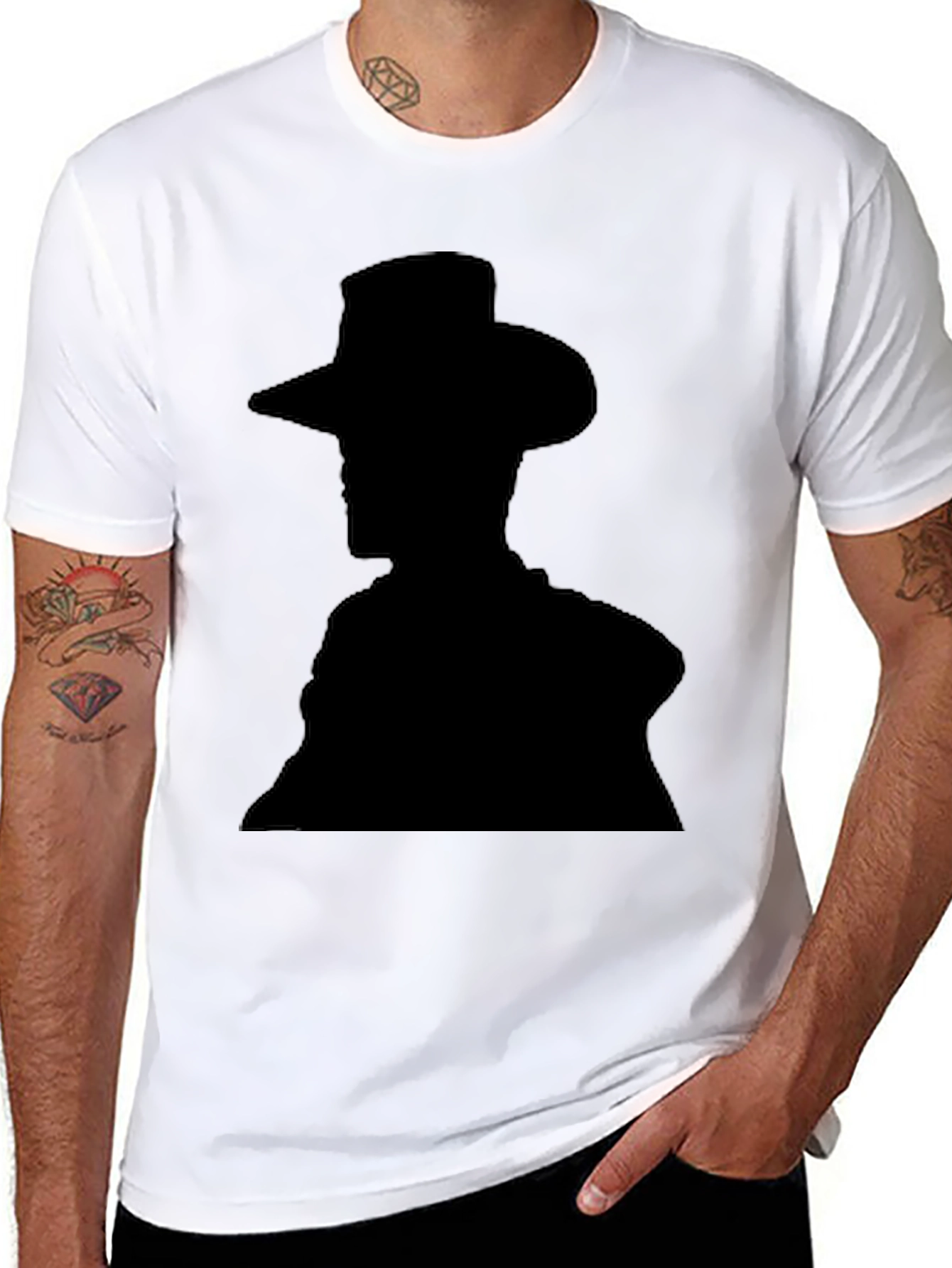 Luce un estilo único con esta camiseta negra de hombre. Presenta una llamativa silueta de un vaquero con sombrero, creando un diseño misterioso y atractivo. Perfecta para destacar entre la multitud, esta camiseta de corte clásico ofrece comodidad y estilo. Fabricada con materiales suaves y duraderos, es ideal para el uso diario, eventos casuales o para expresar tu pasión por el mundo del oeste. Combínala con tus jeans favoritos y botas para un look completo y auténtico. ¡Atrévete a mostrar tu personalidad con esta prenda exclusiva!