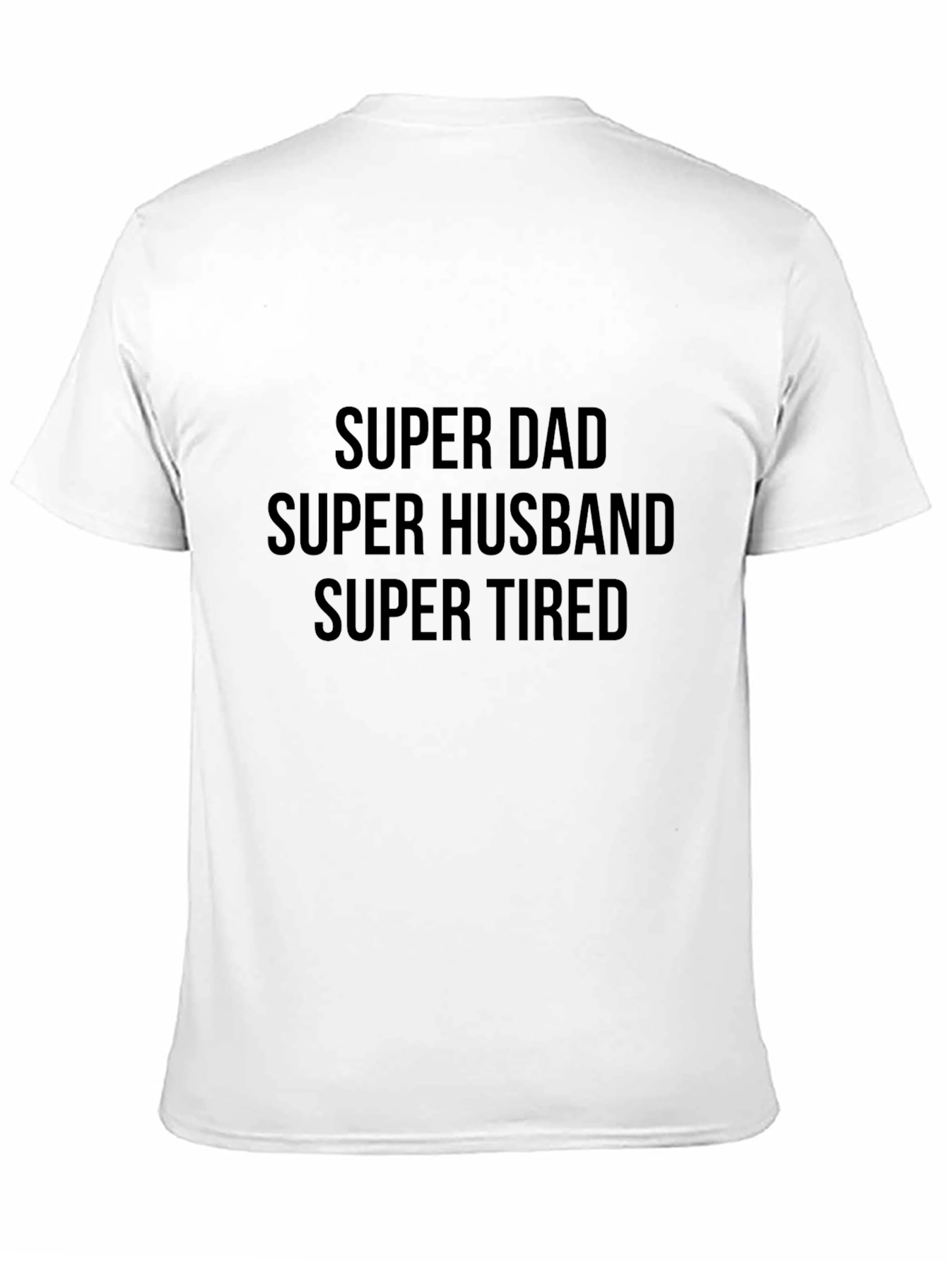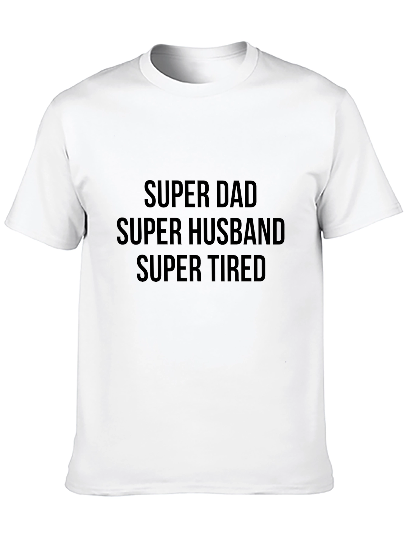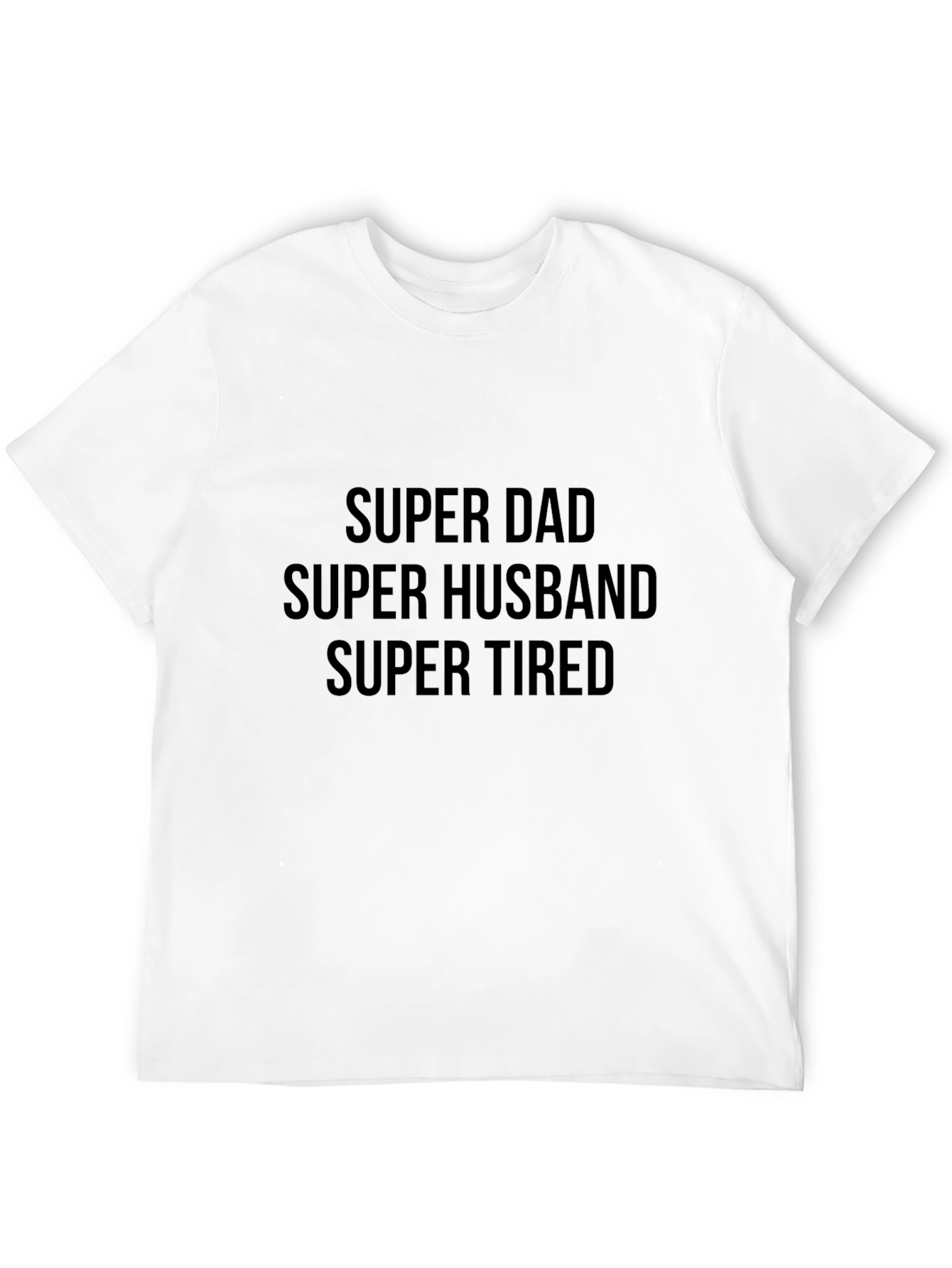 Luce esta camiseta de hombre con un mensaje divertido y relatable: "Super Dad Super Husband Super Tired". Confeccionada en un material suave y cómodo, esta camiseta de manga corta es perfecta para el uso diario. Su diseño simple en color negro la hace versátil y fácil de combinar con cualquier atuendo casual. Ideal para papás que equilibran múltiples roles y necesitan un toque de humor en su guardarropa. ¡Muestra tu orgullo de ser un super papá con esta prenda única!