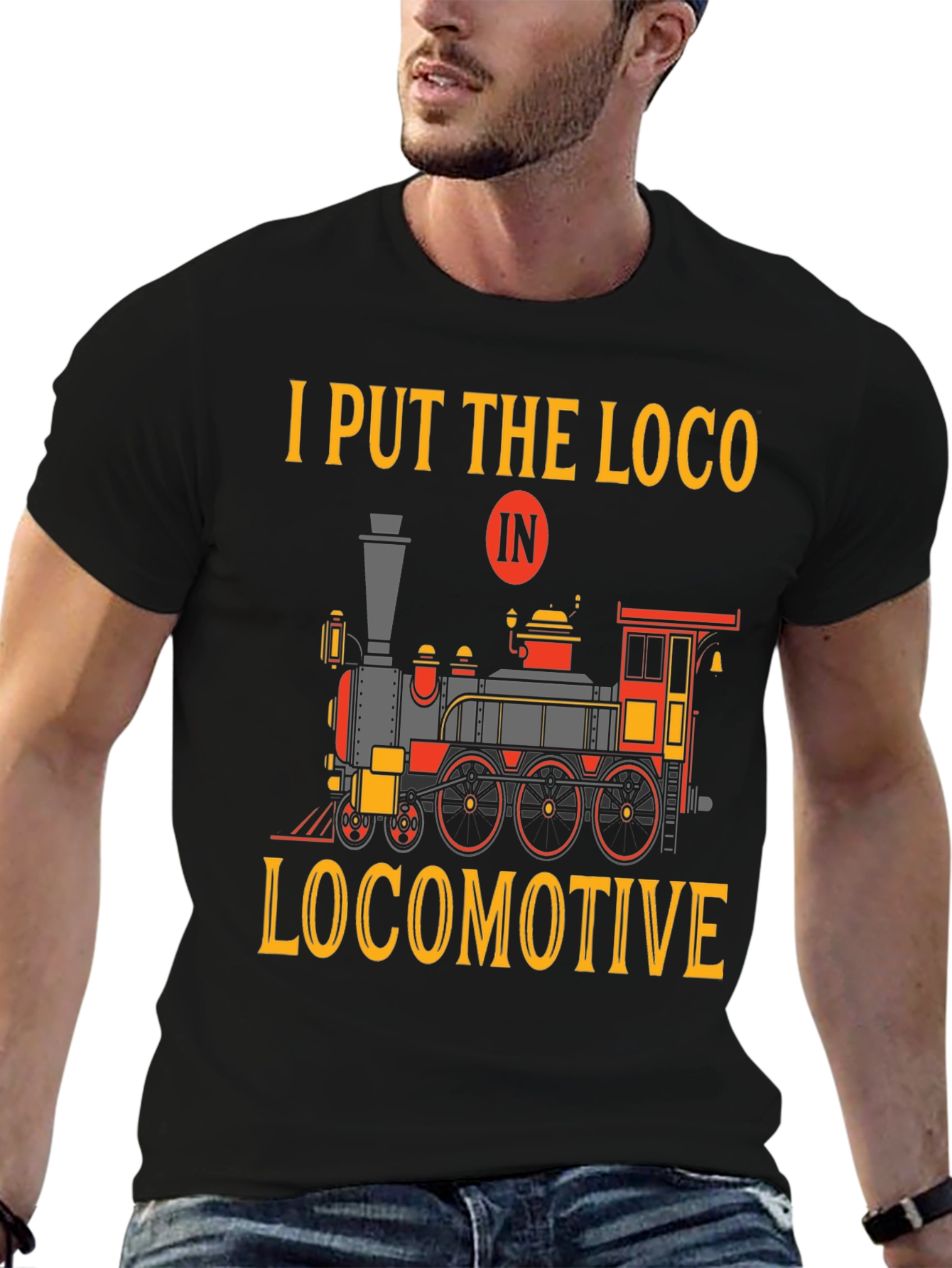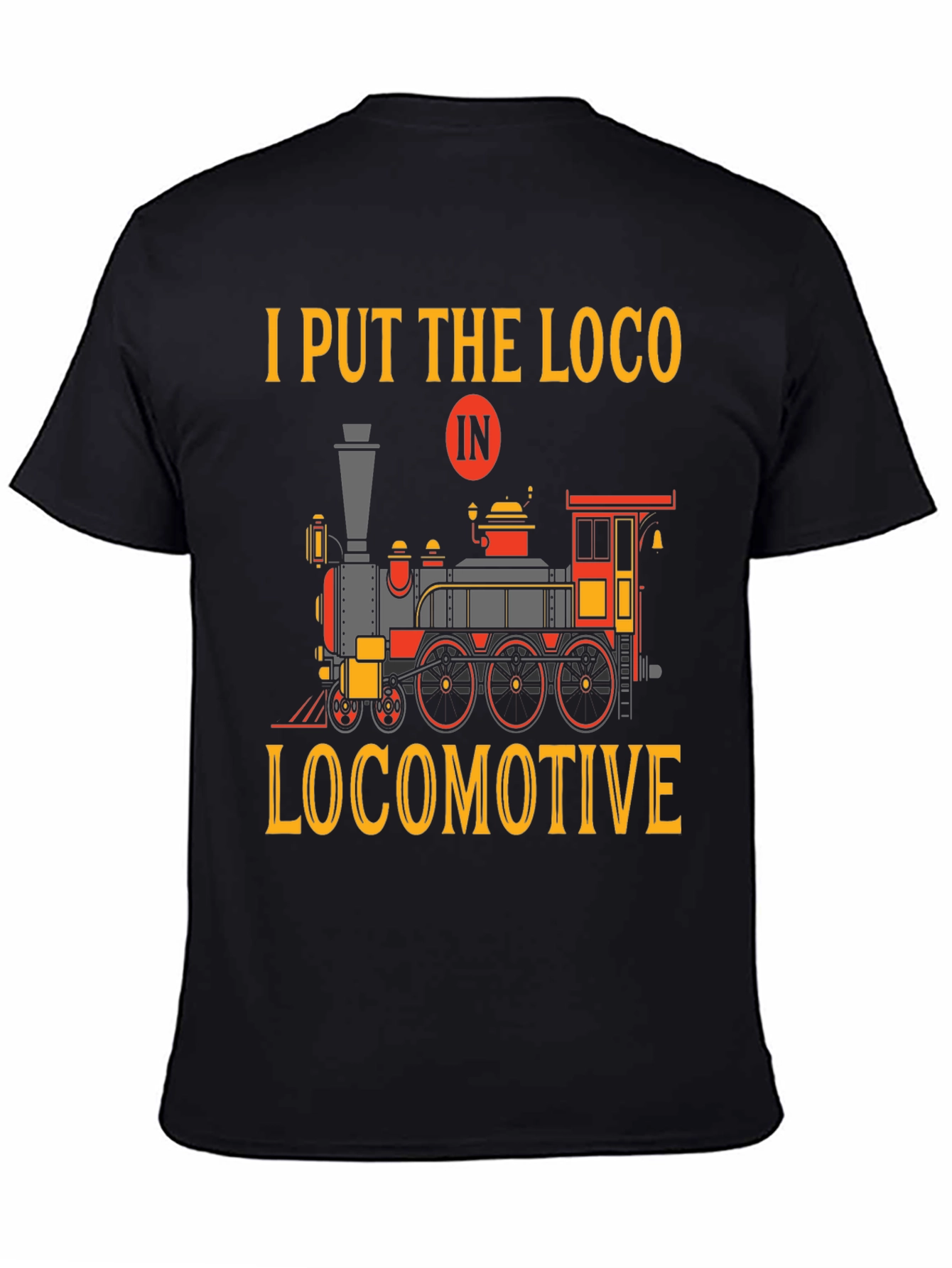 ¡Para los amantes de los trenes! Esta camiseta negra de manga corta presenta un diseño llamativo con una locomotora clásica en colores vibrantes como rojo, naranja y gris. La frase ingeniosa "I Put The Loco In Locomotive" añade un toque de humor y originalidad. Ideal para usar a diario, expresar tu pasión por los trenes o regalar a ese amigo fanático de las locomotoras. Fabricada con materiales cómodos y duraderos para garantizar un ajuste perfecto y una sensación agradable al tacto. ¡Atrévete a destacar con esta prenda única y divertida!