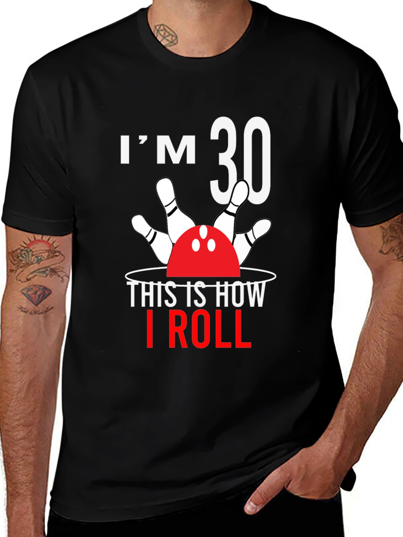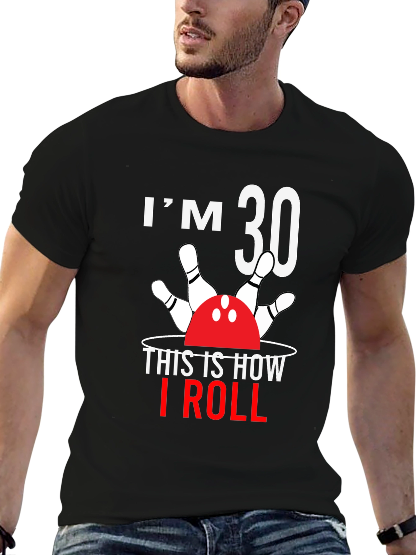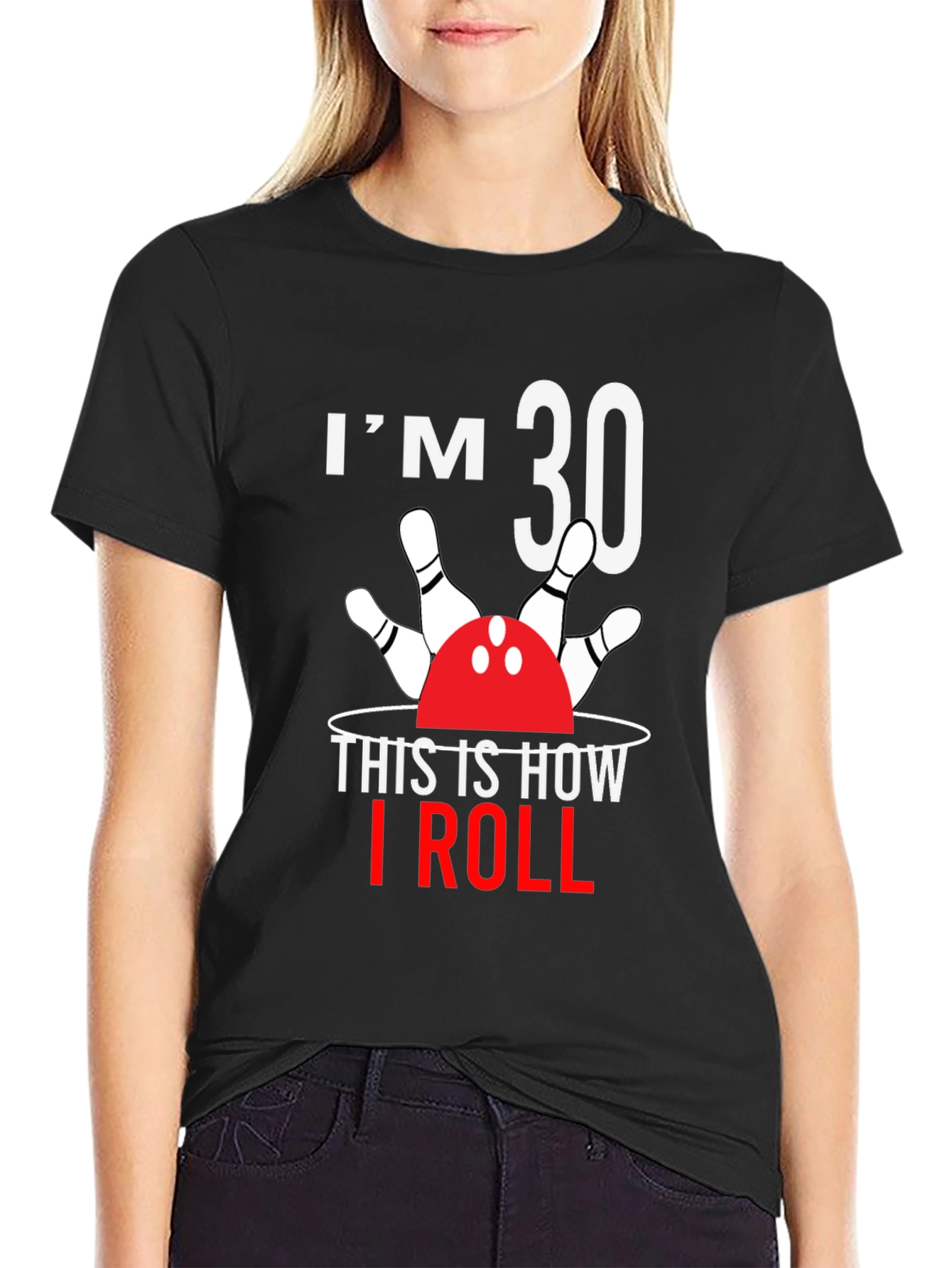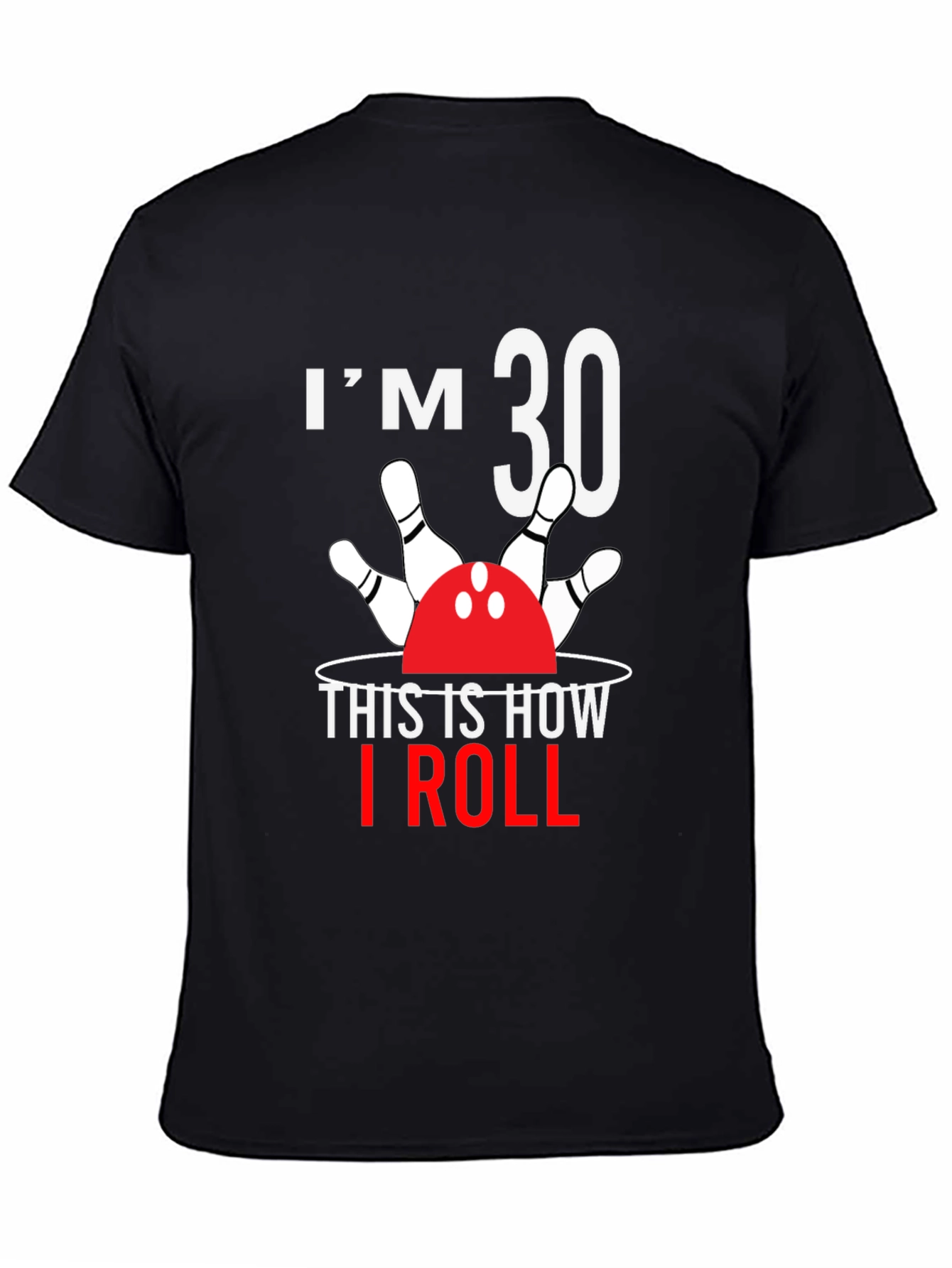 Celebra tu 30 cumpleaños con estilo con esta divertida camiseta negra. El diseño presenta la frase "I'M 30" combinada con una ilustración de bolos, con bolos blancos y una bola roja, junto con el texto "THIS IS HOW I ROLL" en rojo. Perfecta para una fiesta de cumpleaños temática o para lucir un look casual y original. Su diseño llamativo atraerá miradas y será el centro de atención. Ideal para regalar a ese amigo o familiar que cumple 30 y ama los bolos. Fabricada con materiales suaves y cómodos, es perfecta para usar durante todo el día.
