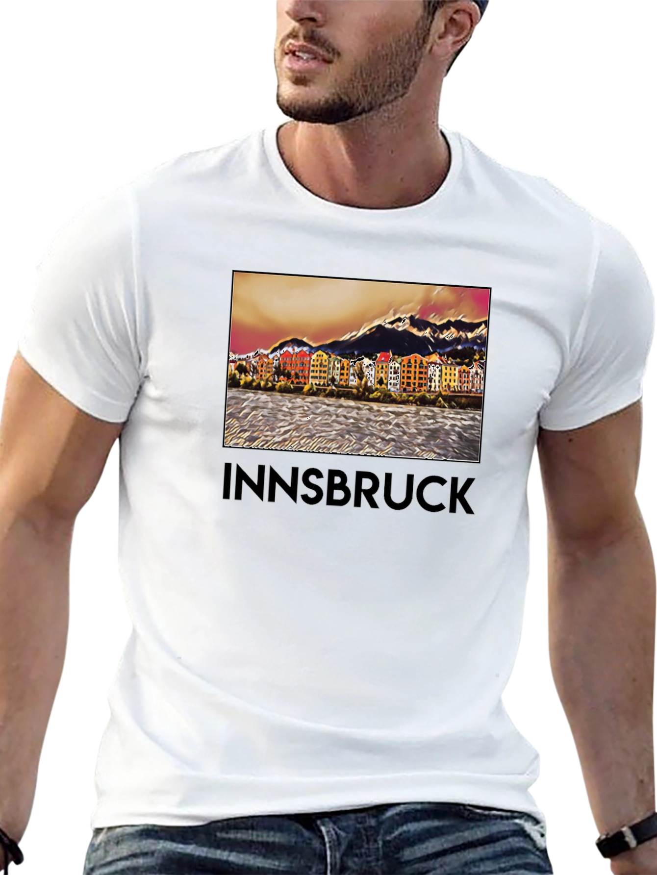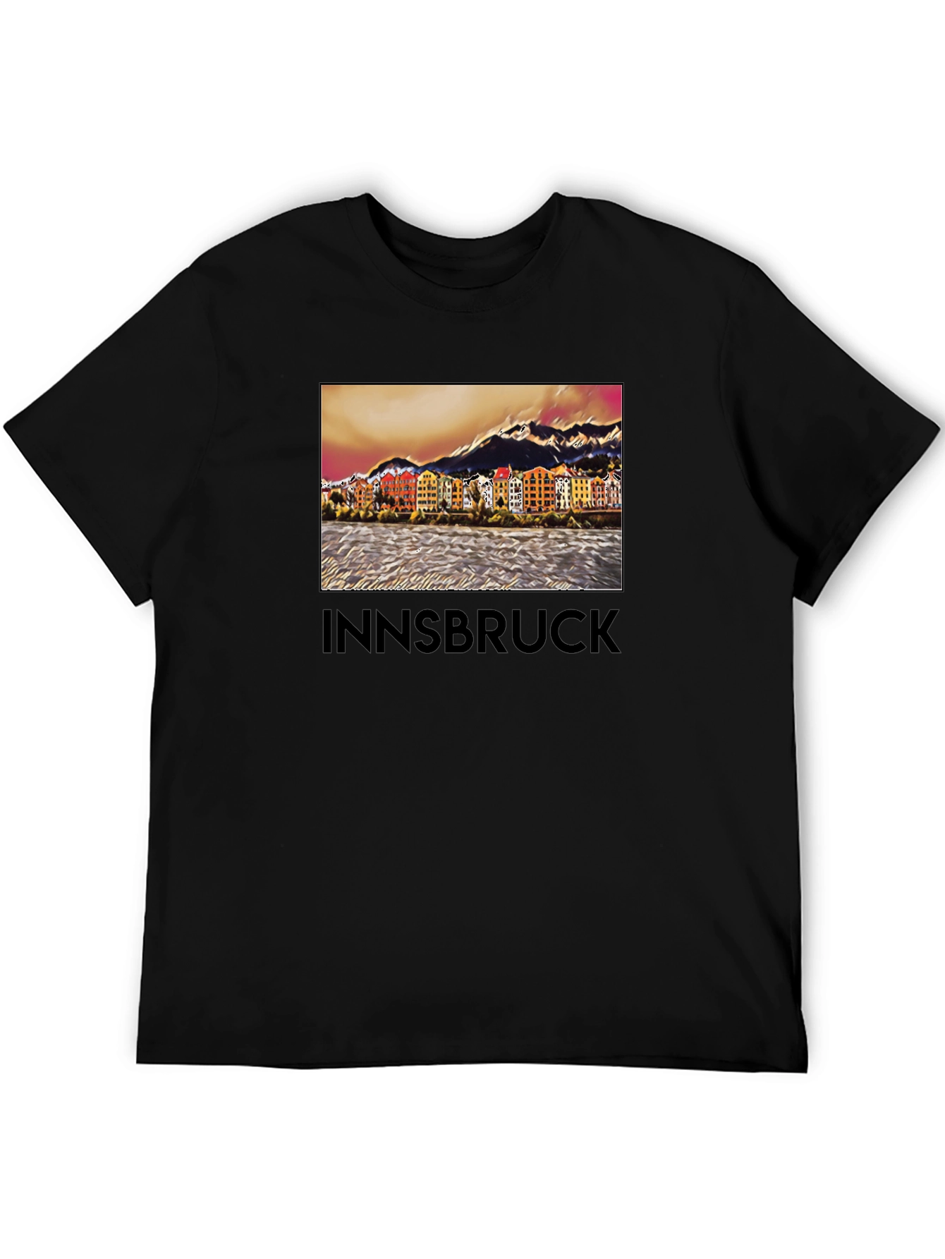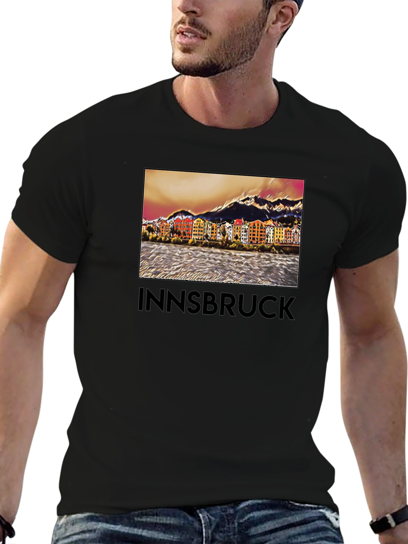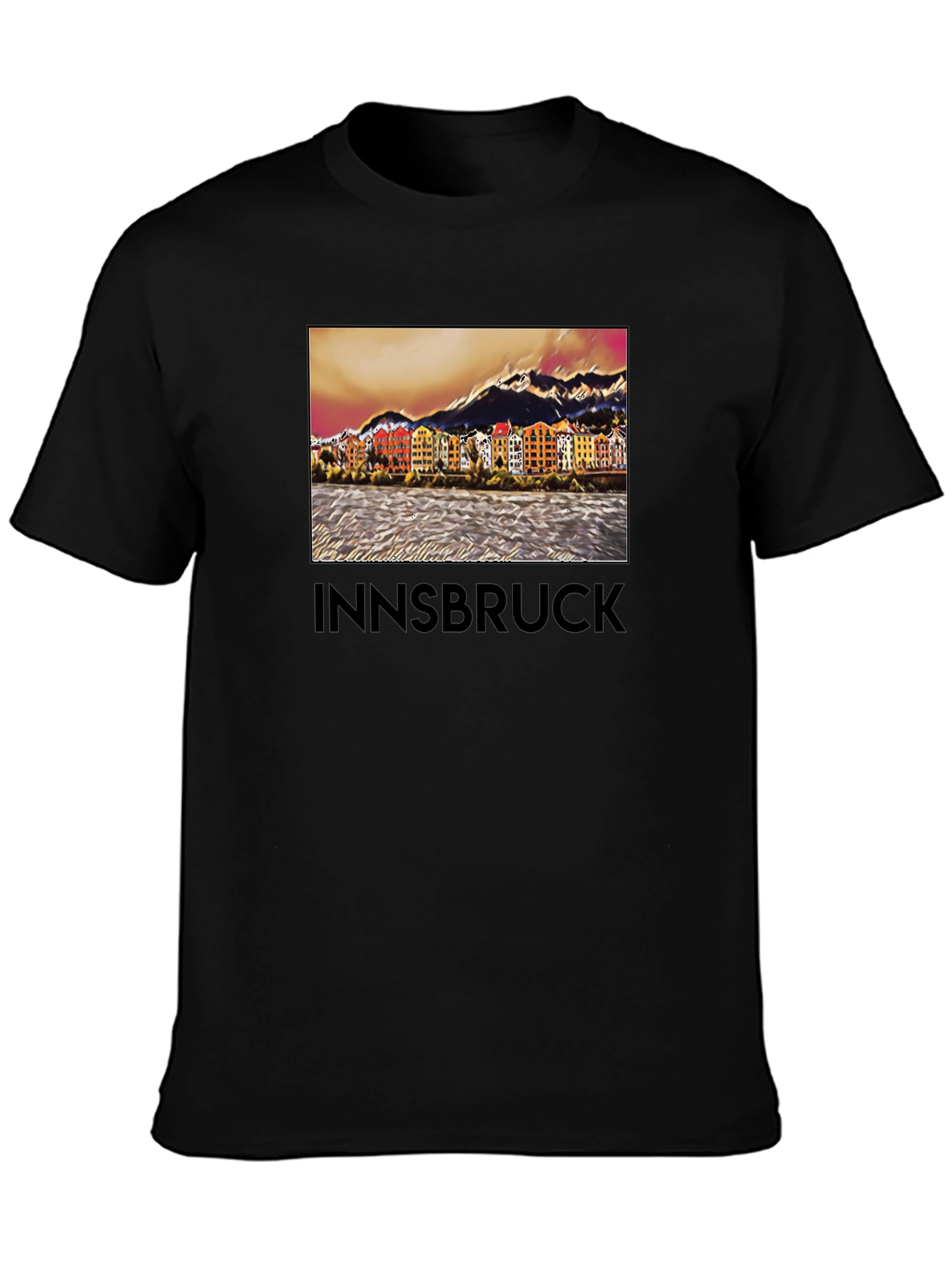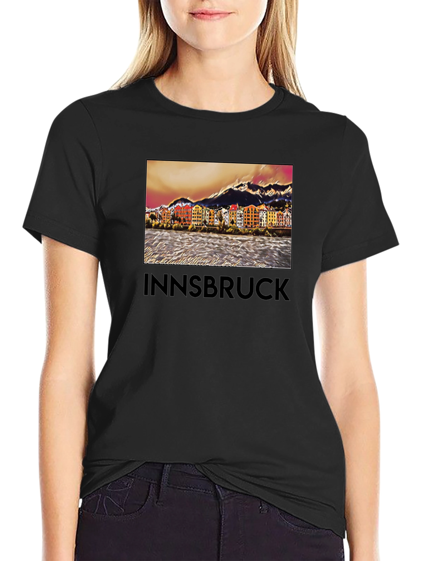 Luce esta elegante camiseta negra con un diseño artístico de Innsbruck, Austria. Presenta una impresionante vista de la ciudad con coloridos edificios junto al agua, todo ello enmarcado por montañas al fondo. La palabra "INNSBRUCK" está impresa en letras grandes debajo de la imagen, lo que hace de esta camiseta una declaración de estilo audaz. Fabricada con materiales suaves y cómodos, es perfecta para uso diario. Muestra tu amor por los viajes y la cultura con esta pieza única. Ideal para salidas informales, viajes o simplemente para destacar entre la multitud. ¡Añádela a tu guardarropa hoy mismo!