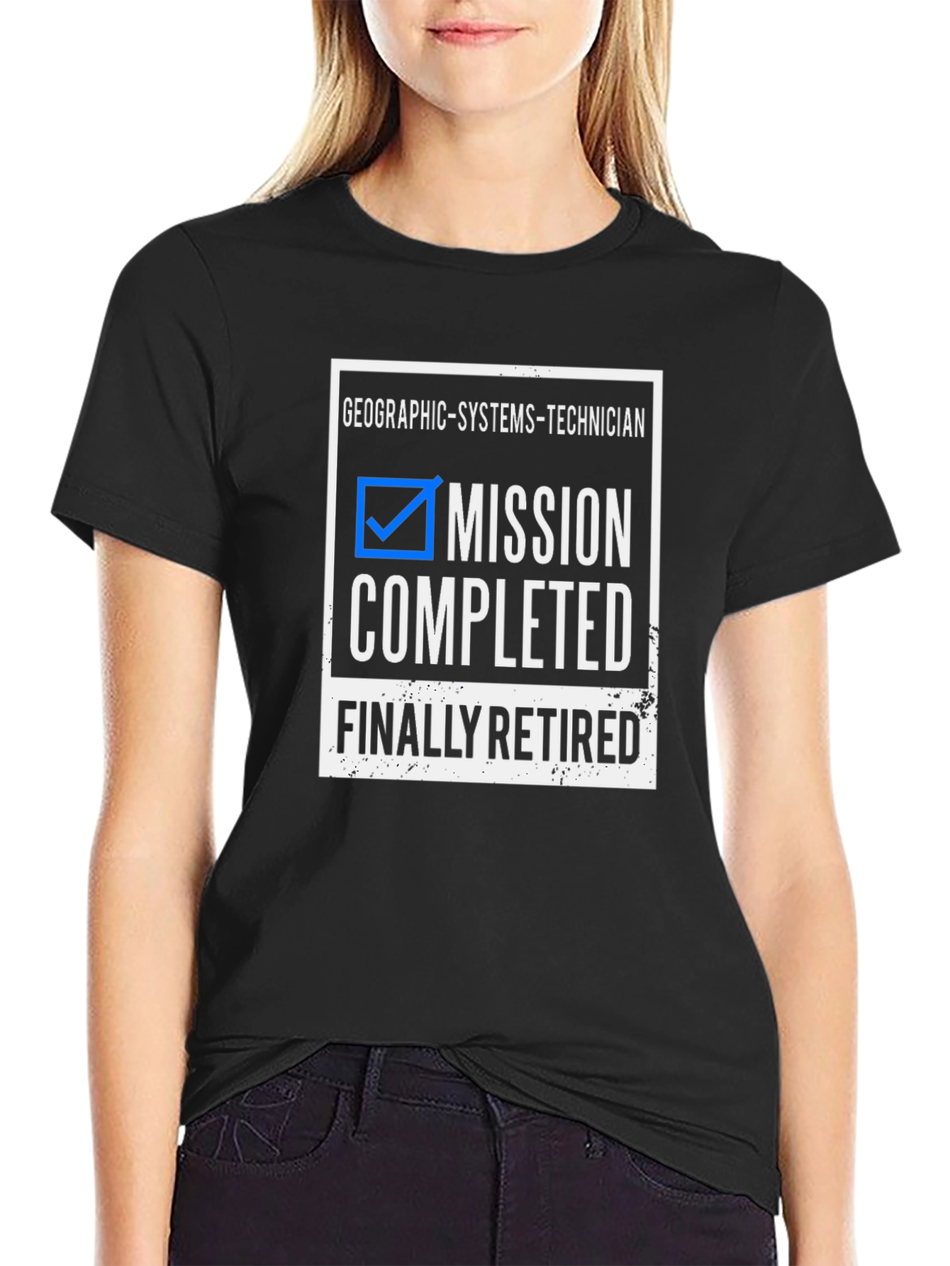 Celebra la jubilación con esta original camiseta negra. Muestra un diseño llamativo con la leyenda "GEOGRAPHIC-SYSTEMS-TECHNICIAN", un recuadro azul marcado y las palabras "MISSION COMPLETED" y "FINALLY RETIRED" en letras grandes y blancas. Perfecta para regalar a un técnico que se retira y celebrar su logro. Ideal para llevar en fiestas de jubilación, reuniones con amigos o simplemente para relajarse en casa con estilo y humor. Fabricada con materiales cómodos y duraderos. ¡Un recuerdo divertido y significativo para una nueva etapa!