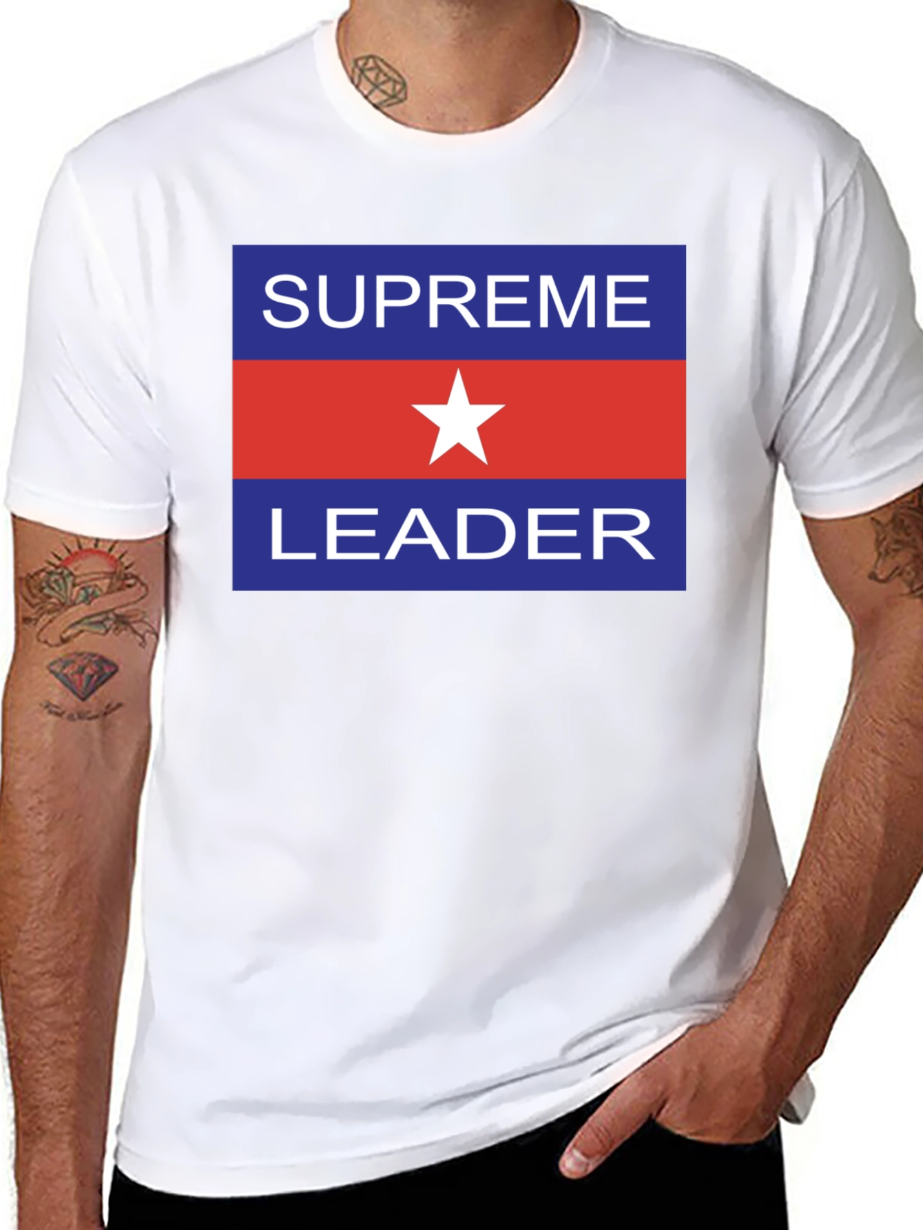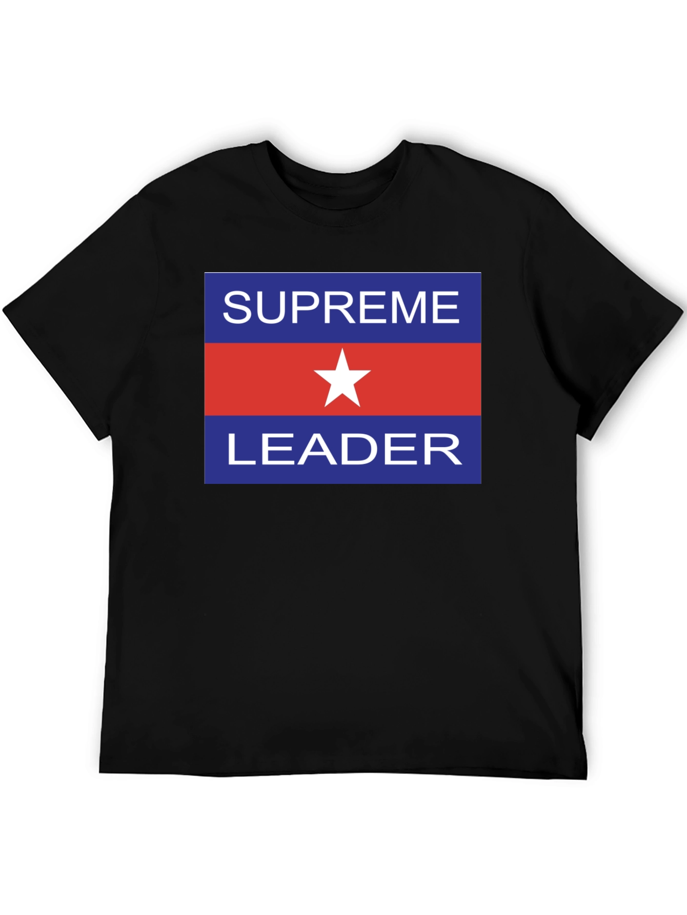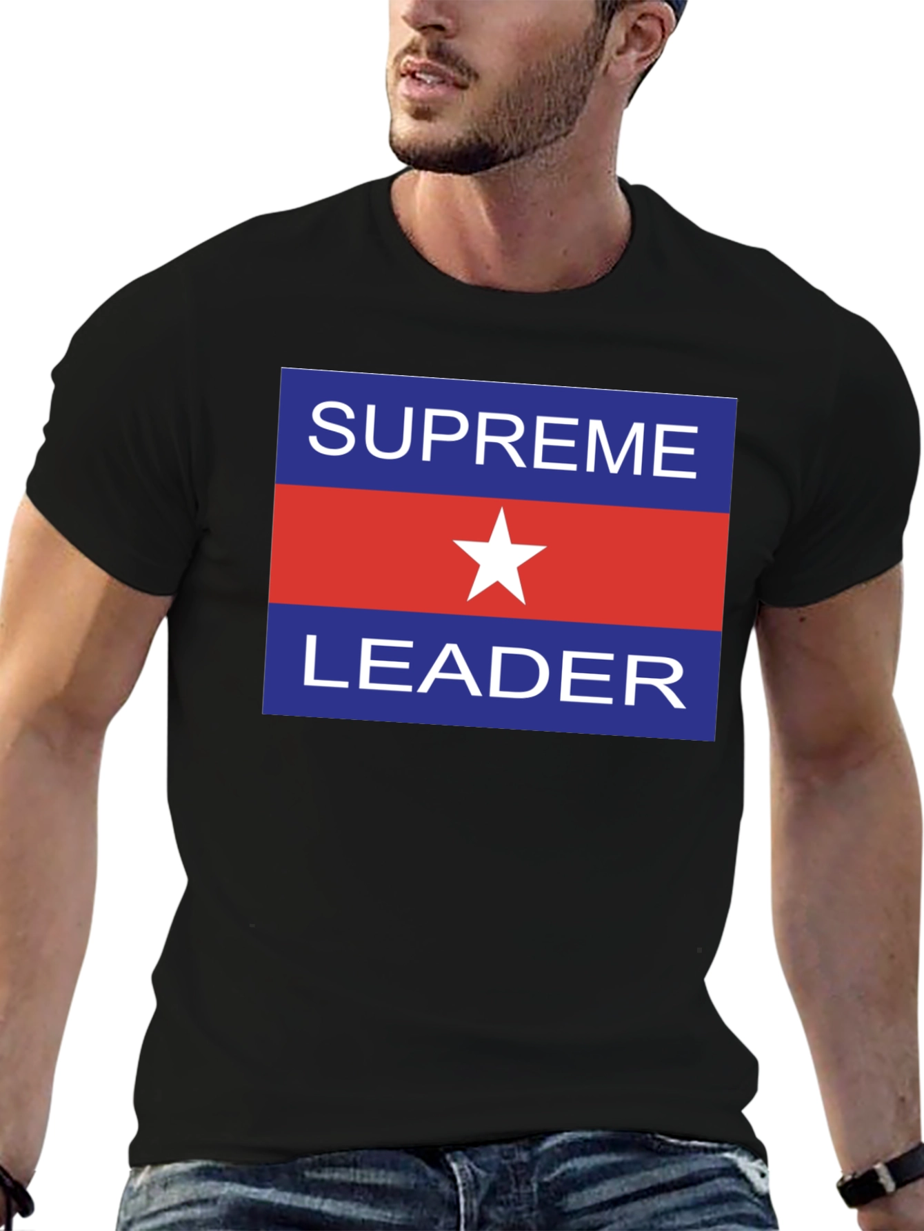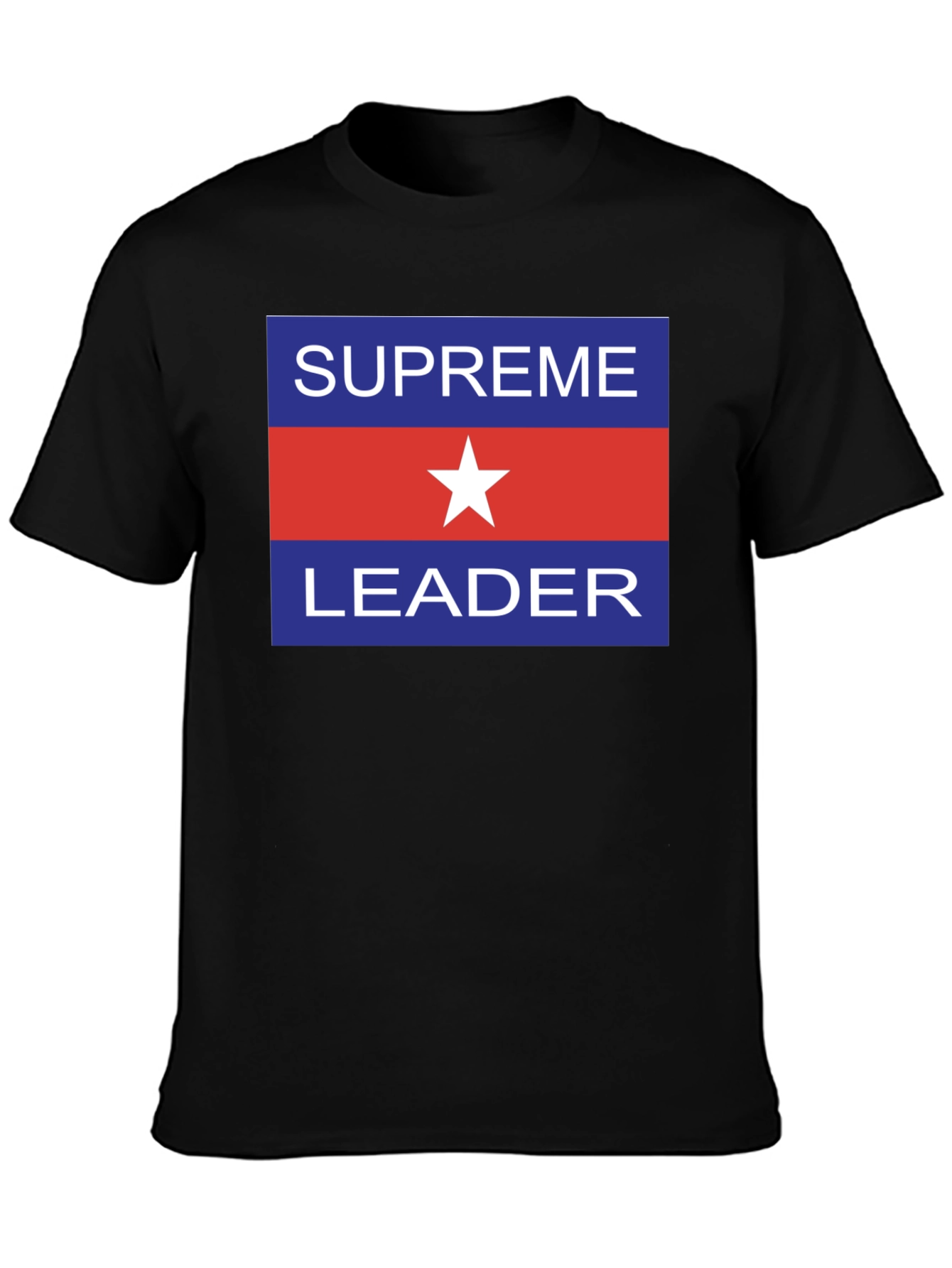 Luce un estilo único con esta camiseta negra de diseño llamativo. Presenta una impresión rectangular que combina los colores azul, rojo y blanco. En la parte superior e inferior se puede leer “SUPREME” y “LEADER” respectivamente en letras de color blanco sobre fondo azul. En el centro, una estrella blanca sobre un fondo rojo. Perfecta para expresar tu personalidad y destacar entre la multitud. Confeccionada con materiales cómodos y duraderos, esta camiseta es ideal para uso diario, eventos especiales o simplemente para relajarte con estilo. Añade un toque de originalidad a tu guardarropa.