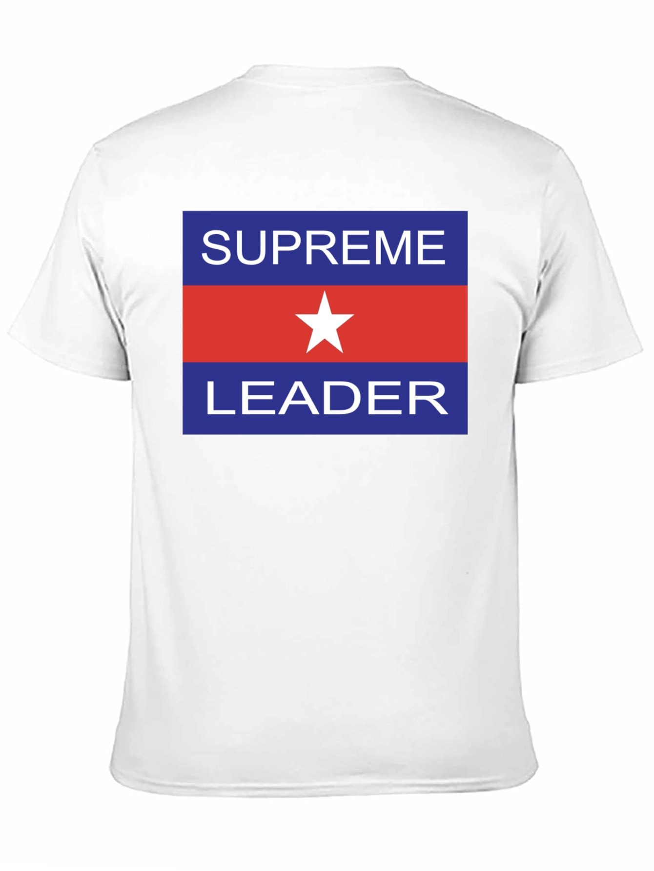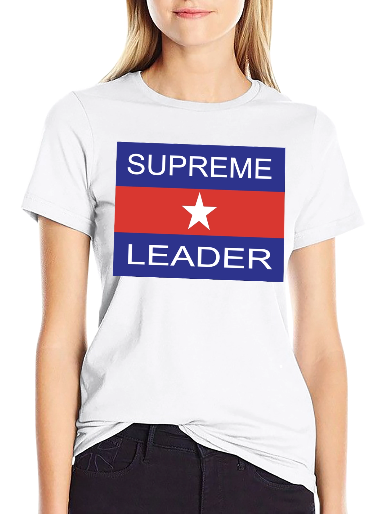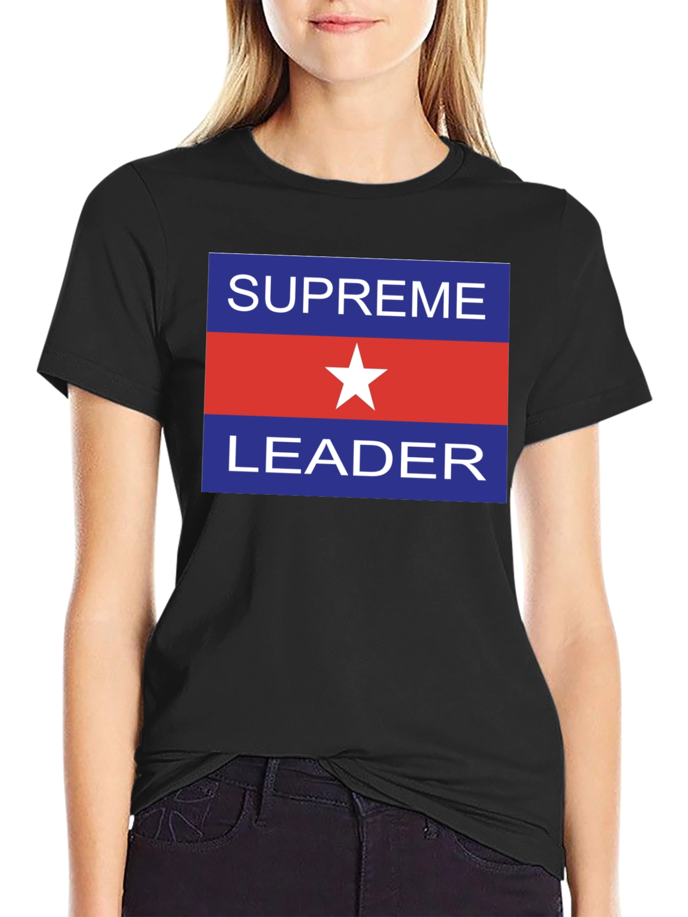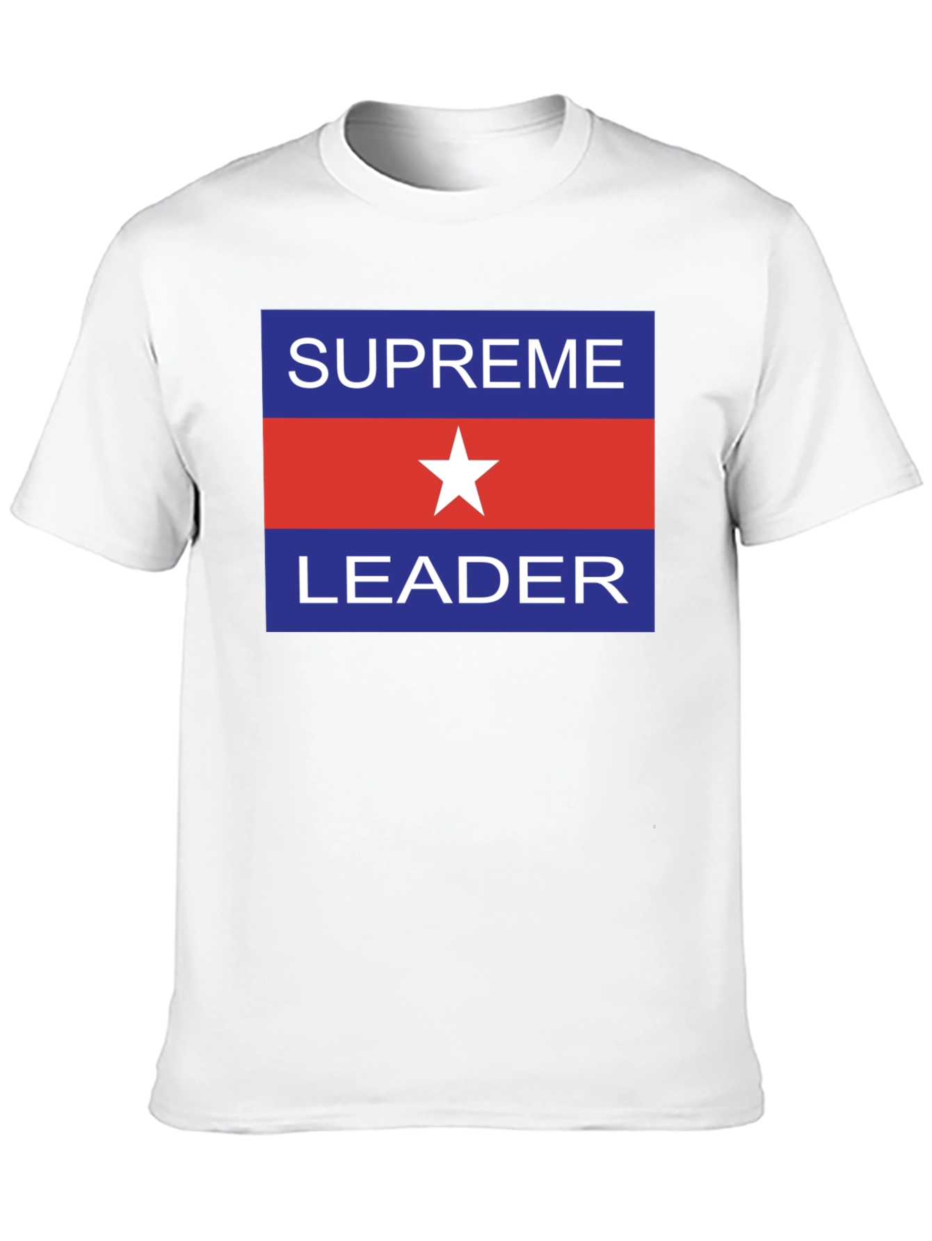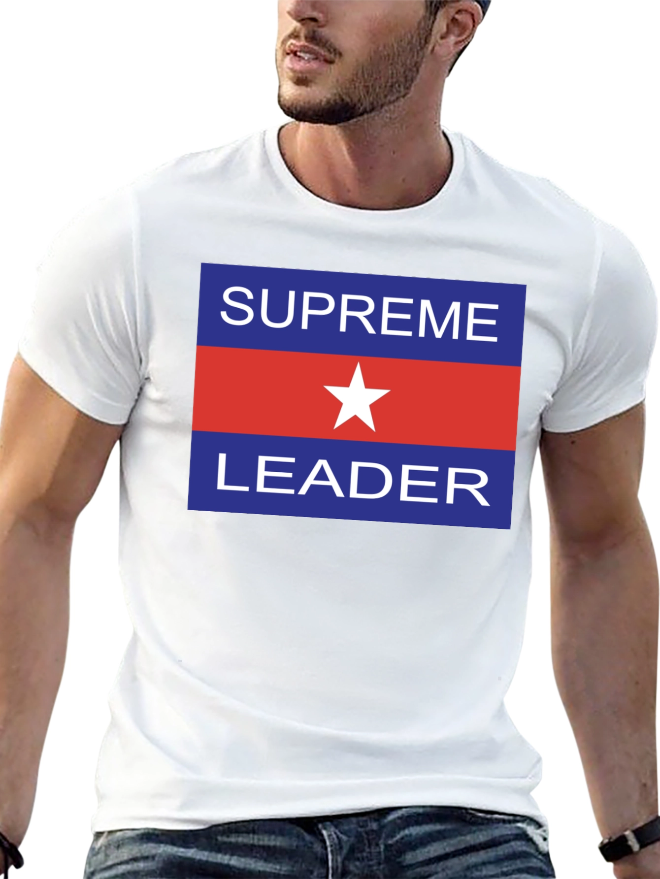 Luce un estilo único con esta camiseta negra de diseño llamativo. Presenta una impresión rectangular que combina los colores azul, rojo y blanco. En la parte superior e inferior se puede leer “SUPREME” y “LEADER” respectivamente en letras de color blanco sobre fondo azul. En el centro, una estrella blanca sobre un fondo rojo. Perfecta para expresar tu personalidad y destacar entre la multitud. Confeccionada con materiales cómodos y duraderos, esta camiseta es ideal para uso diario, eventos especiales o simplemente para relajarte con estilo. Añade un toque de originalidad a tu guardarropa.
