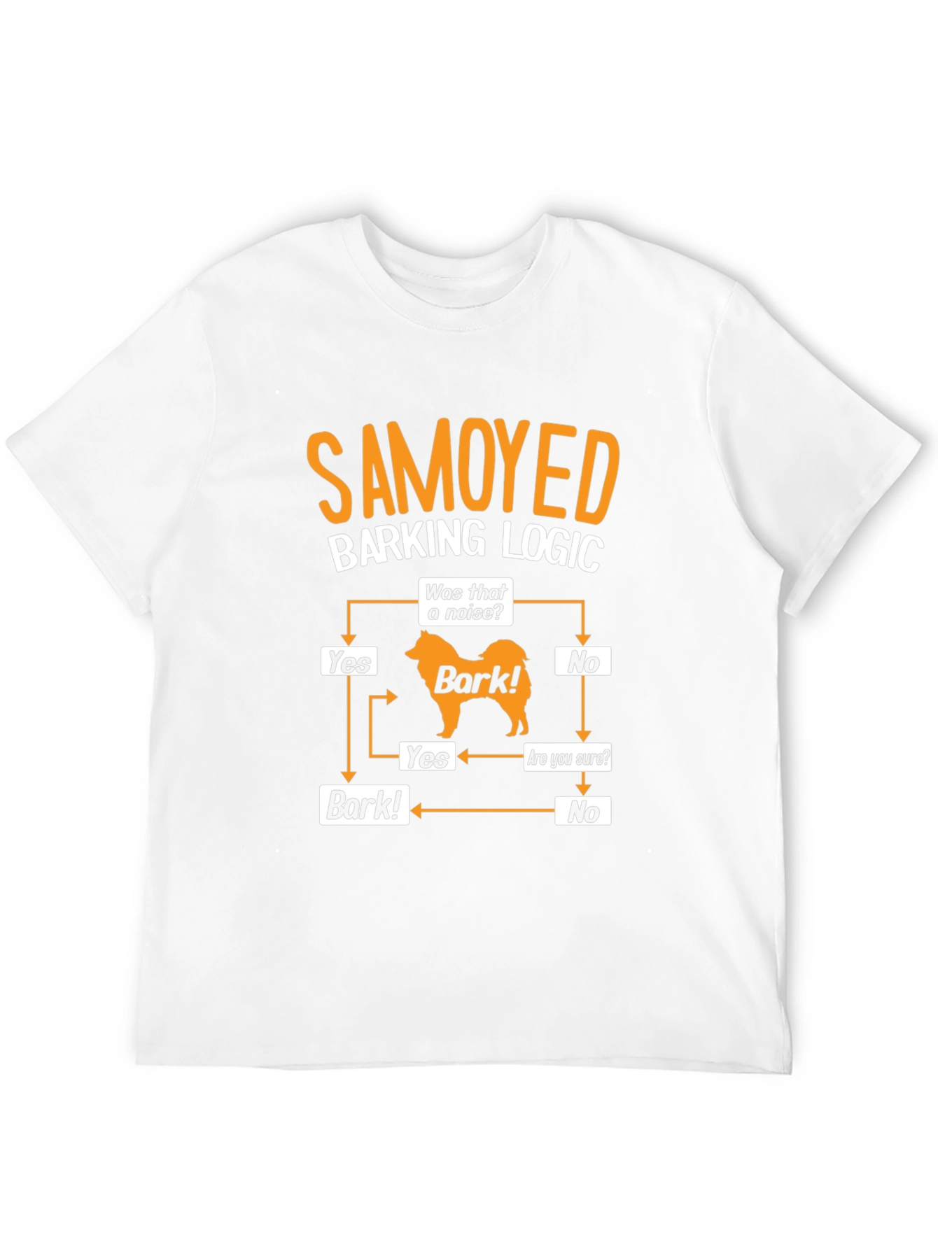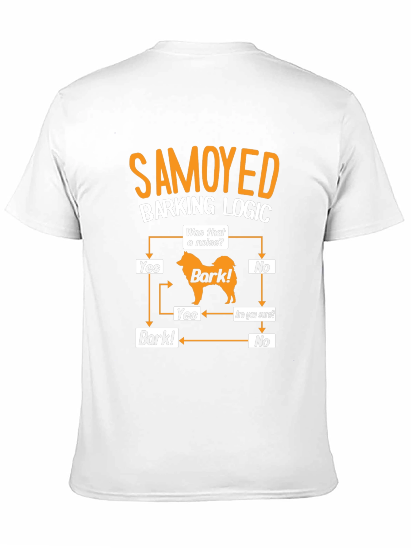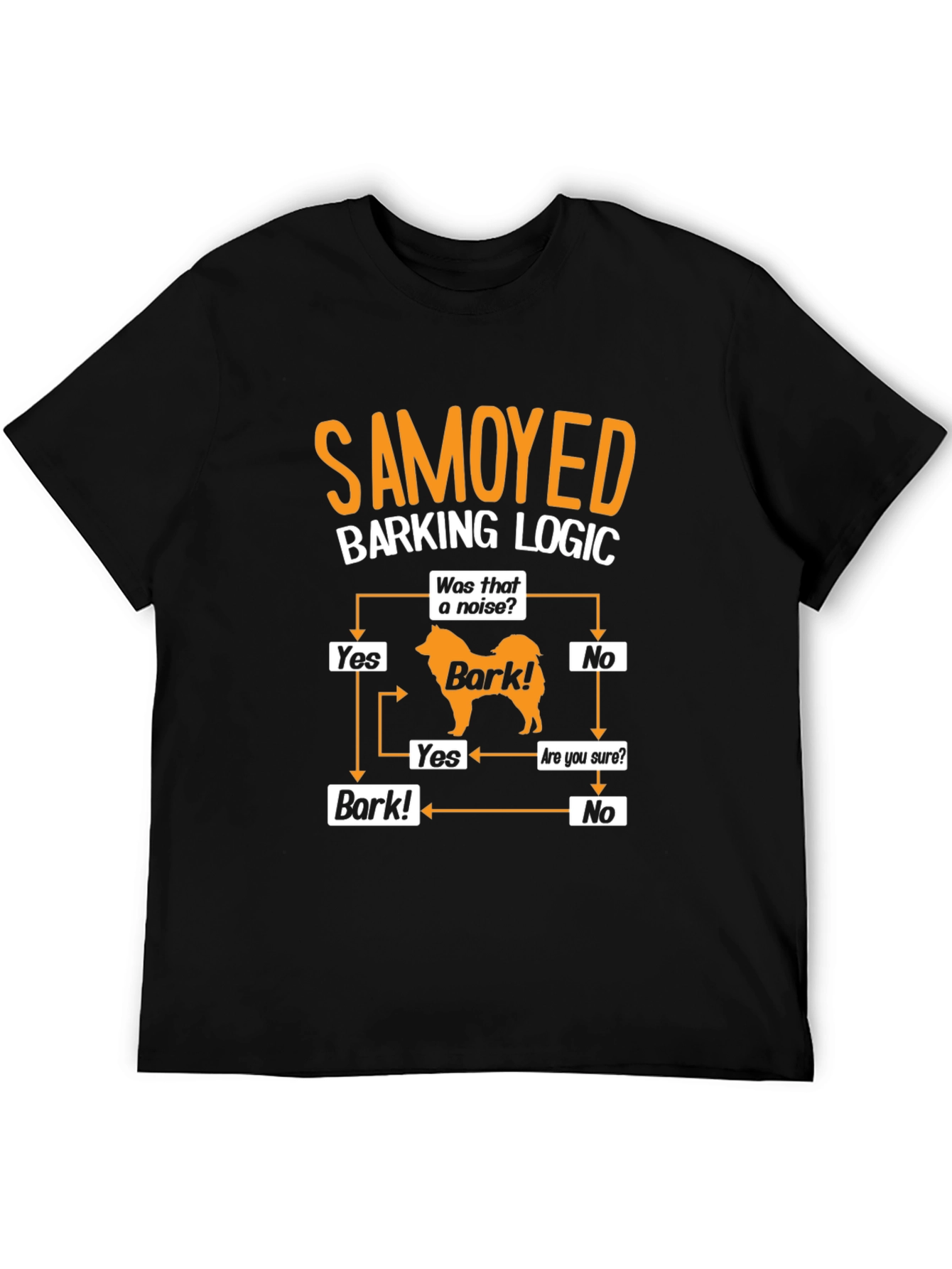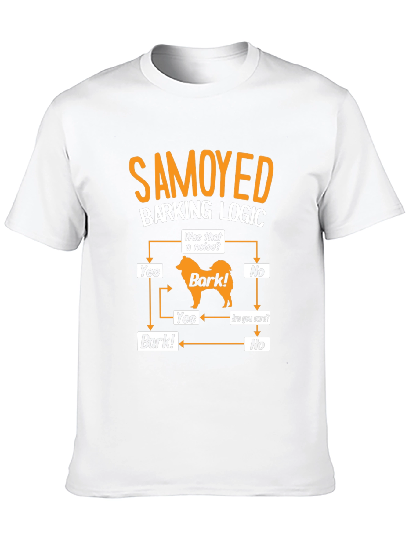 Muestra tu amor por los Samoyedos con esta divertida camiseta negra. Presenta un diagrama de flujo cómico titulado "Lógica de Ladridos Samoyedo" en color naranja y blanco, ilustrando el proceso de pensamiento de un Samoyedo al decidir si ladrar. Perfecta para dueños de Samoyedos, amantes de los perros, o cualquier persona con sentido del humor. Su diseño único la convierte en una excelente opción para usar a diario, paseos por el parque o reuniones informales. ¡Consigue la tuya y presume tu pasión por esta adorable raza!