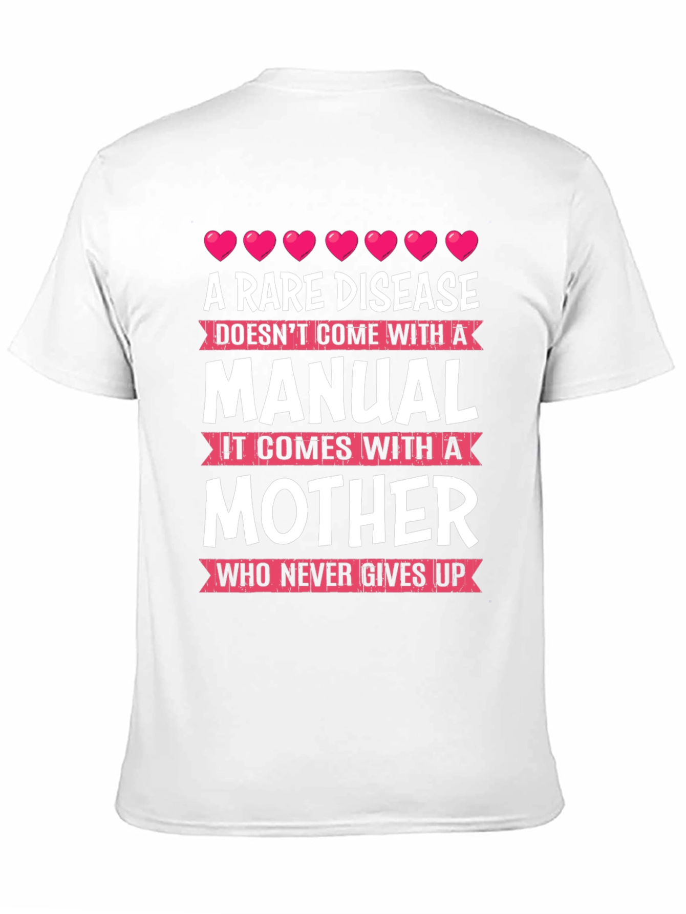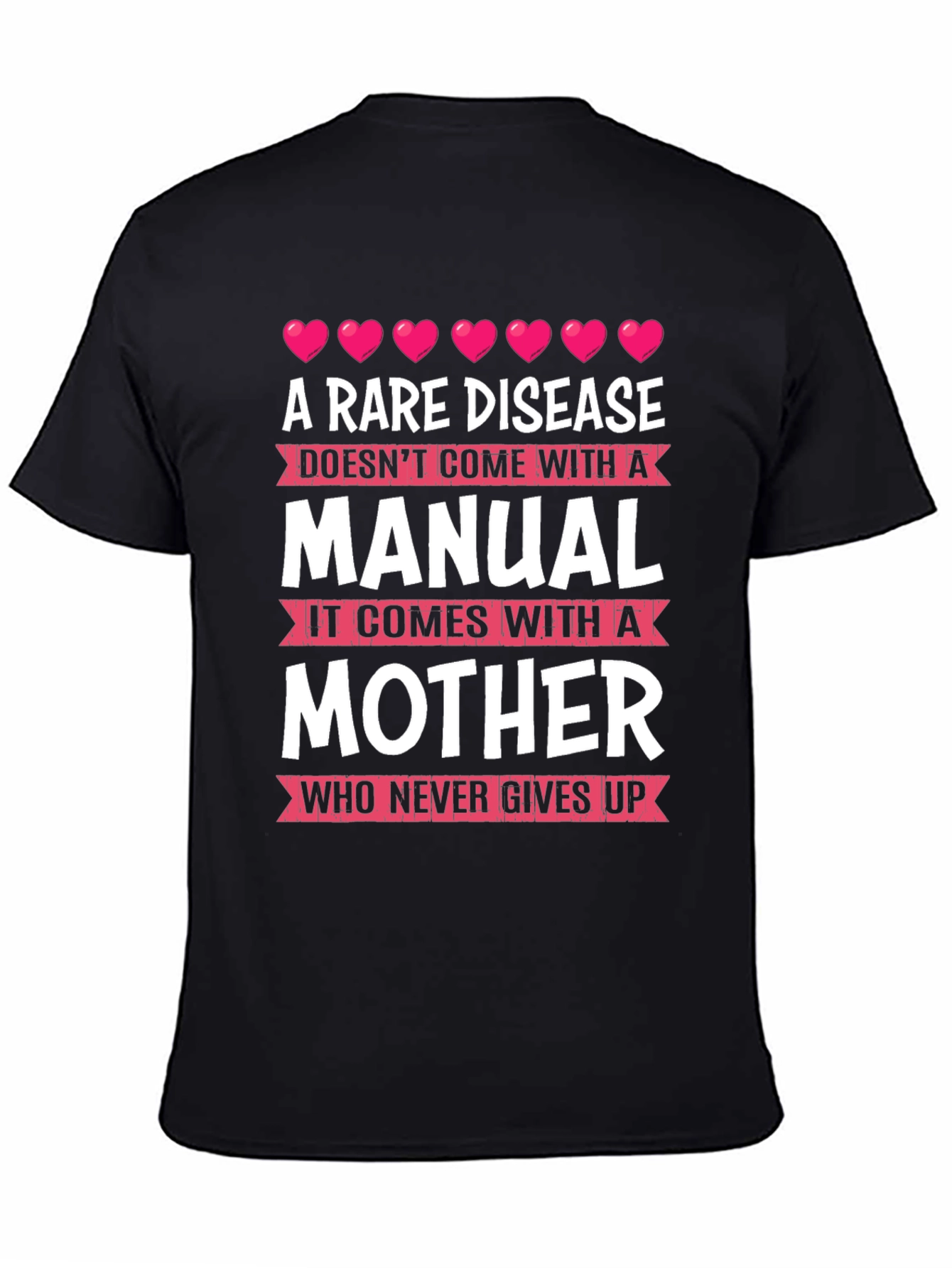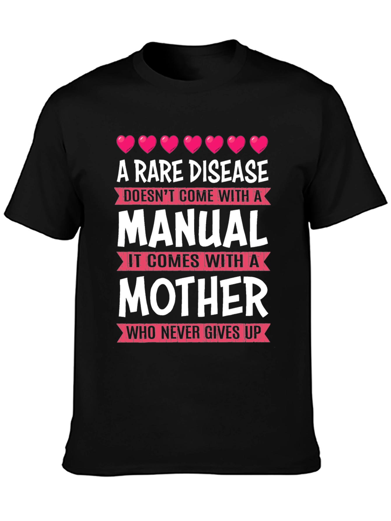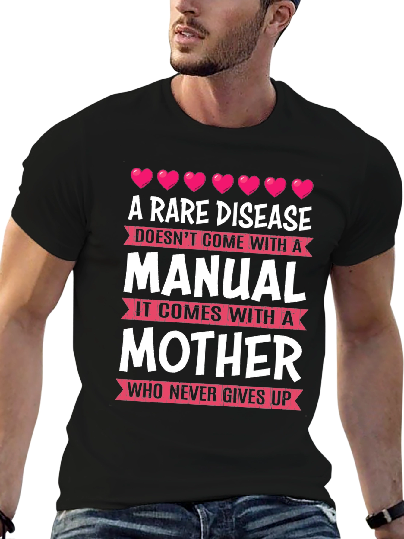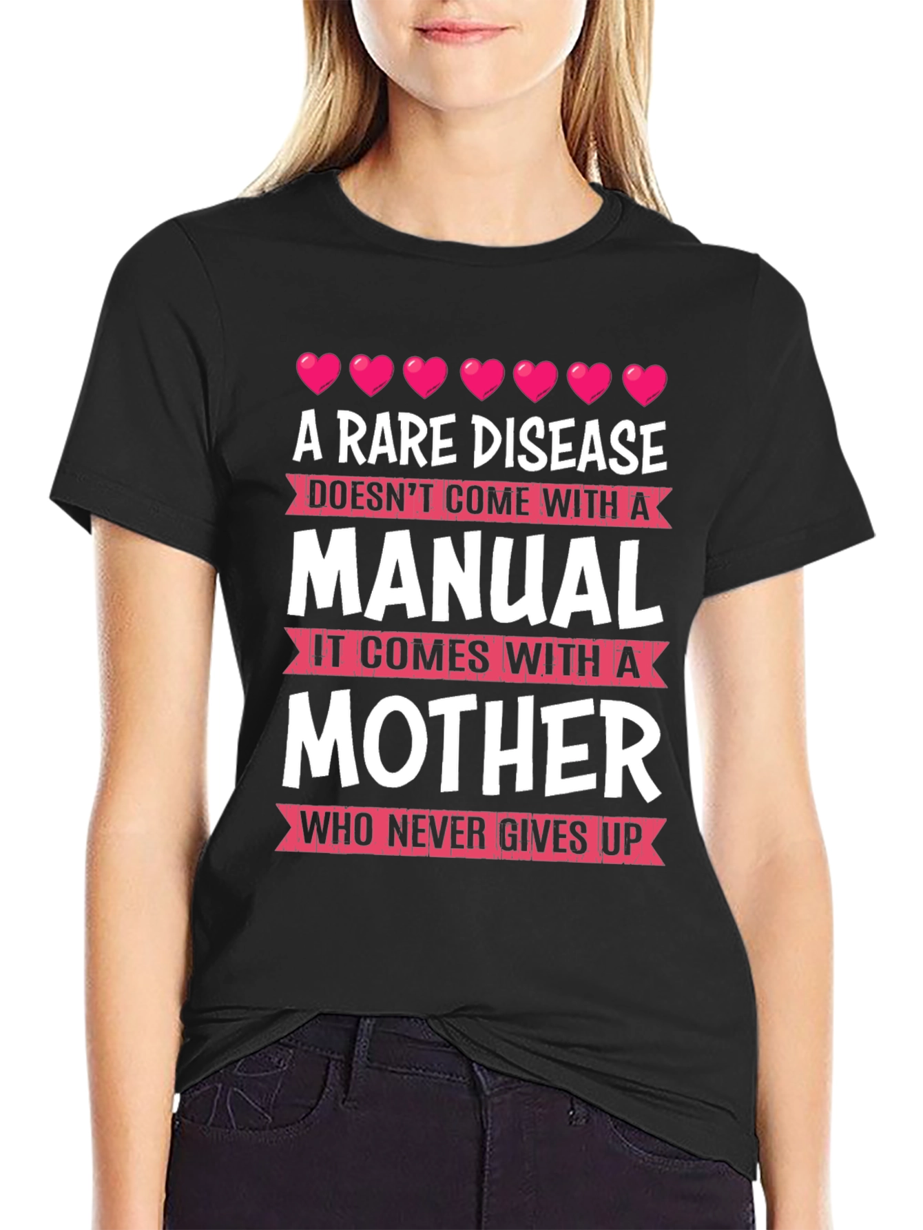 Muestra tu apoyo con esta emotiva camiseta negra. Presenta un diseño llamativo con corazones rosas y un mensaje poderoso: "Una enfermedad rara no viene con un manual, viene con una madre que nunca se rinde". Fabricada con un material suave y cómodo, ideal para uso diario. Perfecta para crear conciencia sobre las enfermedades raras y honrar a las madres que luchan incansablemente. Úsala en eventos, reuniones familiares o simplemente para expresar tu solidaridad. Un regalo significativo para cualquier persona que admire la fuerza y la dedicación maternal. ¡Luce con orgullo este símbolo de esperanza y apoyo!