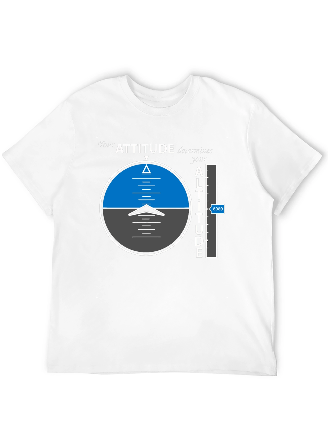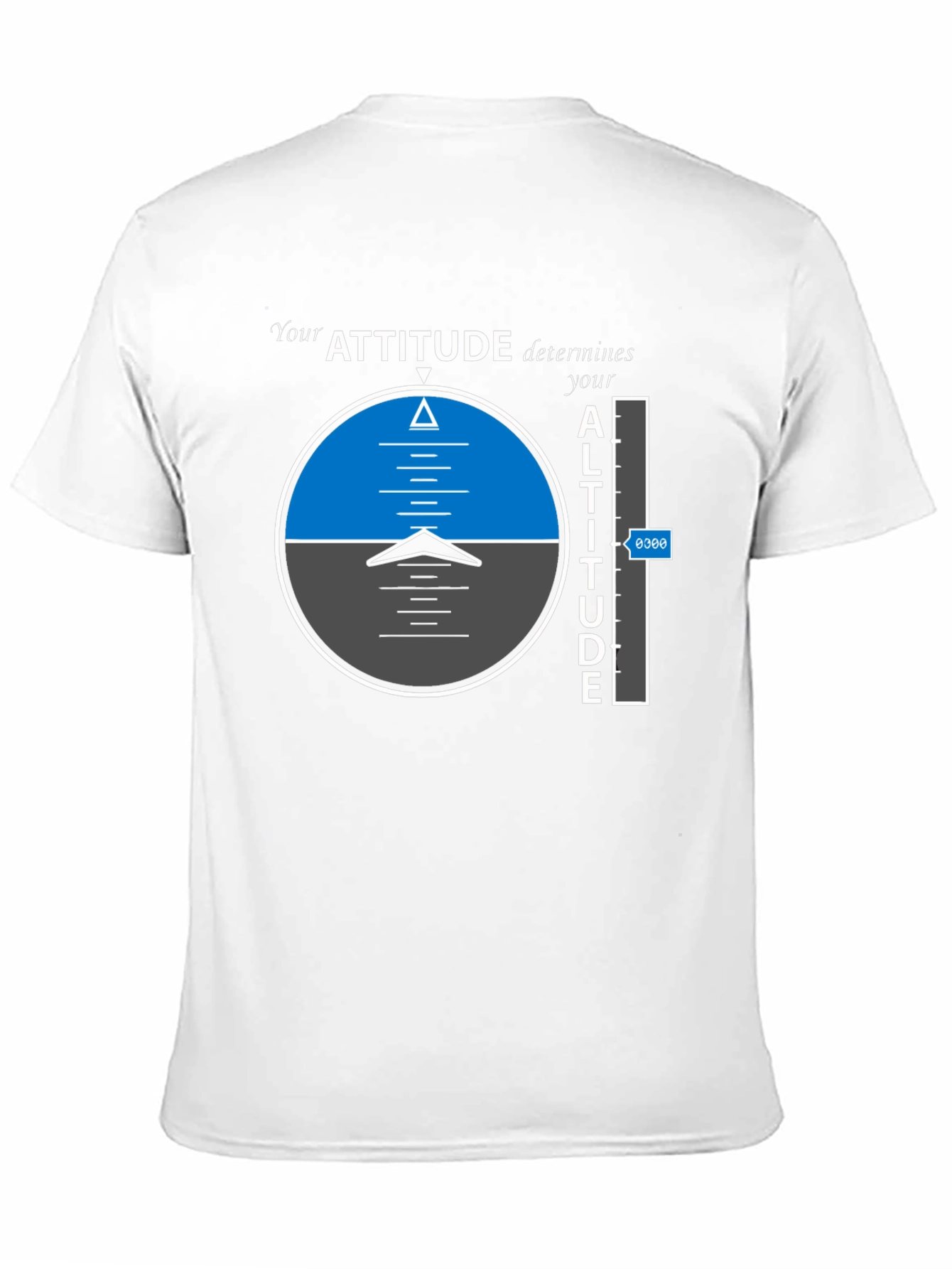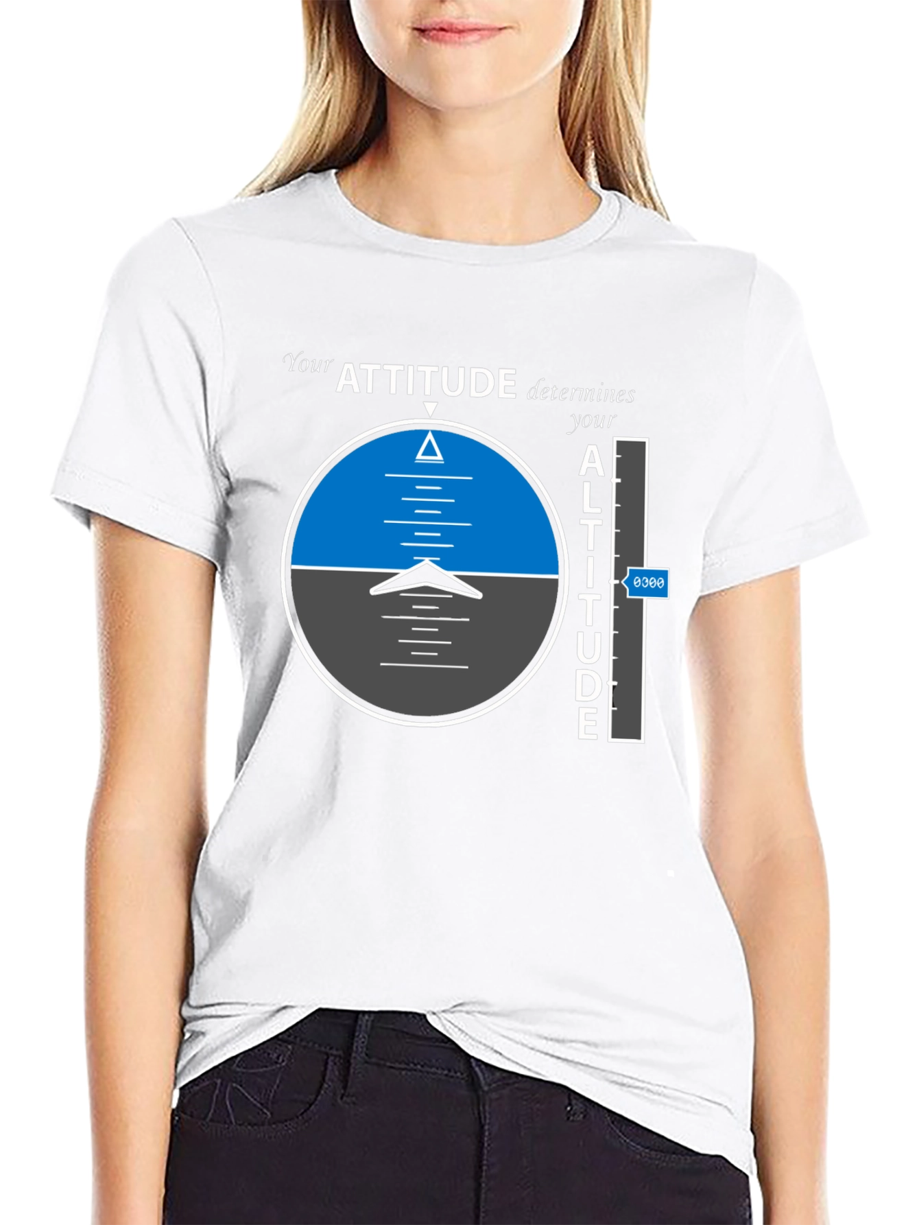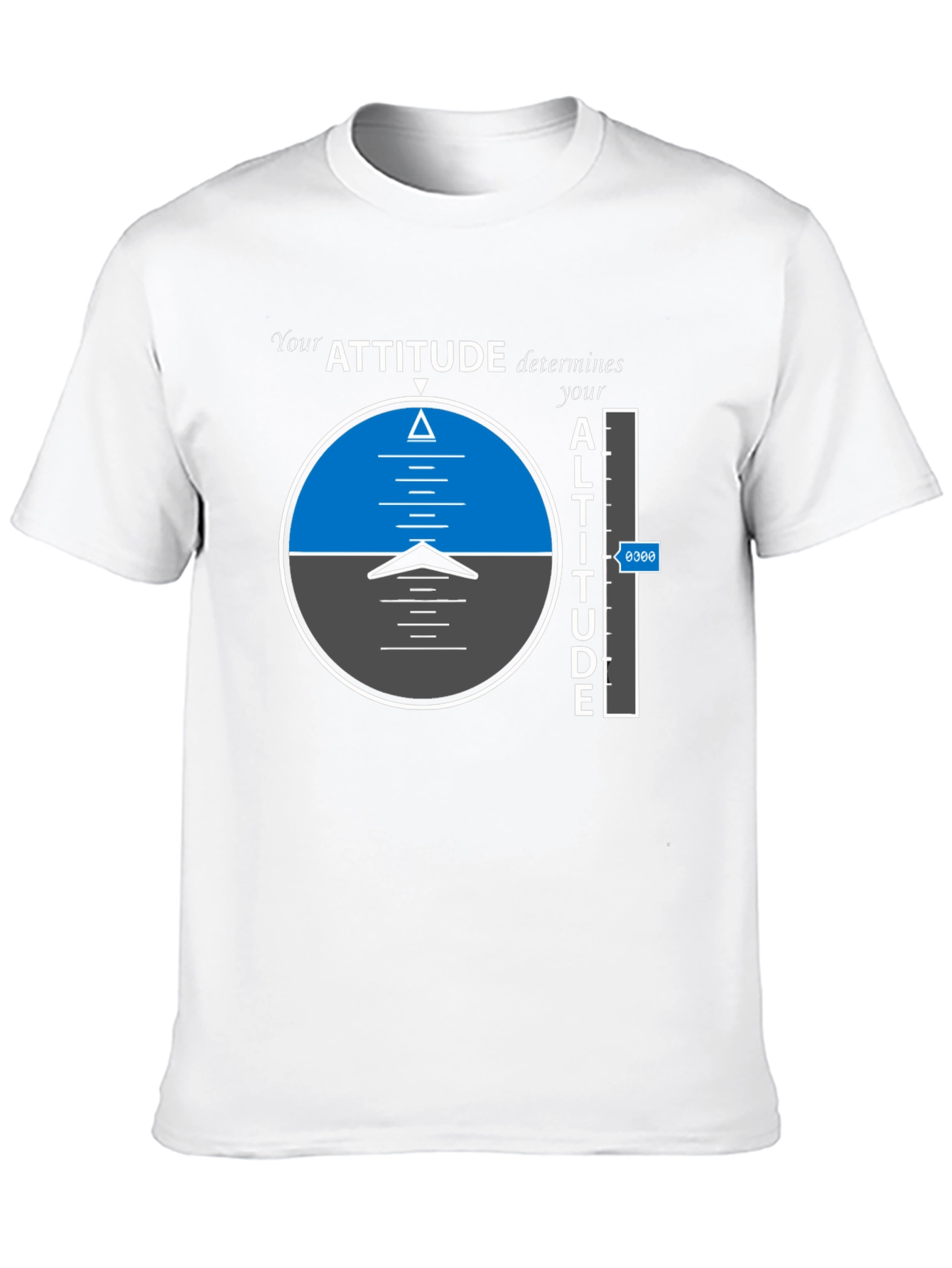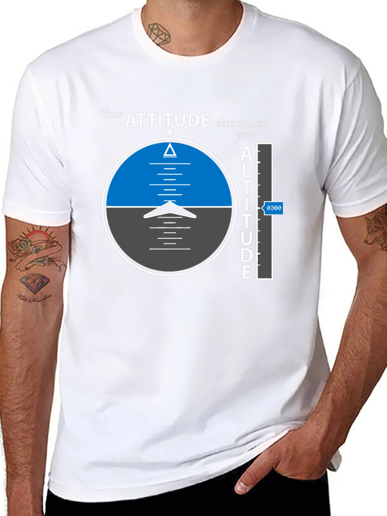 Eleva tu estilo con esta camiseta negra que fusiona moda y pasión por la aviación. Presenta un llamativo diseño gráfico que simula un indicador de actitud de vuelo, con una mitad superior en azul celeste y una inferior en gris, separadas por una línea que simula el horizonte. El mensaje "Your ATTITUDE determines your ALTITUDE" añade un toque inspirador. Perfecta para pilotos, entusiastas de la aviación o cualquier persona que aprecie un diseño único y motivador. Fabricada en algodón suave, ofrece comodidad y estilo en cada aventura.