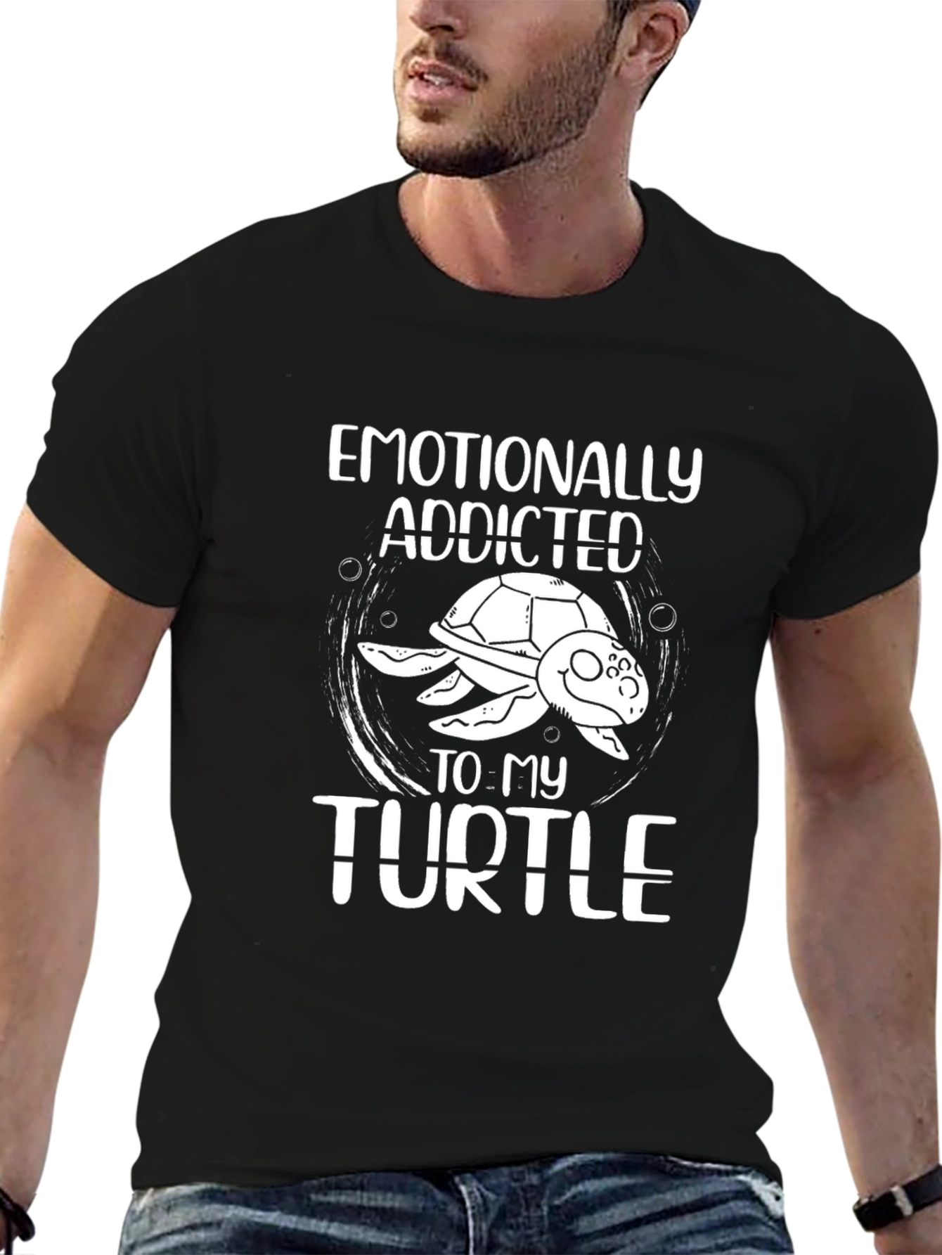 Luce esta divertida camiseta negra que expresa tu amor por las tortugas. Presenta un diseño original con la frase "Emocionalmente Adicto a mi Tortuga", destacando una ilustración encantadora de una tortuga estilizada. Ideal para los amantes de estos animales, esta camiseta es perfecta para uso diario, eventos informales o como un regalo especial. Su tela suave garantiza comodidad, mientras que el estampado de alta calidad asegura durabilidad y resistencia al lavado. Demuestra tu pasión por las tortugas con esta prenda única y llamativa.