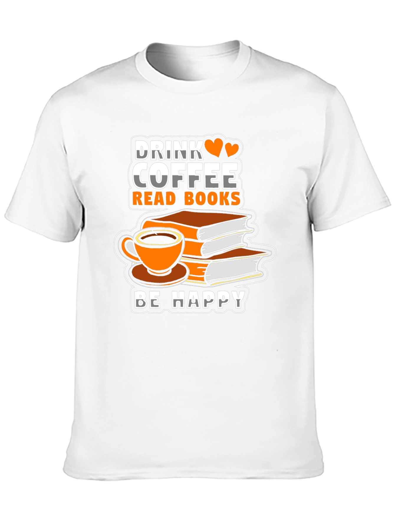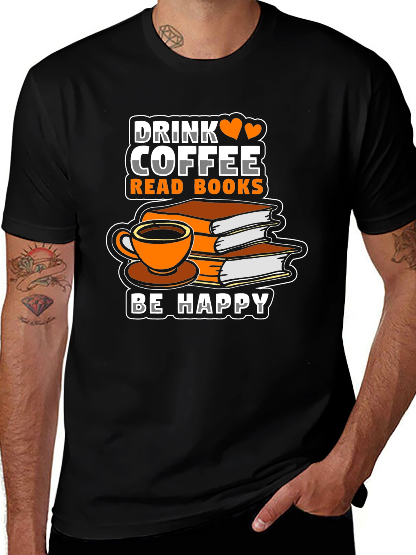 Luce esta moderna camiseta negra que combina estilo y comodidad. Presenta un diseño llamativo con las palabras "DRINK COFFEE READ BOOKS BE HAPPY", acompañadas de una taza de café y una pila de libros, todo en un estilo gráfico atractivo con bordes blancos. Perfecta para los amantes del café y la lectura, esta camiseta es ideal para usar en casa, en la biblioteca o en cualquier ocasión casual donde quieras expresar tu pasión por estos placeres. Su diseño único seguramente llamará la atención y despertará conversaciones interesantes. ¡Un imprescindible para tu guardarropa casual!