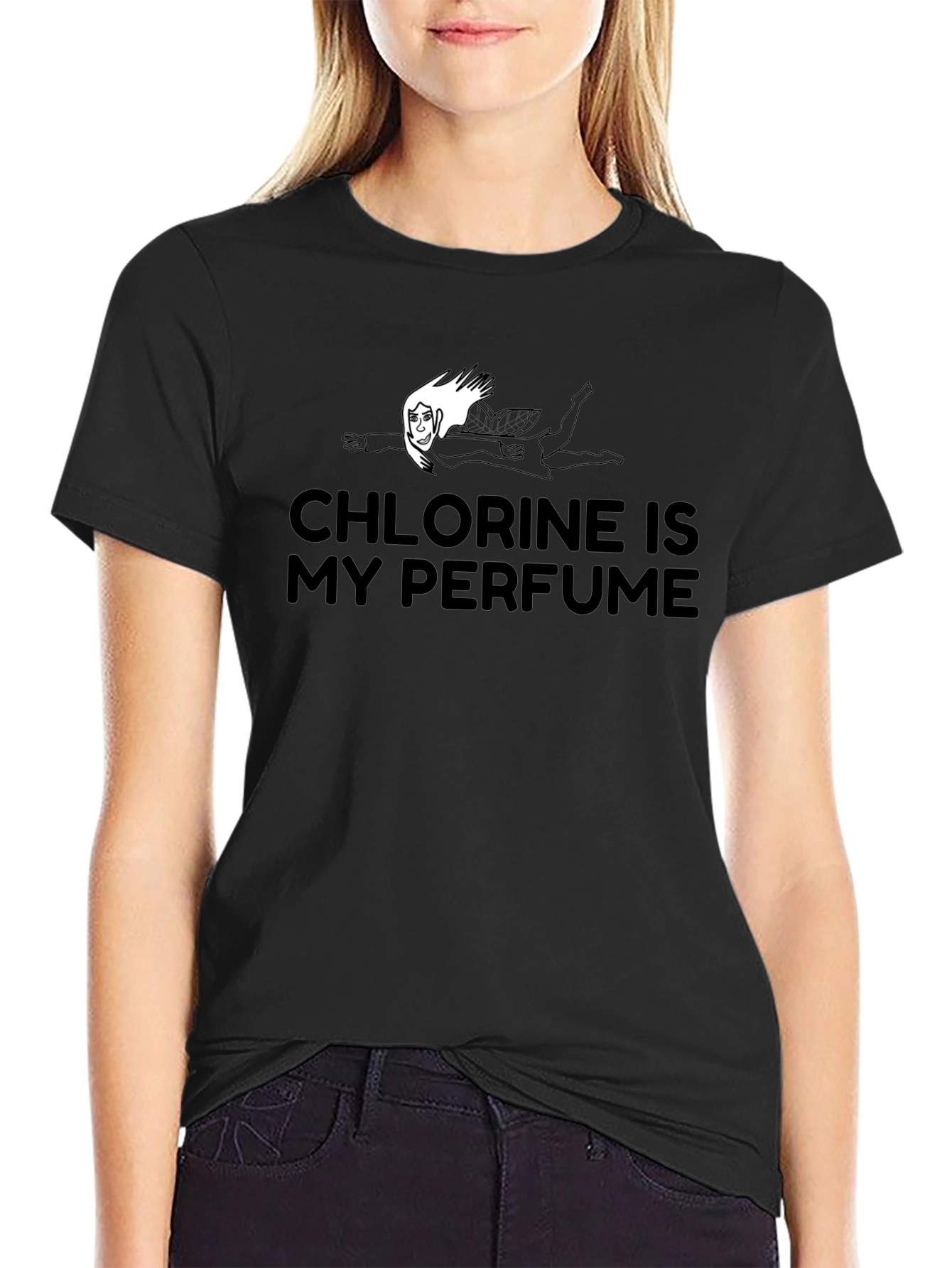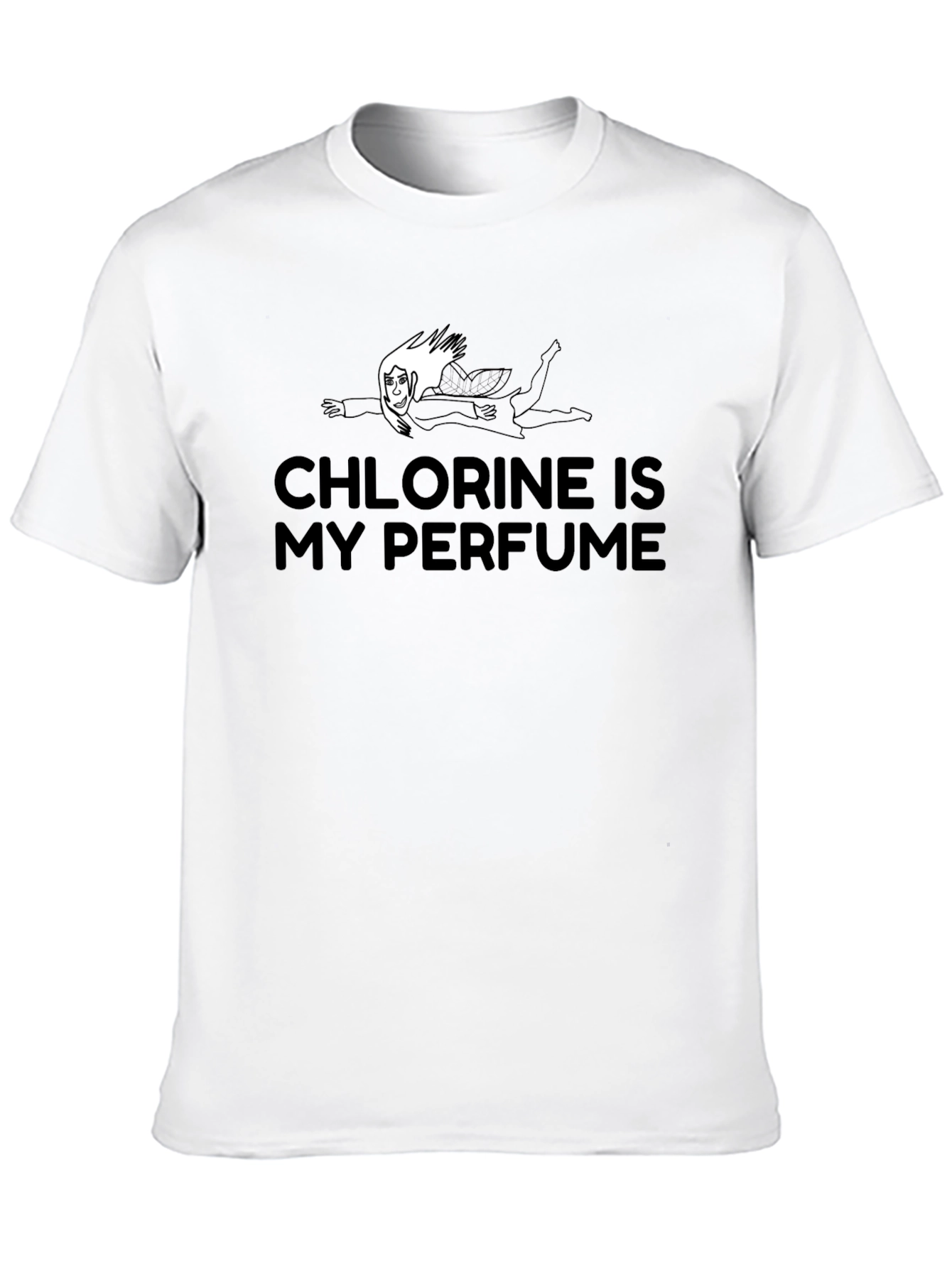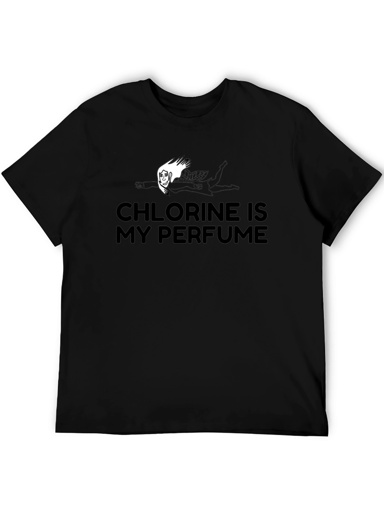Esta camiseta negra presenta un diseño divertido e ingenioso, ideal para los amantes de la natación o la química. En el centro, destaca la frase "CHLORINE IS MY PERFUME" (Cloro es mi perfume), acompañada de una ilustración de una persona nadando. La camiseta parece ser de algodón o una mezcla de algodón, lo que sugiere comodidad y durabilidad. Su corte clásico la hace perfecta para uso casual, ya sea en el gimnasio, en la piscina o simplemente para expresar tu pasión por el agua y la ciencia. Un regalo original y llamativo para cualquier ocasión.
