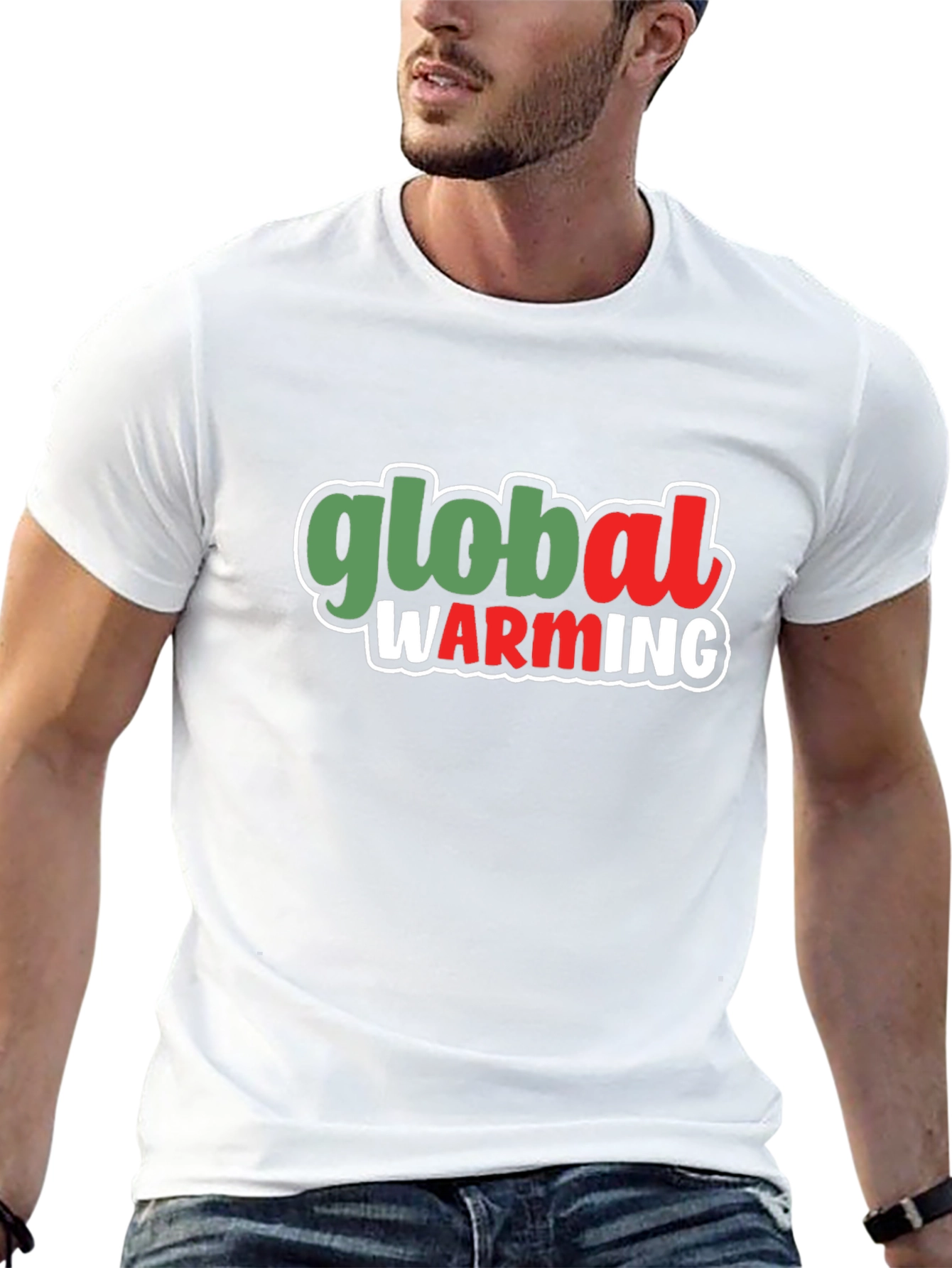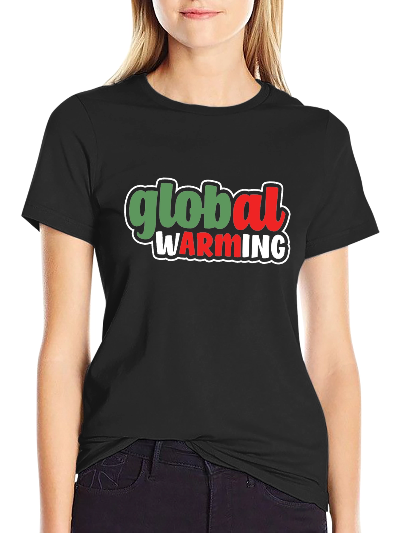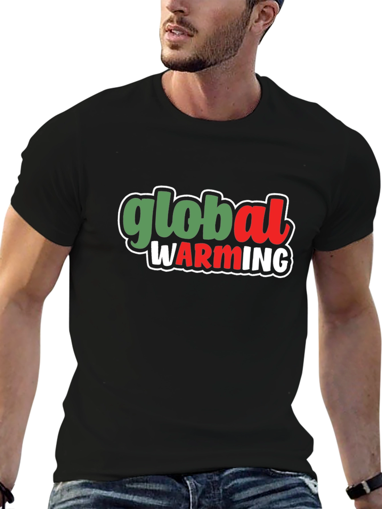 Luce esta moderna camiseta negra con un diseño llamativo que promueve la conciencia sobre el calentamiento global. El texto "global" en verde y "WARMING" en rojo resaltan sobre el fondo blanco, creando un contraste visual impactante. Fabricada con un tejido suave y cómodo, esta camiseta de manga corta es ideal para el uso diario. Perfecta para expresar tu preocupación por el medio ambiente con estilo. Úsala para eventos, salidas casuales o simplemente para relatar un mensaje importante. ¡Haz una declaración con esta prenda única y apoya la causa del planeta!
