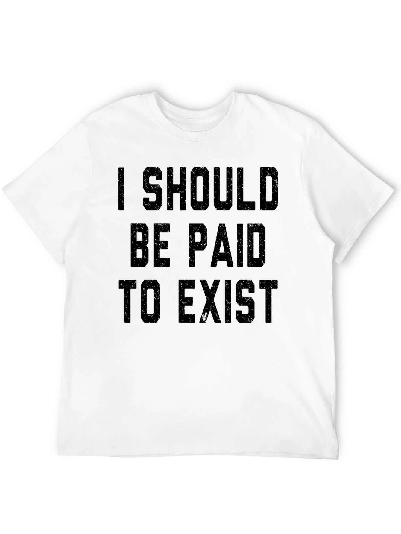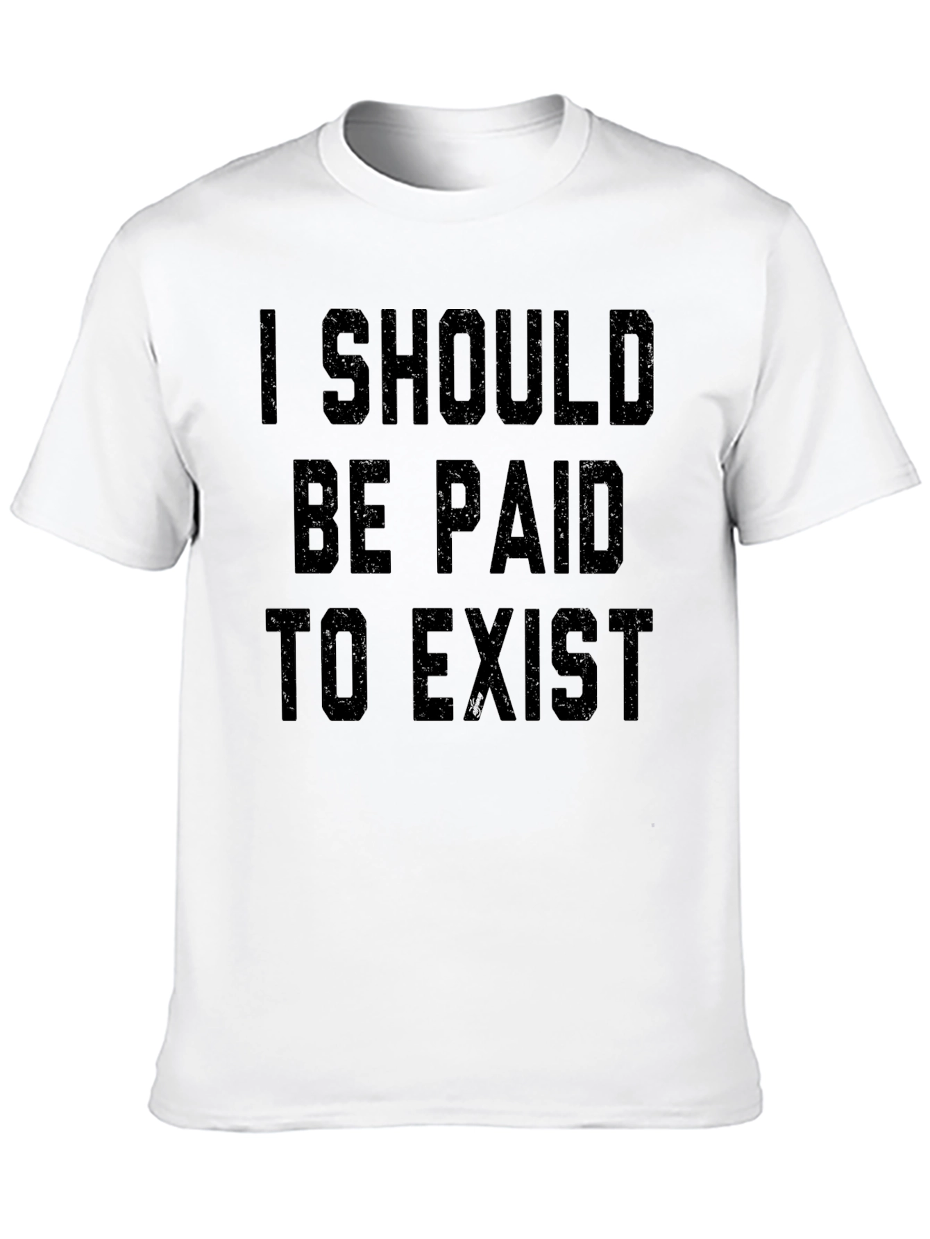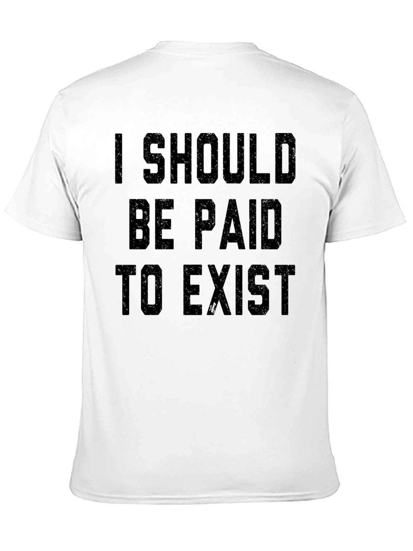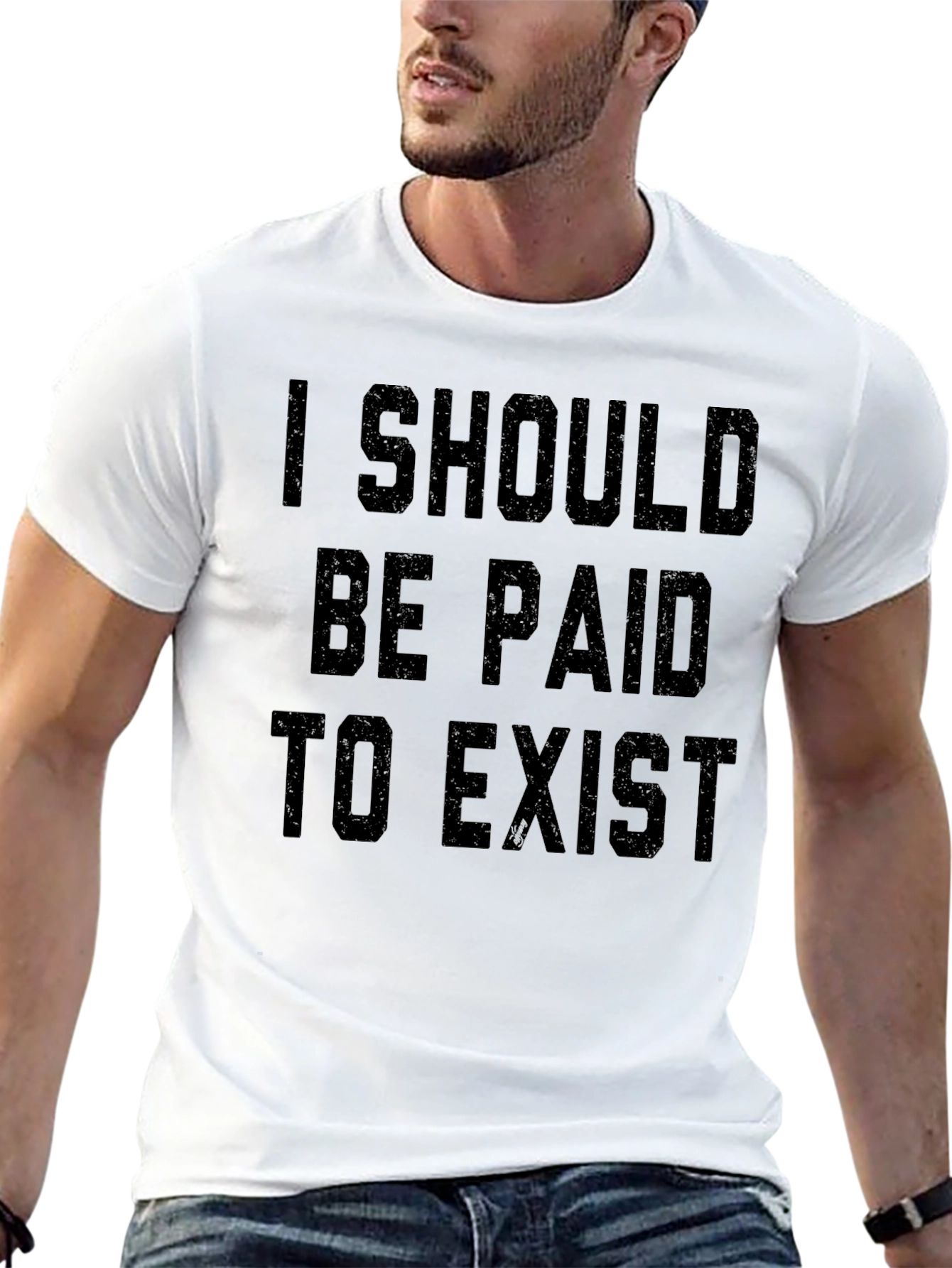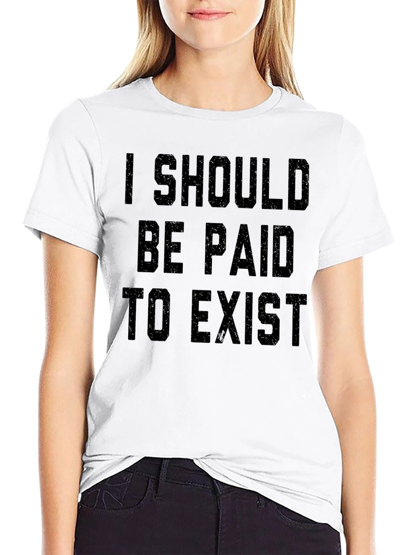Esta camiseta negra presenta un mensaje audaz y directo: "I SHOULD BE PAID TO EXIST" (Debería cobrar por existir). Fabricada con un material suave al tacto, parece ser de algodón o una mezcla similar, esta camiseta de corte clásico ofrece comodidad y estilo. Perfecta para aquellos que quieren expresar su individualidad y sentido del humor. Ideal para usar en salidas casuales, reuniones informales o simplemente para relajarse en casa con un toque de sarcasmo y originalidad. El diseño simple pero impactante la convierte en una prenda versátil que se puede combinar fácilmente con jeans, pantalones cortos o faldas.