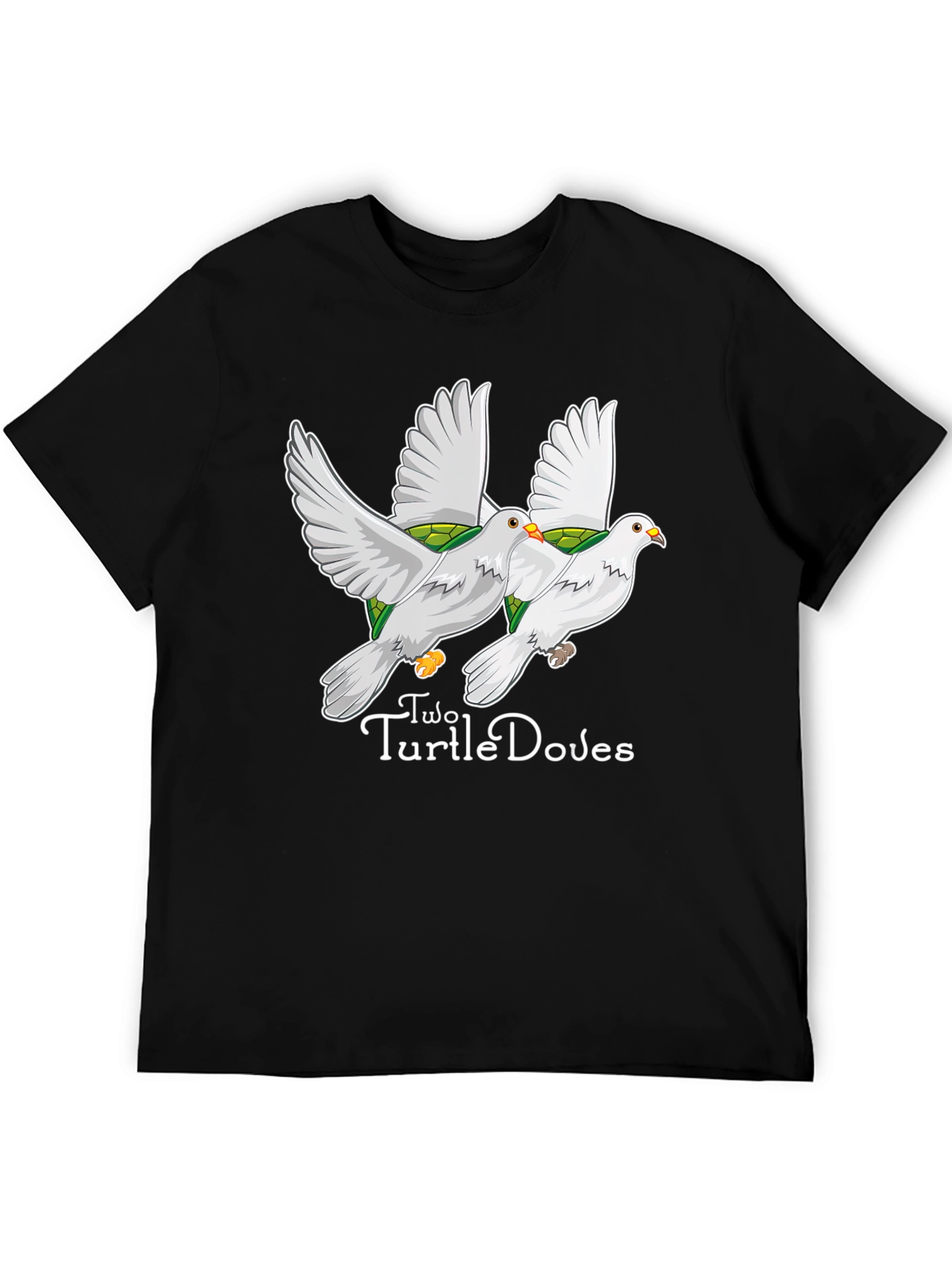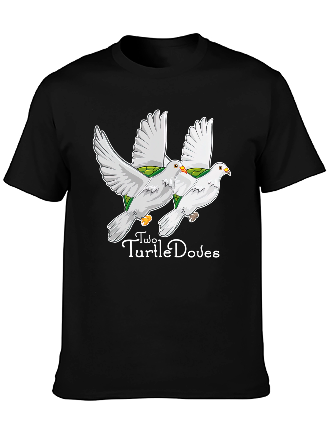 Luce esta original camiseta negra con un diseño único. Presenta dos adorables tórtolas blancas, estilizadas con caparazones de tortuga verdes, creando un contraste llamativo y divertido. La inscripción "Two Turtle Doves" en una elegante tipografía añade un toque especial. Perfecta para quienes buscan una prenda cómoda, con estilo y un guiño de originalidad. Ideal para el día a día, eventos casuales o como un regalo creativo. Fabricada con materiales suaves al tacto para asegurar confort y durabilidad. ¡Destaca con esta pieza única en tu guardarropa!