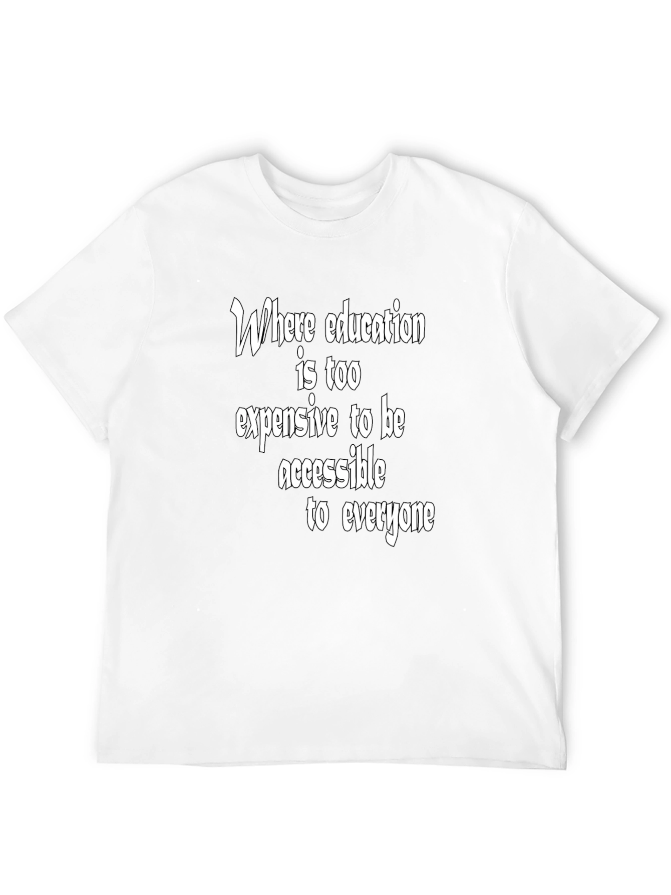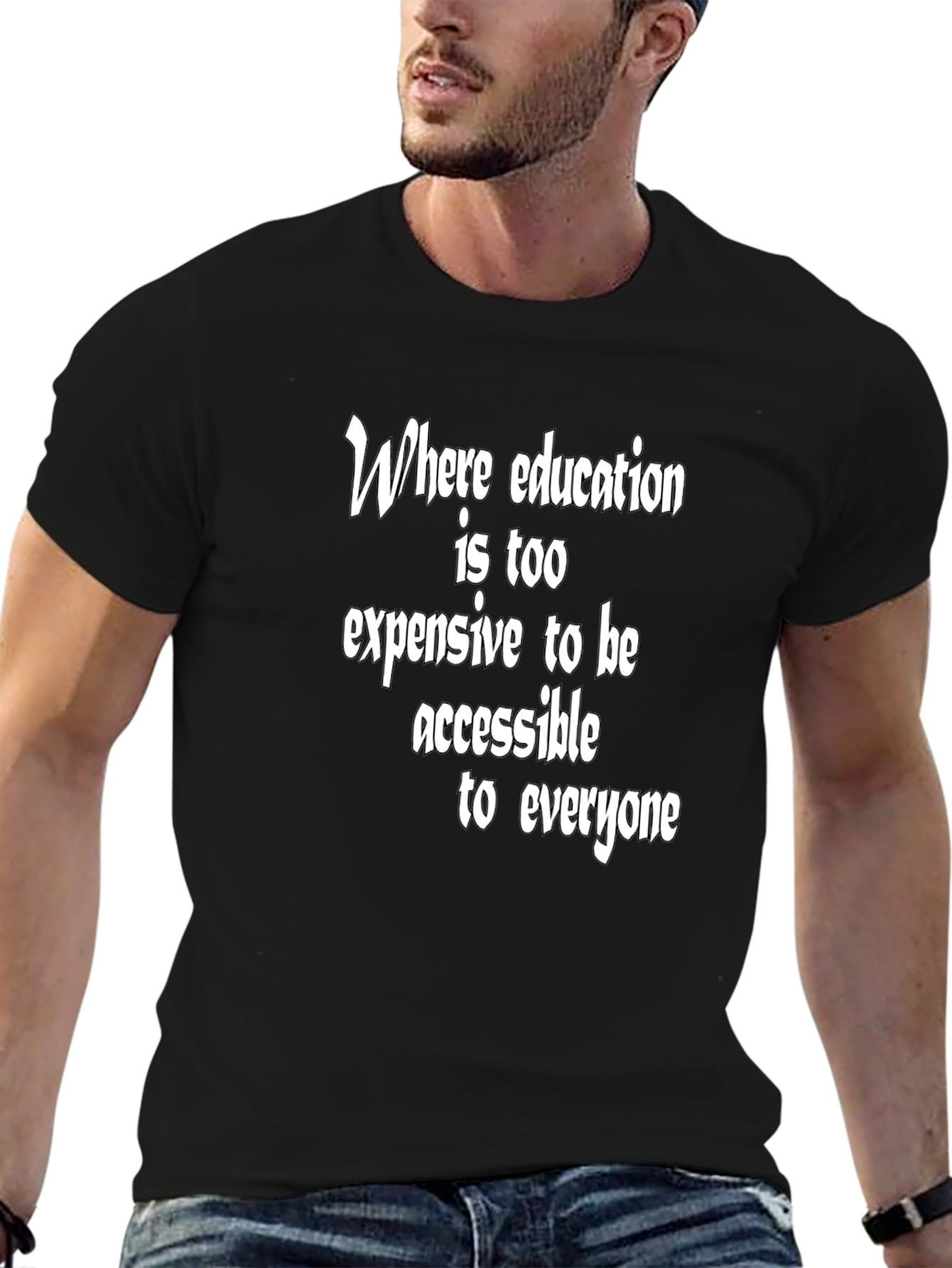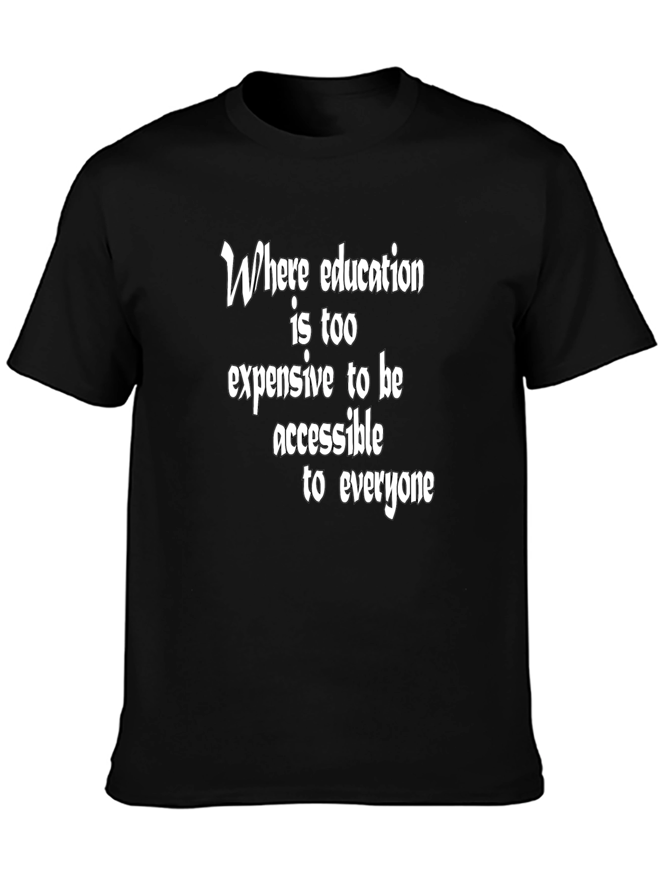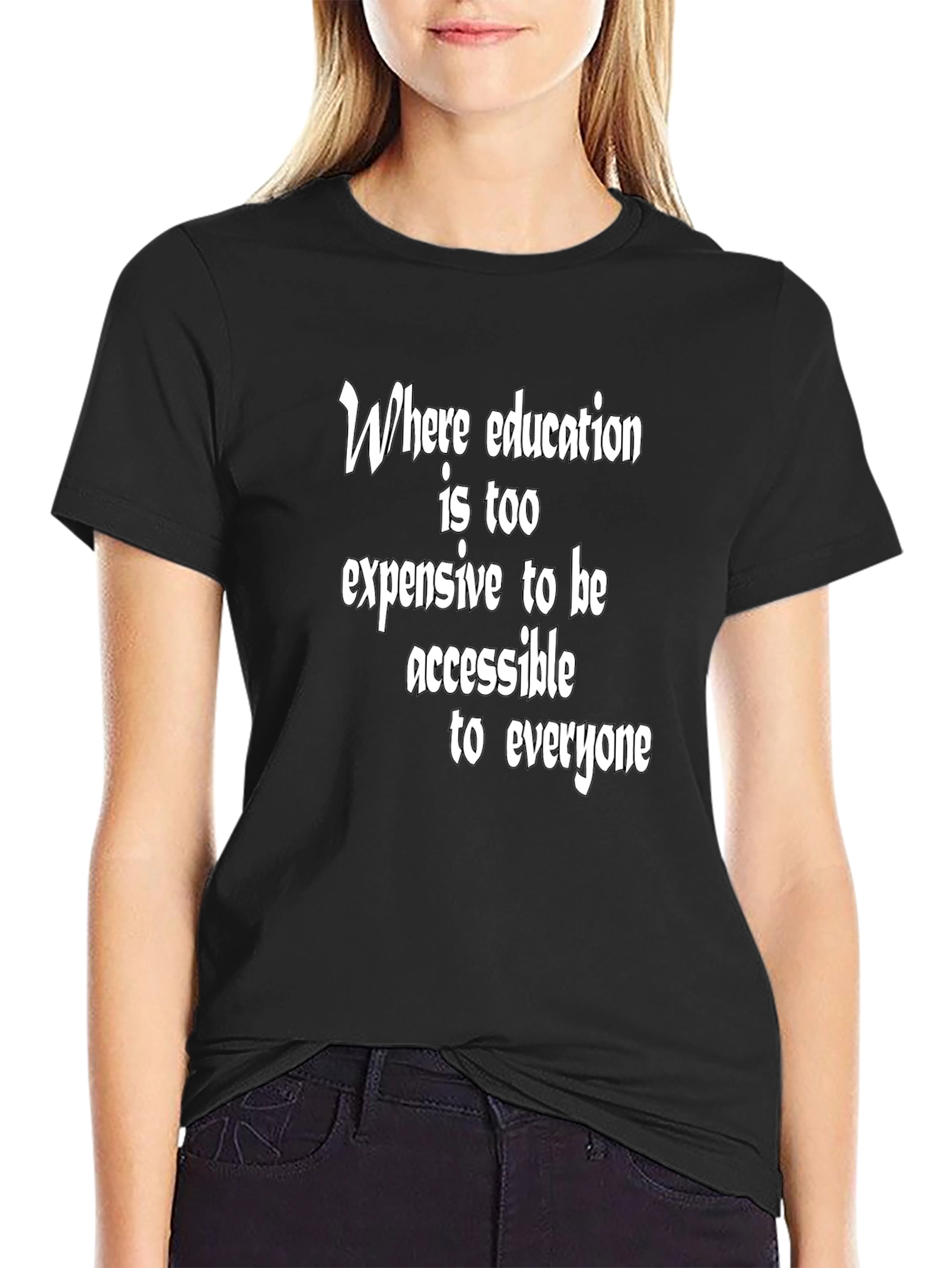 Luce esta impactante camiseta negra con un mensaje poderoso: "Donde la educación es demasiado cara para ser accesible a todos". Confeccionada en un material suave y cómodo, esta camiseta de manga corta presenta un diseño tipográfico llamativo en color blanco que resalta sobre el fondo negro. Ideal para expresar tus ideales y generar conversación sobre la importancia de la educación accesible. Perfecta para llevar en manifestaciones, clases o simplemente en tu día a día, demostrando tu compromiso con un futuro más justo. Un diseño moderno y reivindicativo para aquellos que creen en el poder transformador de la educación.