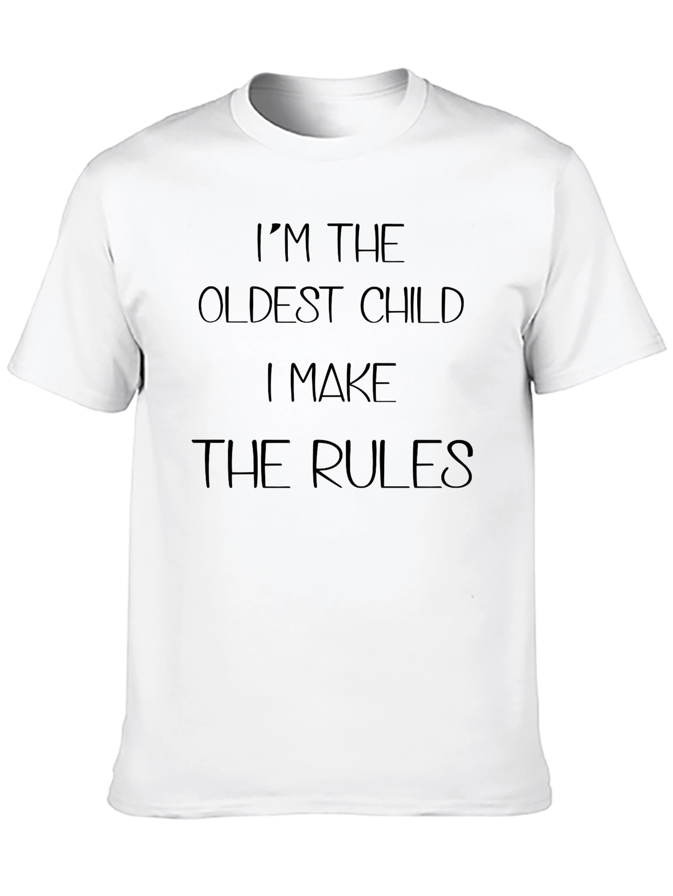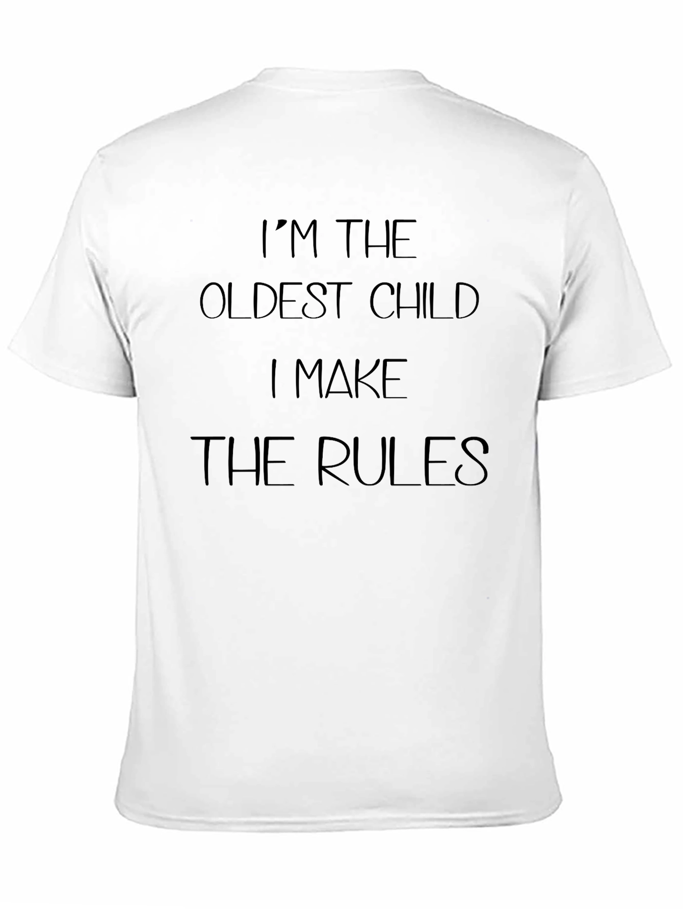 Luce esta camiseta negra que expresa tu autoridad como el hijo mayor. Con la frase "I'M THE OLDEST CHILD I MAKE THE RULES" estampada en la parte delantera, esta prenda de vestir comunica tu posición con estilo y humor. Ideal para uso diario, reuniones familiares o simplemente para expresar tu personalidad dominante. El diseño sencillo y clásico la hace versátil para combinar con diferentes estilos. Con esta camiseta, dejarás claro quién manda con una sonrisa.