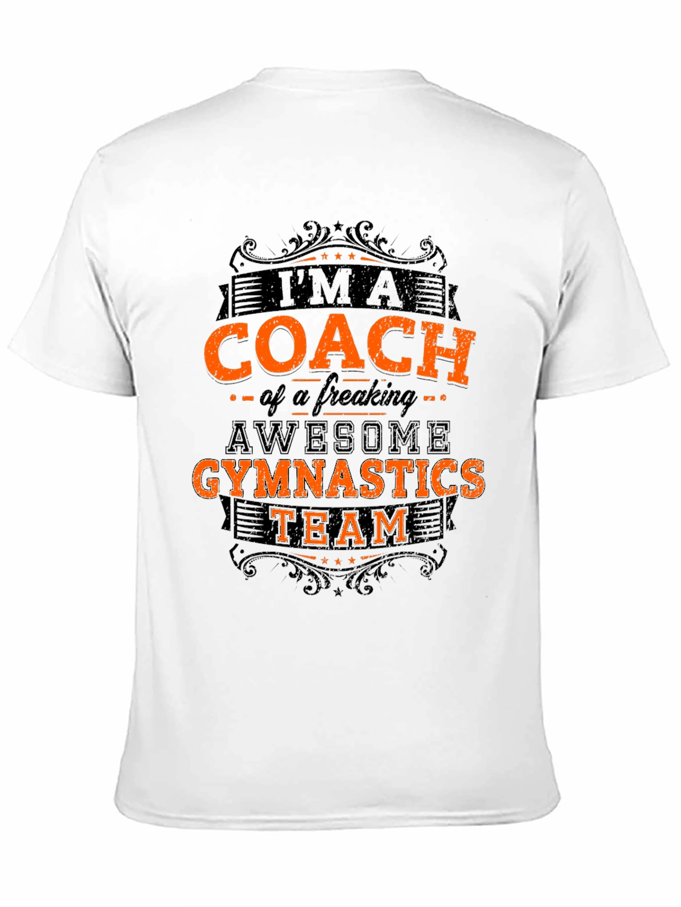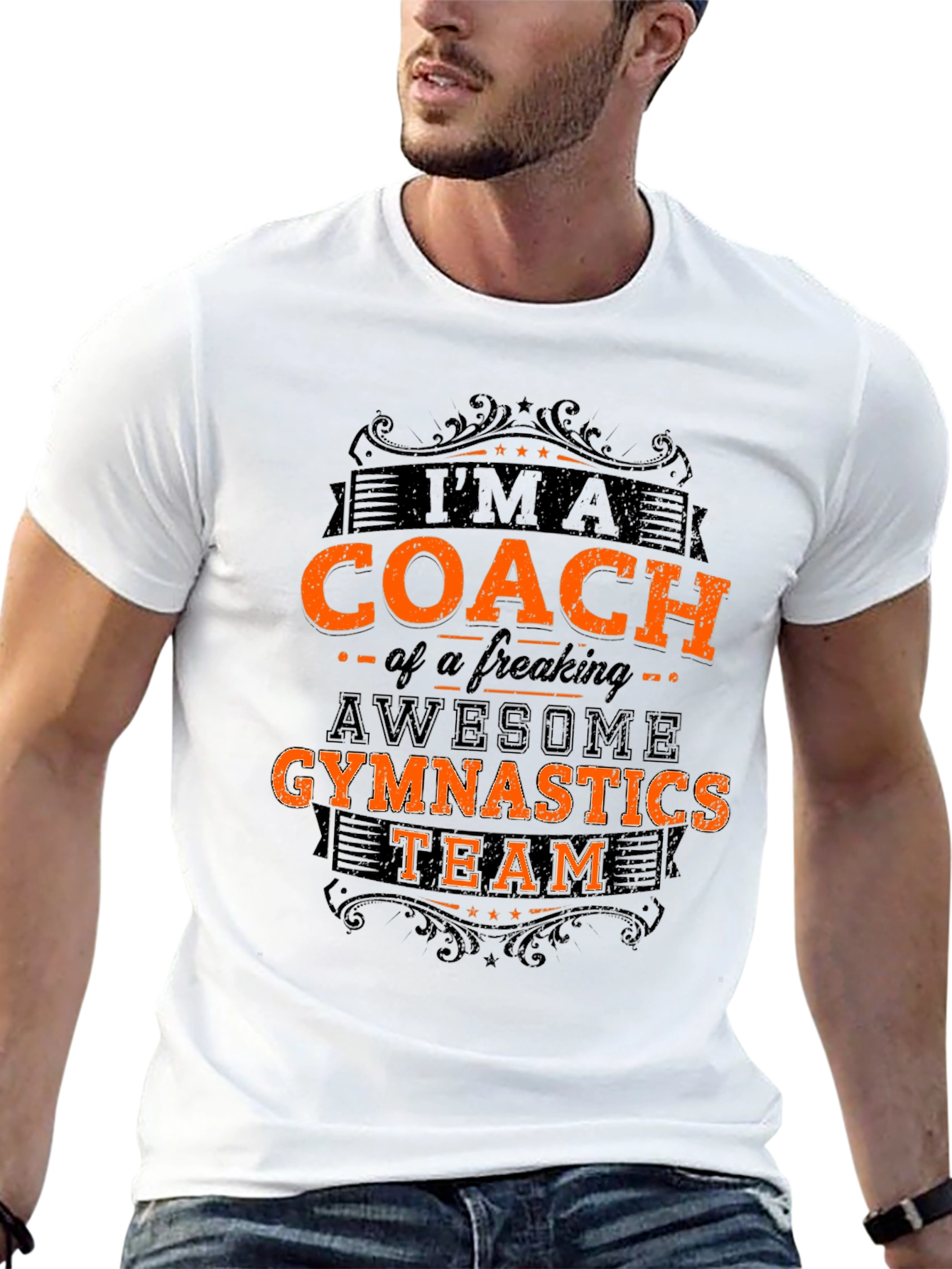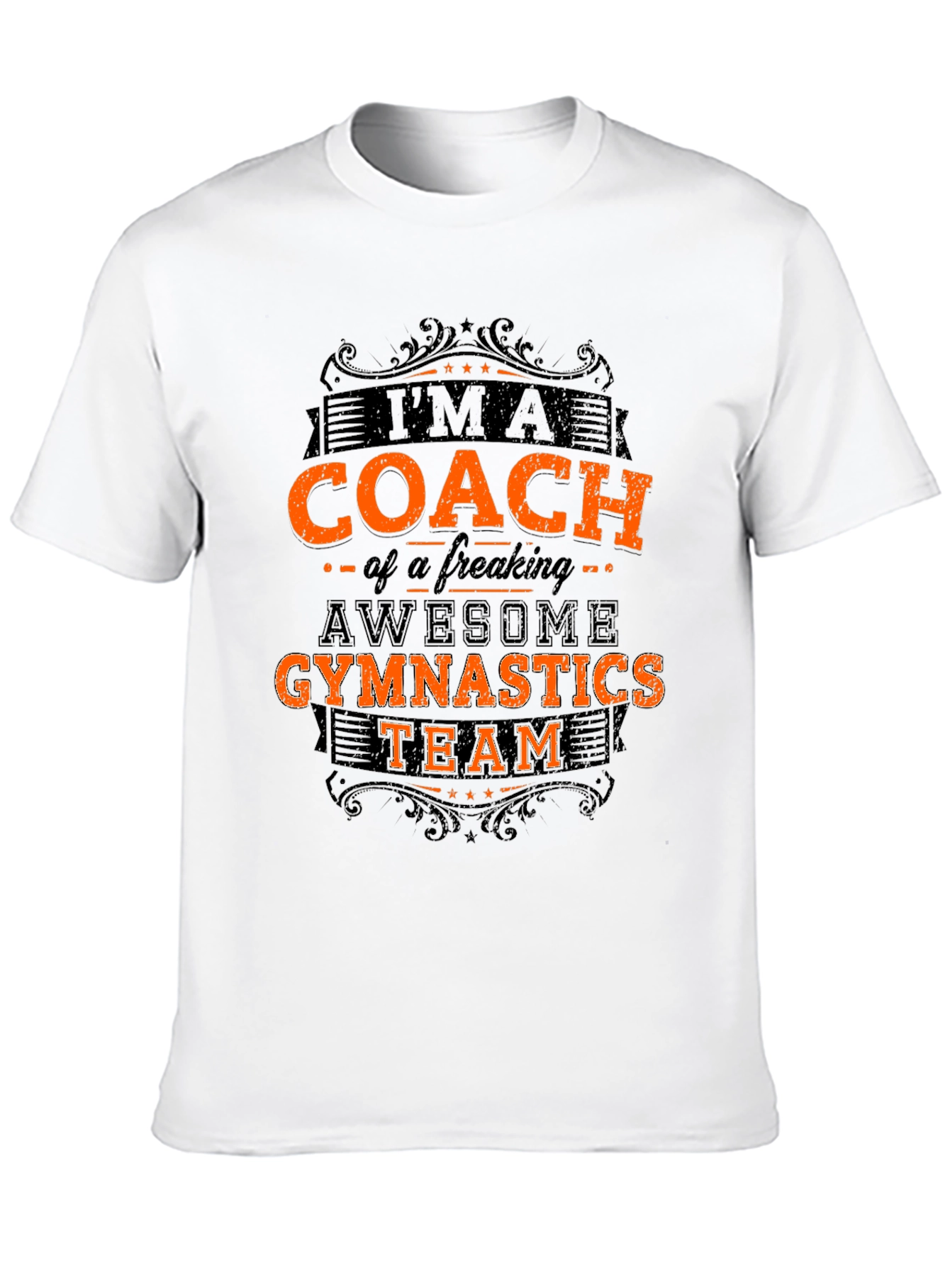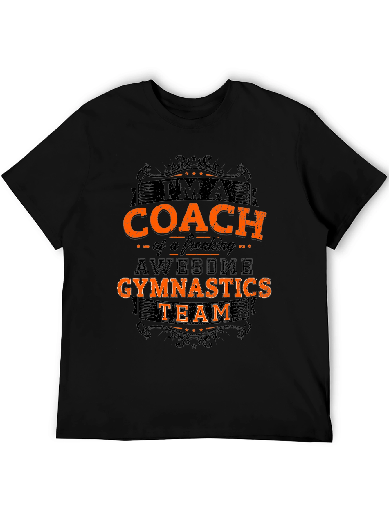 Esta elegante camiseta negra presenta un diseño audaz y llamativo, perfecto para cualquier entrenador de gimnasia orgulloso. La frase "I'M A COACH of a freaking AWESOME GYMNASTICS TEAM" destaca en letras anaranjadas con un efecto ligeramente desgastado, enmarcado en un diseño decorativo que le da un toque especial. Fabricada con materiales suaves y cómodos, esta camiseta es ideal para llevarla durante las sesiones de entrenamiento, competiciones o simplemente para el día a día. Muestra tu pasión y dedicación al mundo de la gimnasia con esta prenda única y divertida. Perfecta como regalo para ese entrenador especial en tu vida.