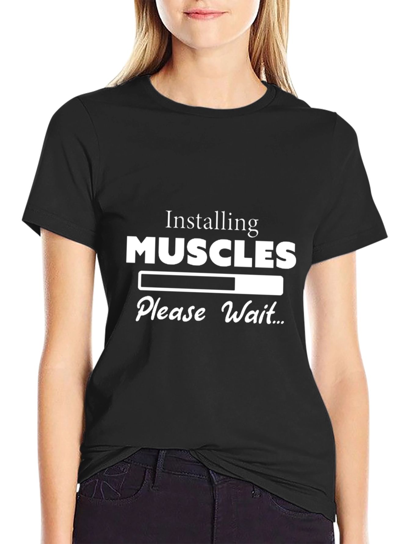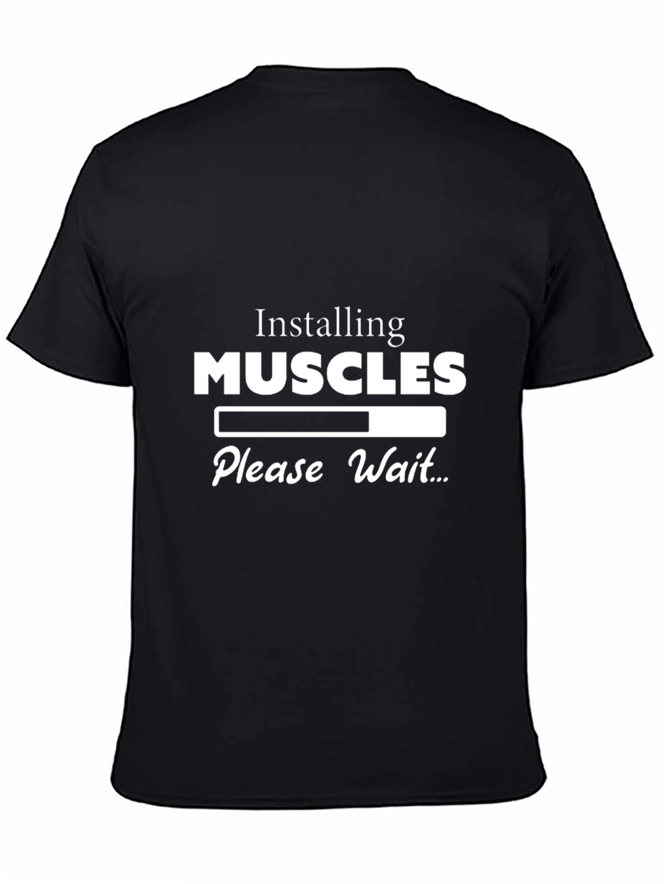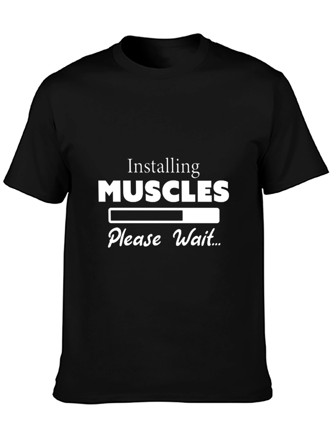 Esta camiseta negra de manga corta presenta un diseño divertido y llamativo. Con la frase "Installing MUSCLES, Please Wait..." acompañada de una barra de progreso, esta prenda es perfecta para los amantes del gimnasio o aquellos con sentido del humor. El diseño blanco resalta sobre el fondo negro, garantizando visibilidad y estilo. Ideal para llevar al gimnasio, durante entrenamientos o simplemente para un look casual y relajado. Fabricada con materiales cómodos y duraderos, esta camiseta se convertirá en tu favorita.