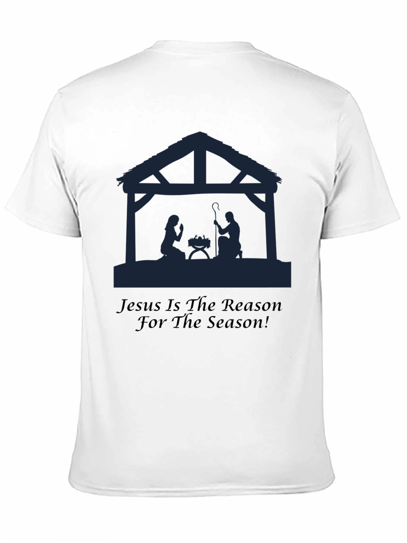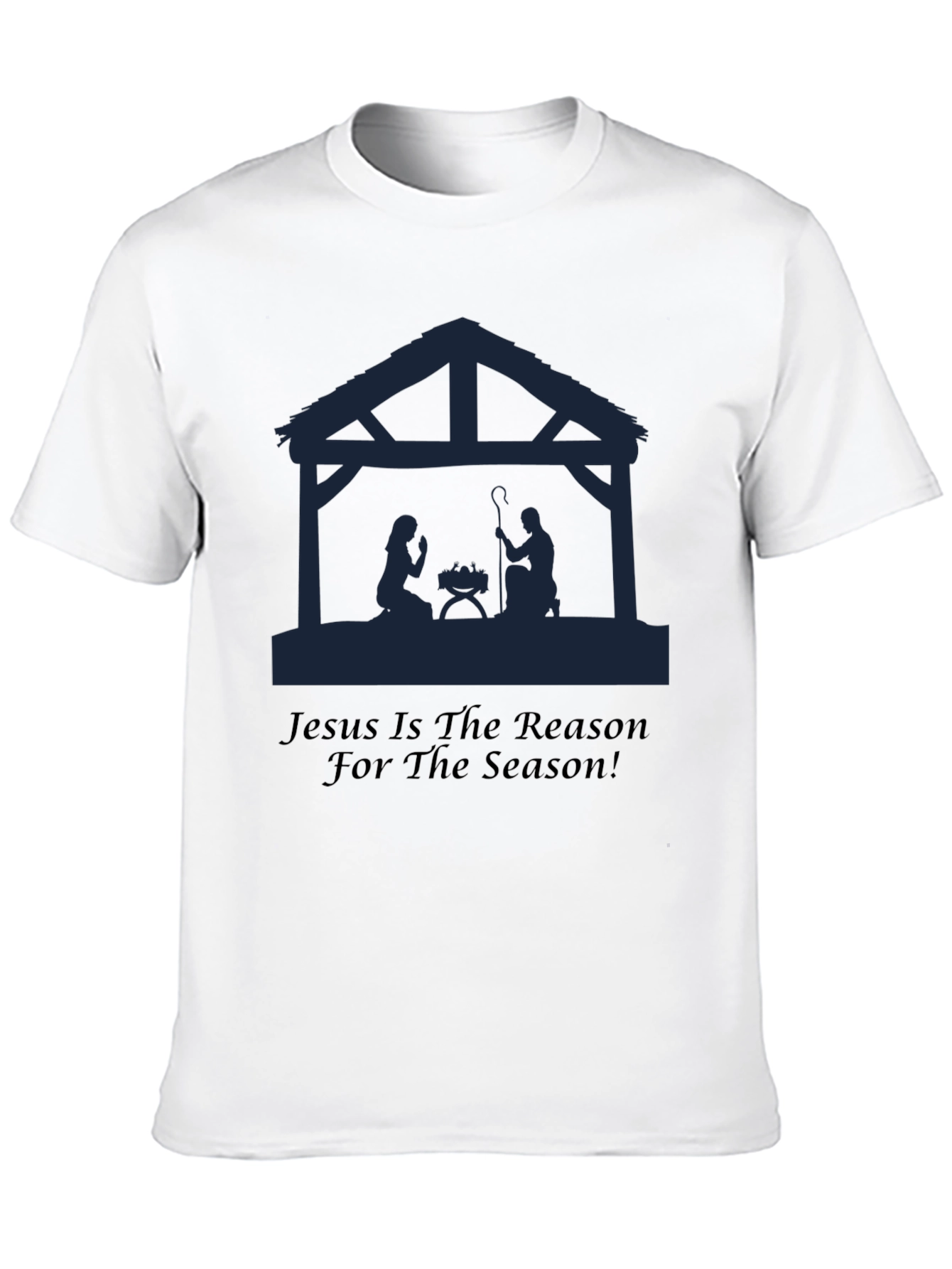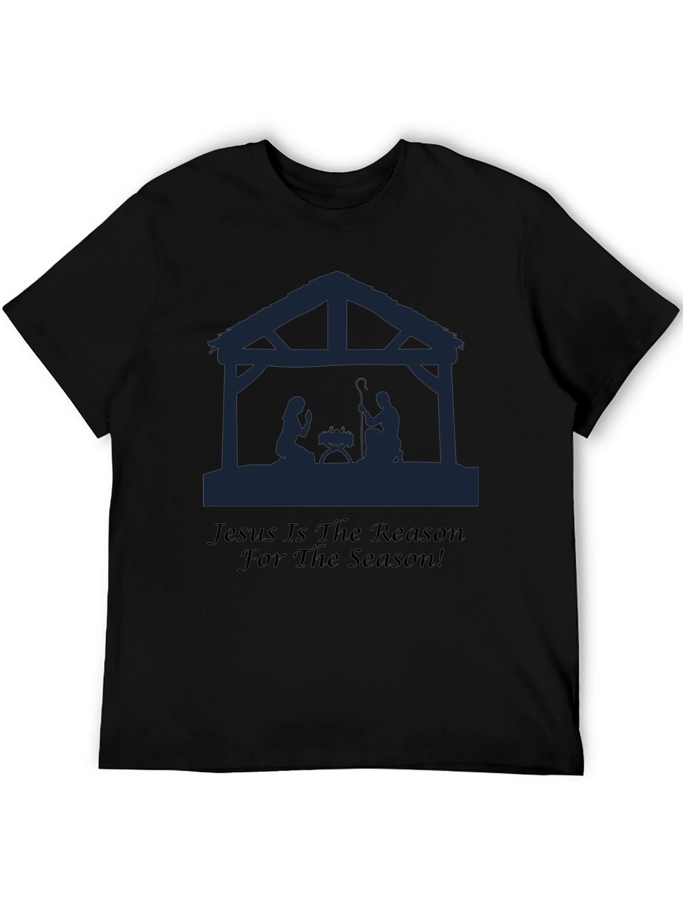 Celebra la temporada navideña con estilo y fe con esta camiseta negra de manga corta. Presenta un diseño de silueta azul oscuro de la escena del nacimiento de Jesús, acompañado del inspirador mensaje "Jesús es la Razón de la Navidad". Ideal para usar durante las fiestas, eventos religiosos o como un regalo significativo para amigos y familiares. Su tejido suave ofrece comodidad y durabilidad, mientras que su corte clásico asegura un ajuste favorecedor. Muestra tu espíritu navideño y tu fe con esta prenda única y llamativa.