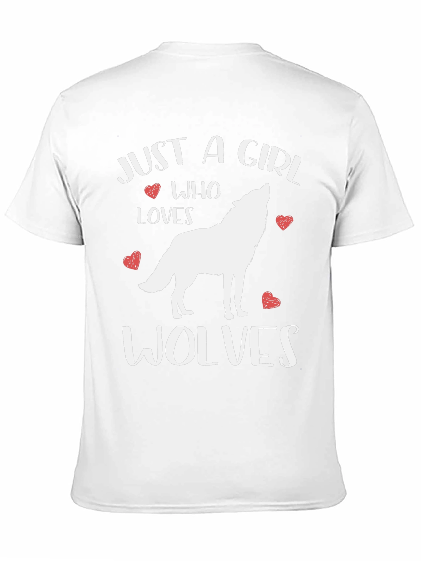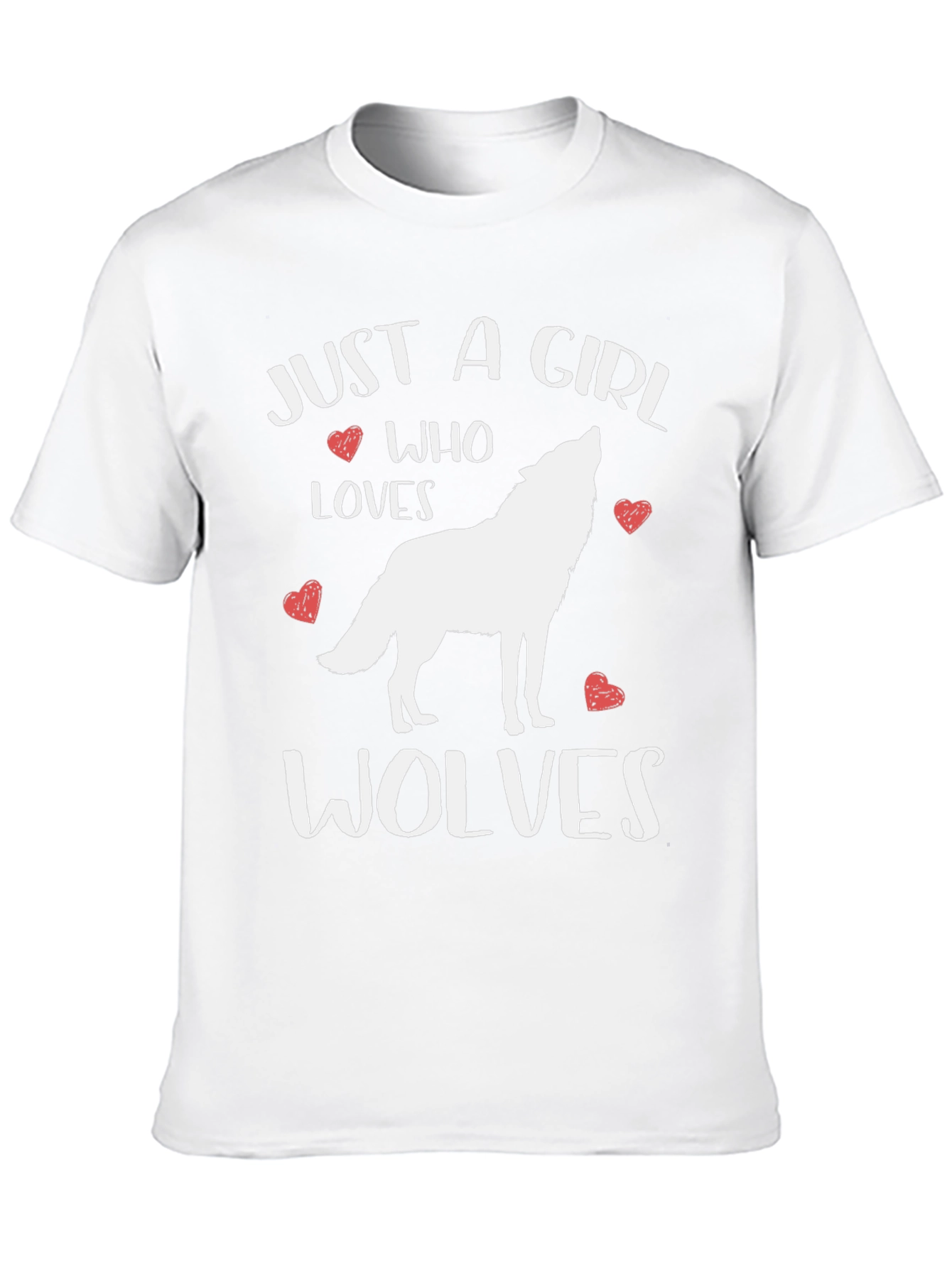 Muestra tu amor por los lobos con esta camiseta negra de manga corta. Presenta un diseño llamativo con la frase "Just A Girl Who Loves Wolves" en letras blancas, adornado con un lobo blanco aullando y pequeños corazones rojos. Ideal para uso diario, esta camiseta combina comodidad y estilo. Perfecta para los amantes de la naturaleza y los animales. Su diseño único la convierte en una prenda versátil para combinar con jeans o pantalones casuales. ¡Expresa tu pasión por los lobos con esta prenda original y llamativa!