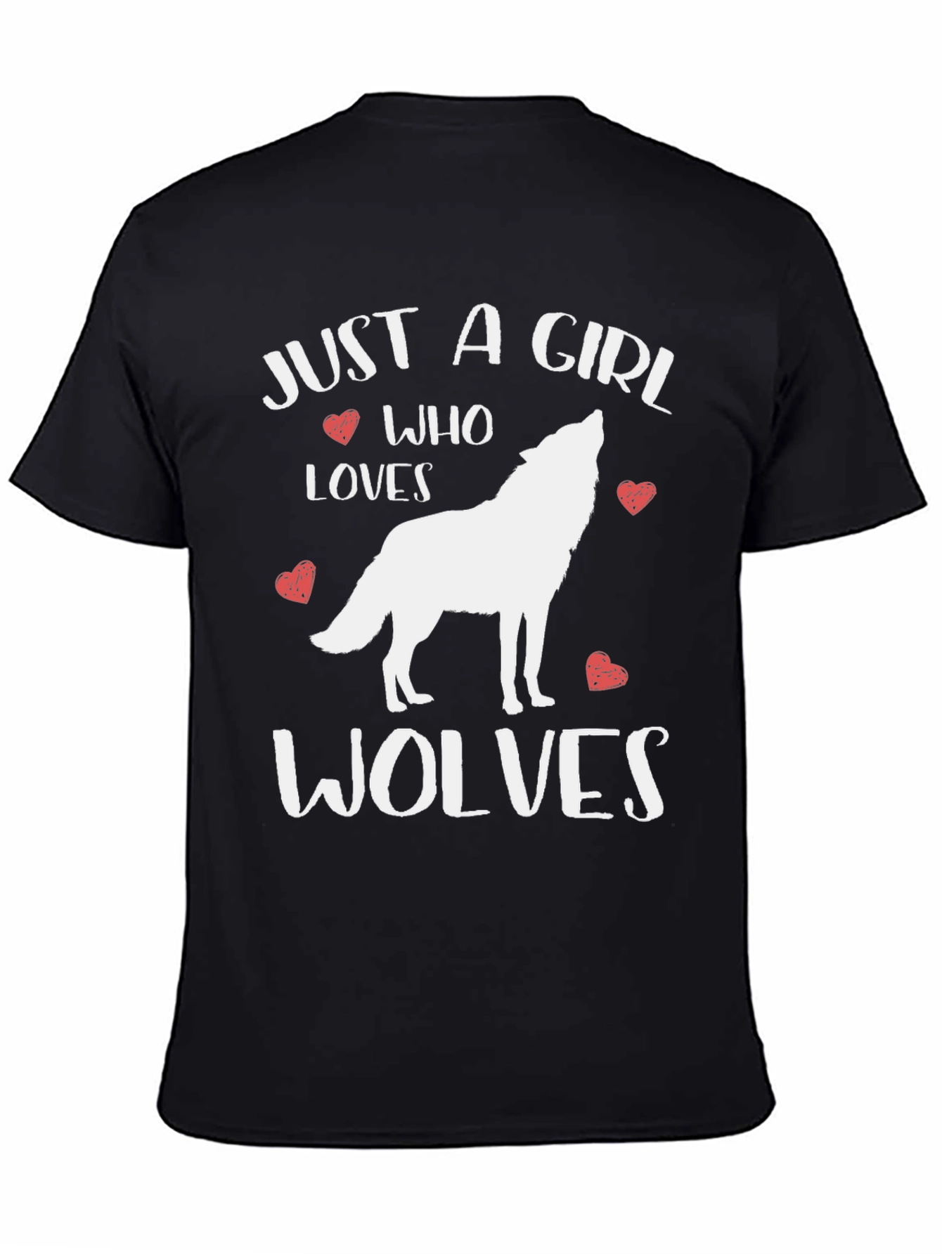 Camiseta Negra: Just A Girl Who Loves Wolves