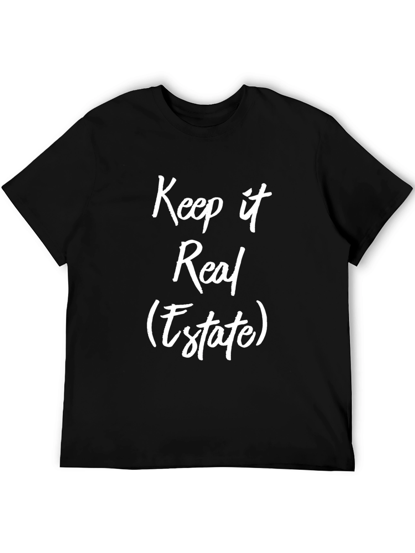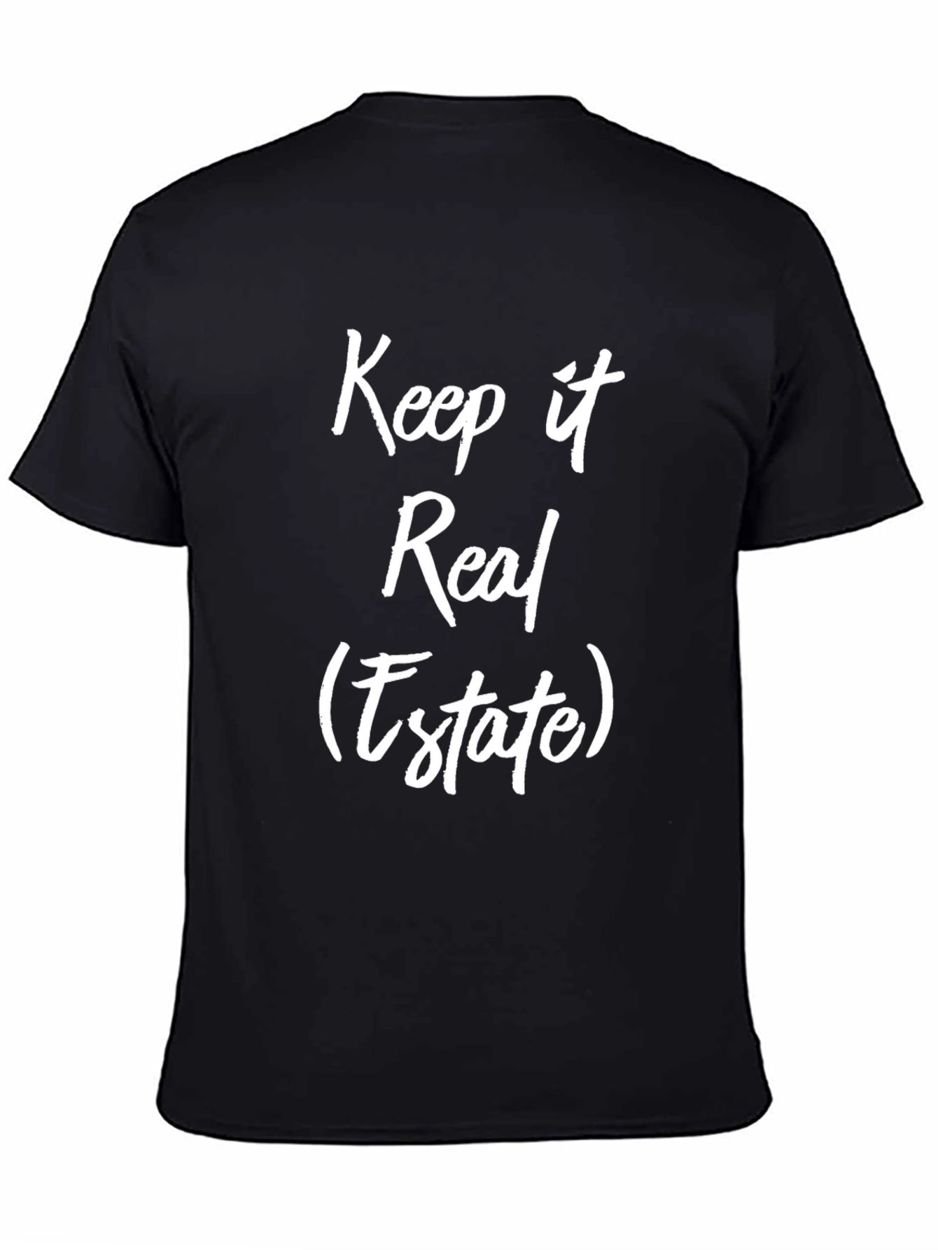 Luce con estilo esta camiseta negra de manga corta con un diseño llamativo. La frase "Keep it Real (Estate)" estampada en blanco destaca sobre el fondo oscuro, creando un contraste moderno y atractivo. Ideal para los amantes del sector inmobiliario con sentido del humor. Fabricada con materiales suaves y cómodos, esta camiseta es perfecta para usar a diario, ya sea para salir con amigos o relajarte en casa. Su corte clásico se adapta a cualquier estilo, brindando comodidad y libertad de movimiento. Combínala con jeans, pantalones casuales o shorts para un look versátil y lleno de personalidad.