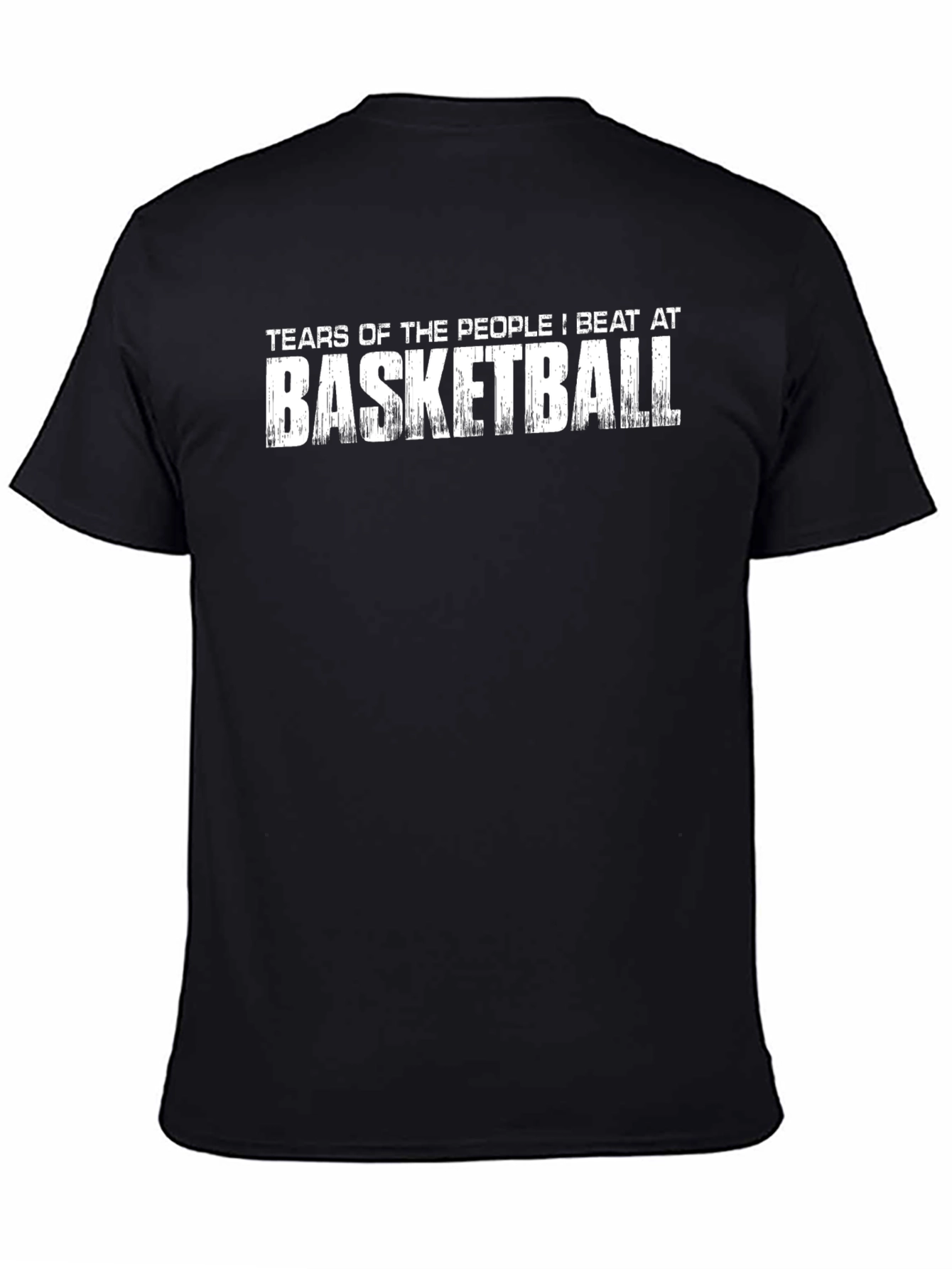Muestra tu dominio en la cancha con esta camiseta negra de algodón, que presenta un estampado llamativo en blanco: "Tears of the people I Beat at Basketball". De manga corta y cuello redondo clásico, esta prenda ofrece comodidad y estilo para tus entrenamientos o para un look casual. Ideal para jugadores de baloncesto seguros de sí mismos y con un toque de humor. Destaca entre la multitud y haz una declaración audaz con esta prenda única. Perfecta para regalar a ese amigo competitivo o para lucir en tu próximo partido.