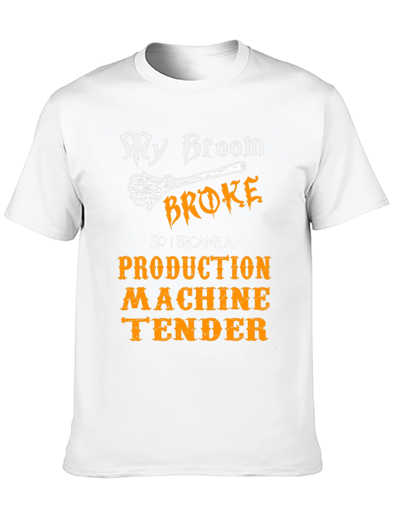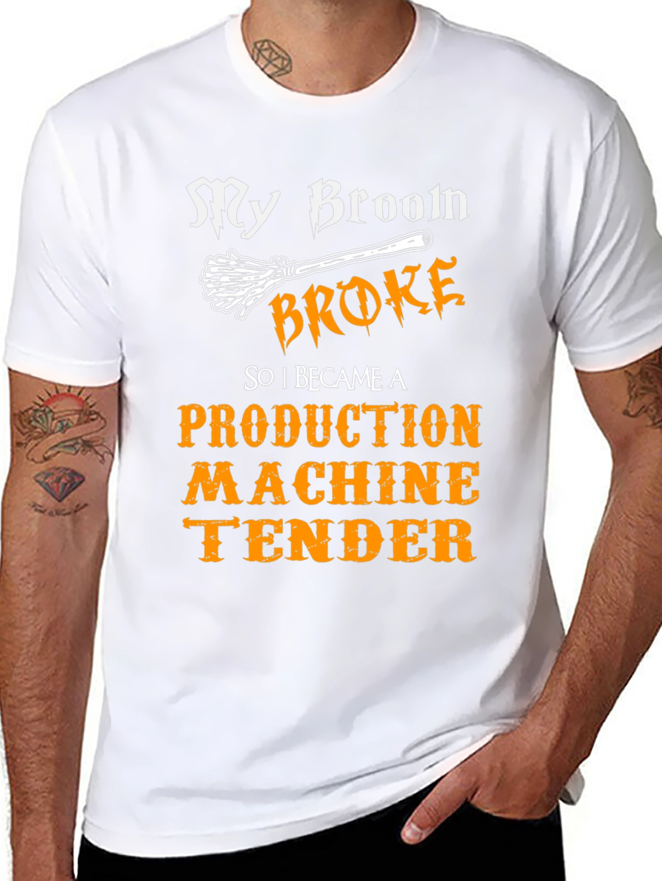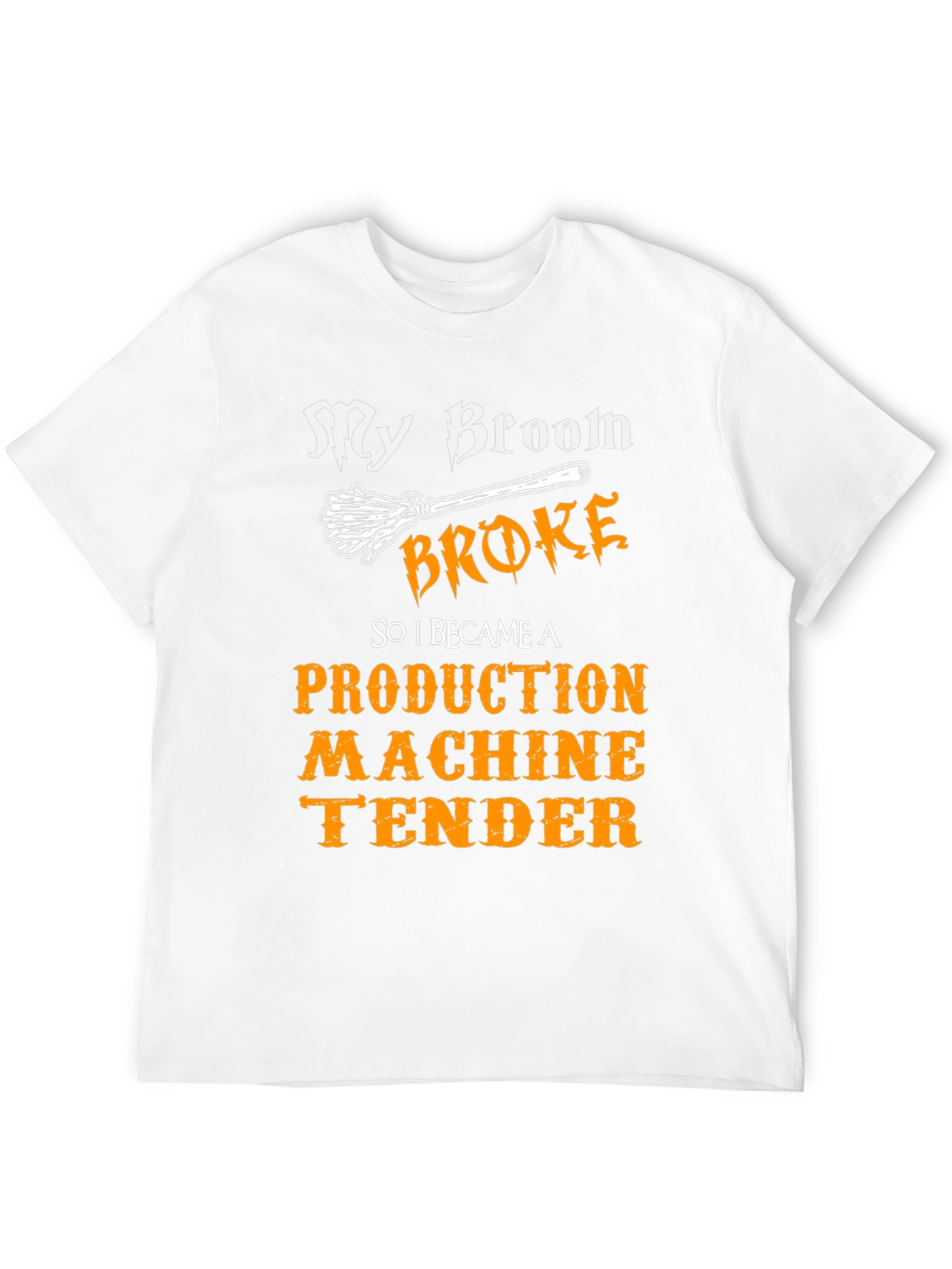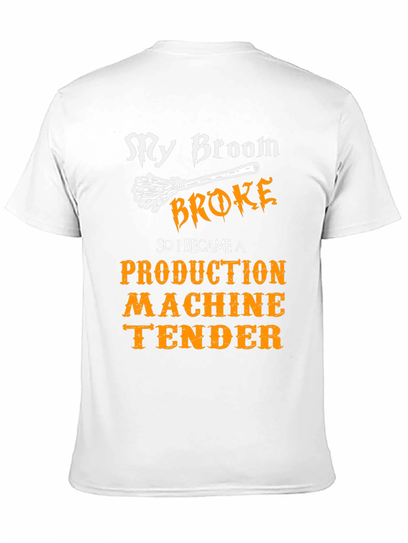 Luce esta camiseta negra con un diseño ingenioso. Presenta una ilustración de una escoba rota y el texto "My Broom BROKE SO I BECAME A PRODUCTION MACHINE TENDER". Ideal para aquellos con sentido del humor y que aprecian un diseño original. Perfecta para usar en el trabajo, en casa o para salir con amigos. Hecha con materiales cómodos y duraderos, esta camiseta es una excelente adición a cualquier guardarropa casual. ¡Demuestra tu estilo único con esta prenda llamativa y divertida!