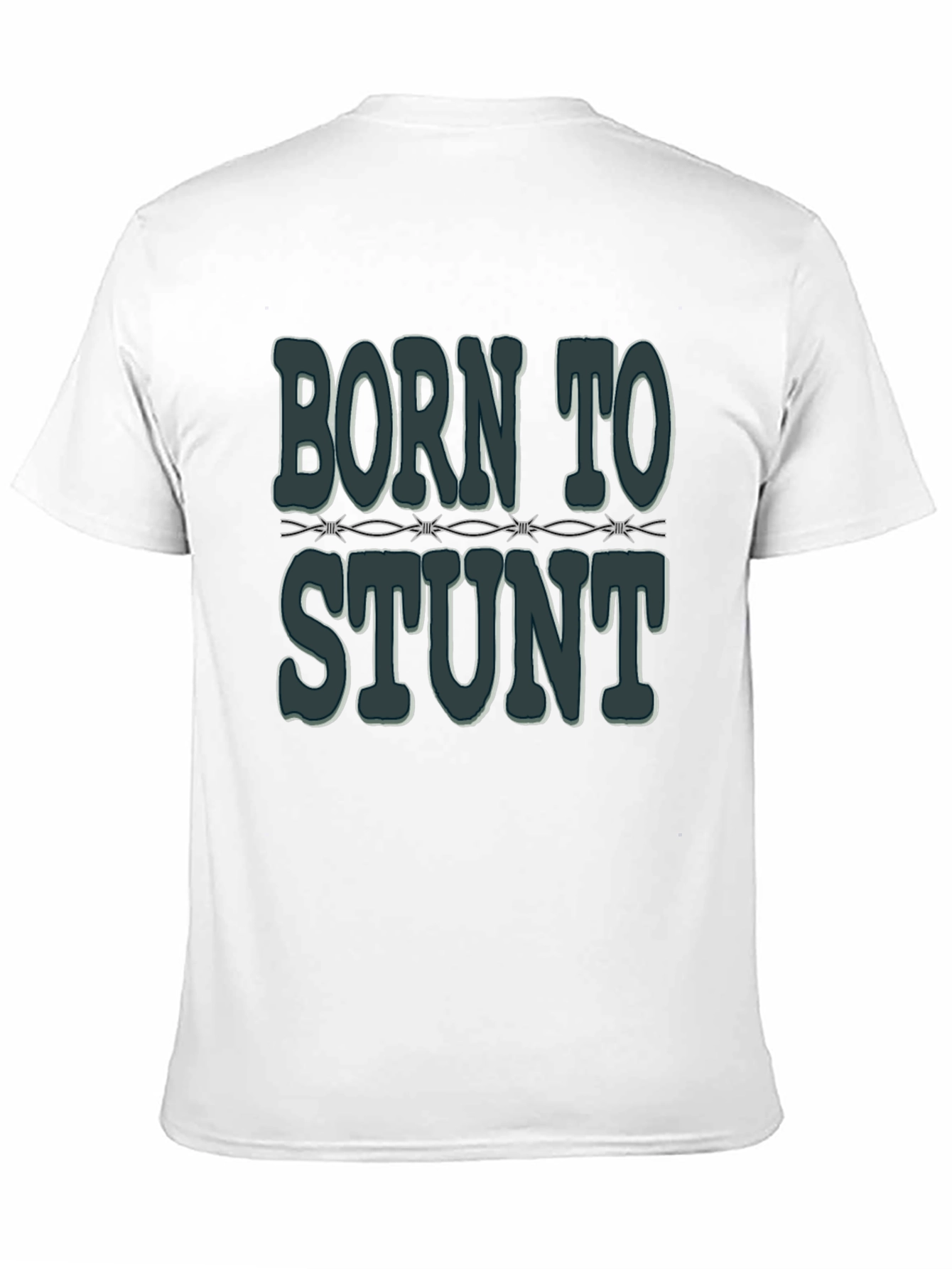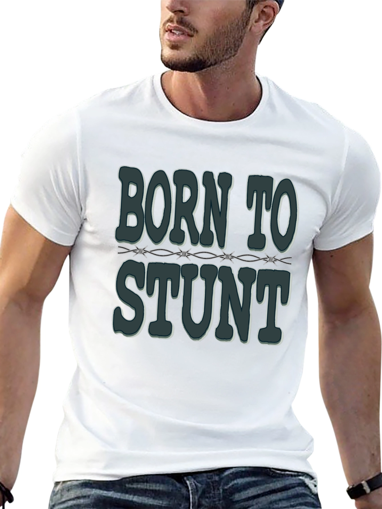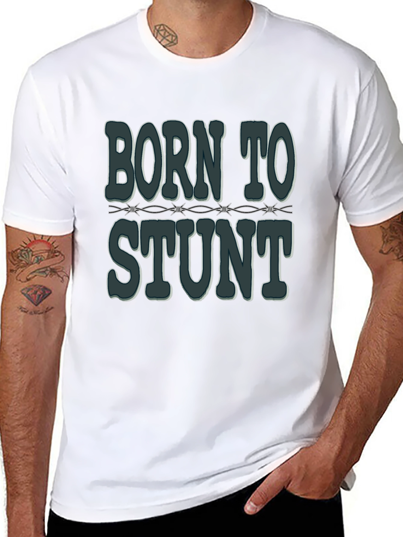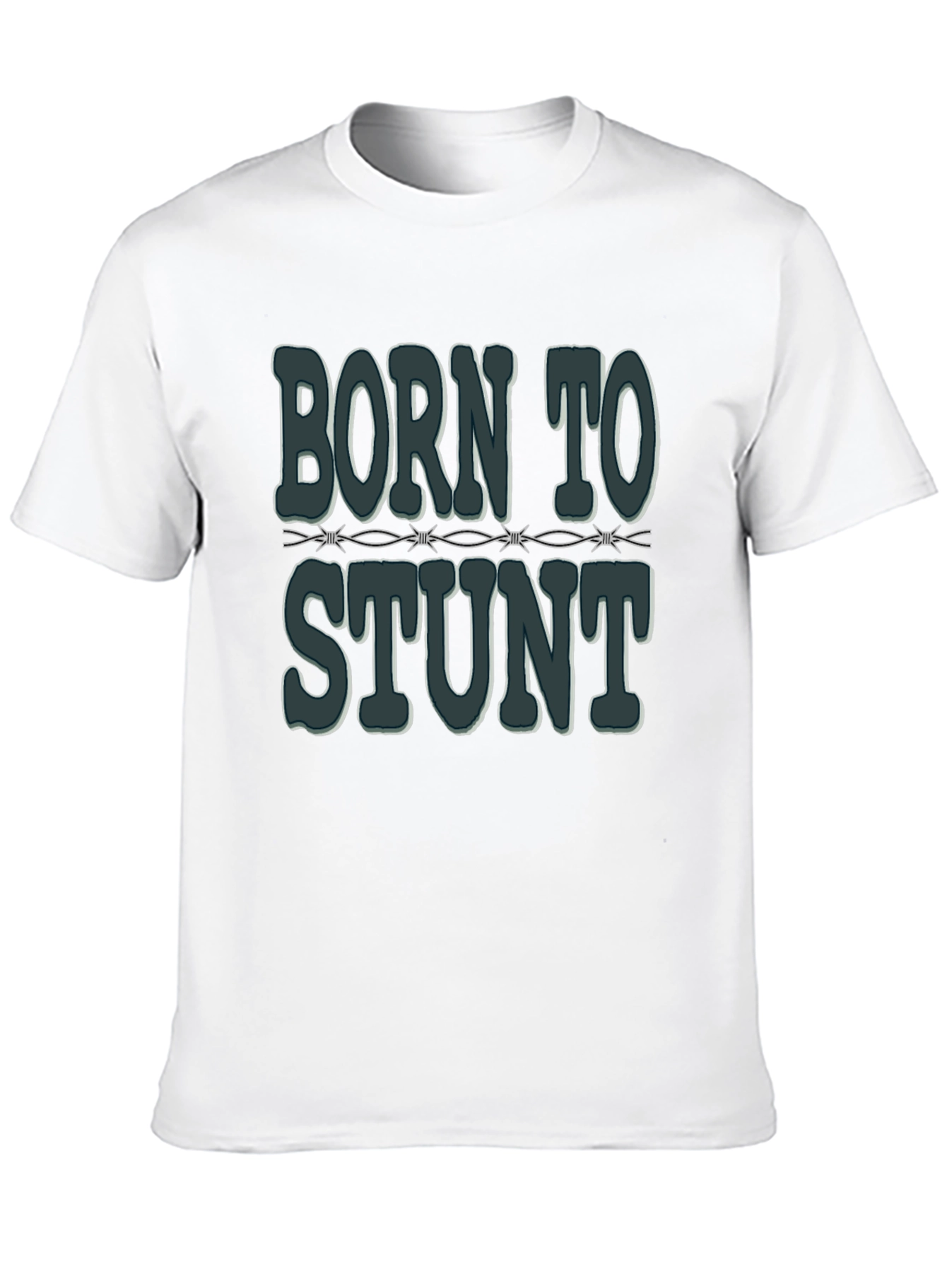 Destaca con esta camiseta negra de manga corta con un diseño audaz. La frase "BORN TO STUNT" se presenta en letras llamativas con un sombreado fresco, separada por una línea de alambre de púas estilizada para un toque rebelde. Perfecta para quienes aman los deportes de acción, los stunts o simplemente expresar su personalidad única. Fabricada con materiales suaves y cómodos, ideal para uso diario o para destacar en eventos informales. Luce un estilo atrevido y deja que tu camiseta hable por ti.