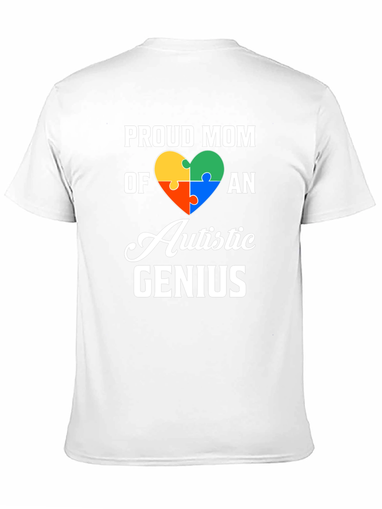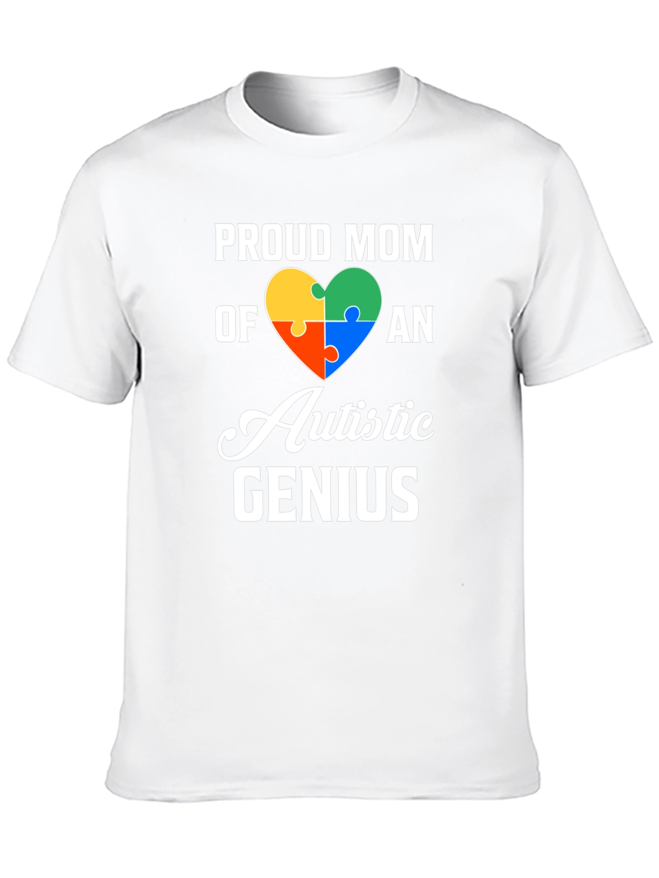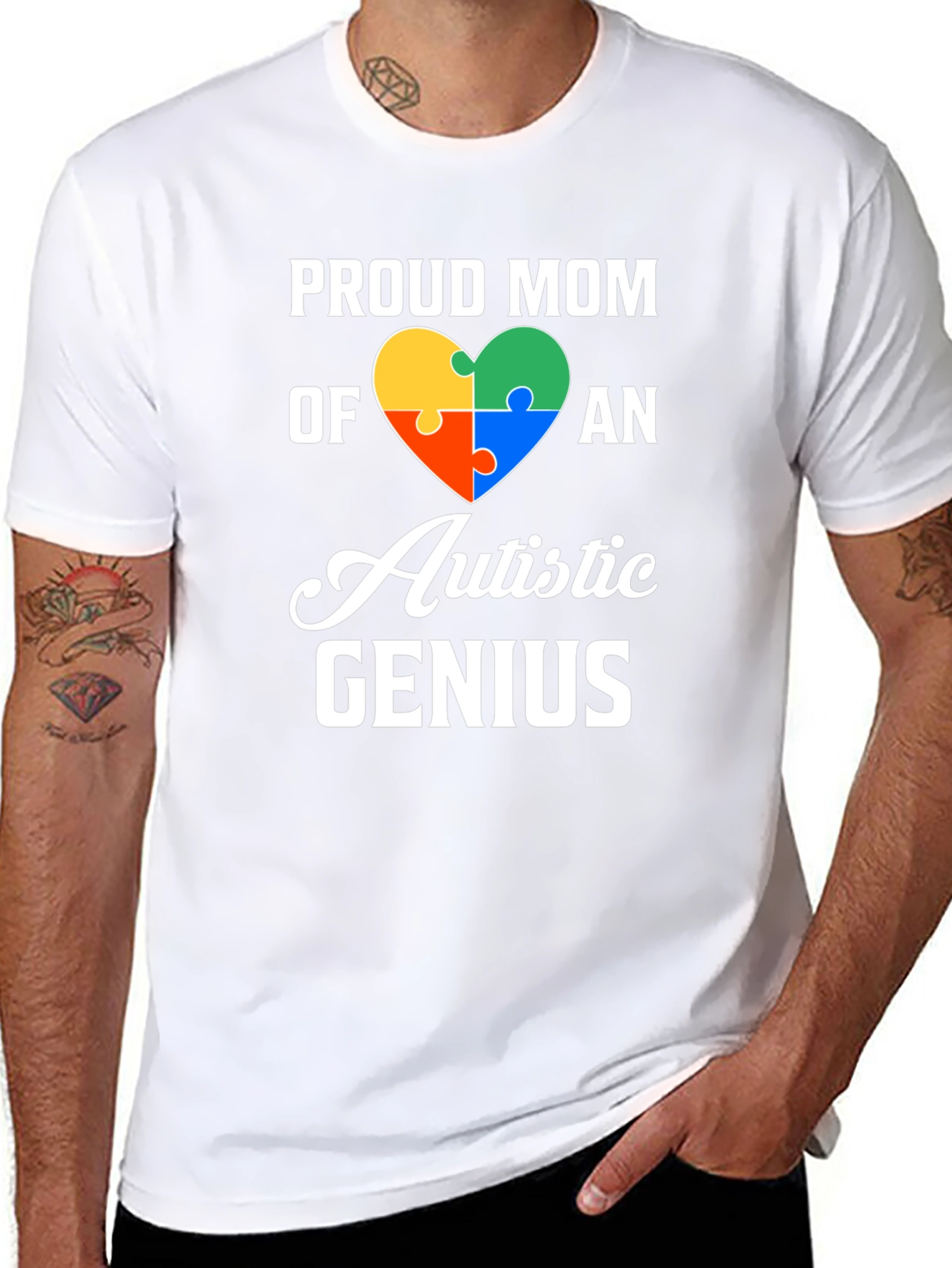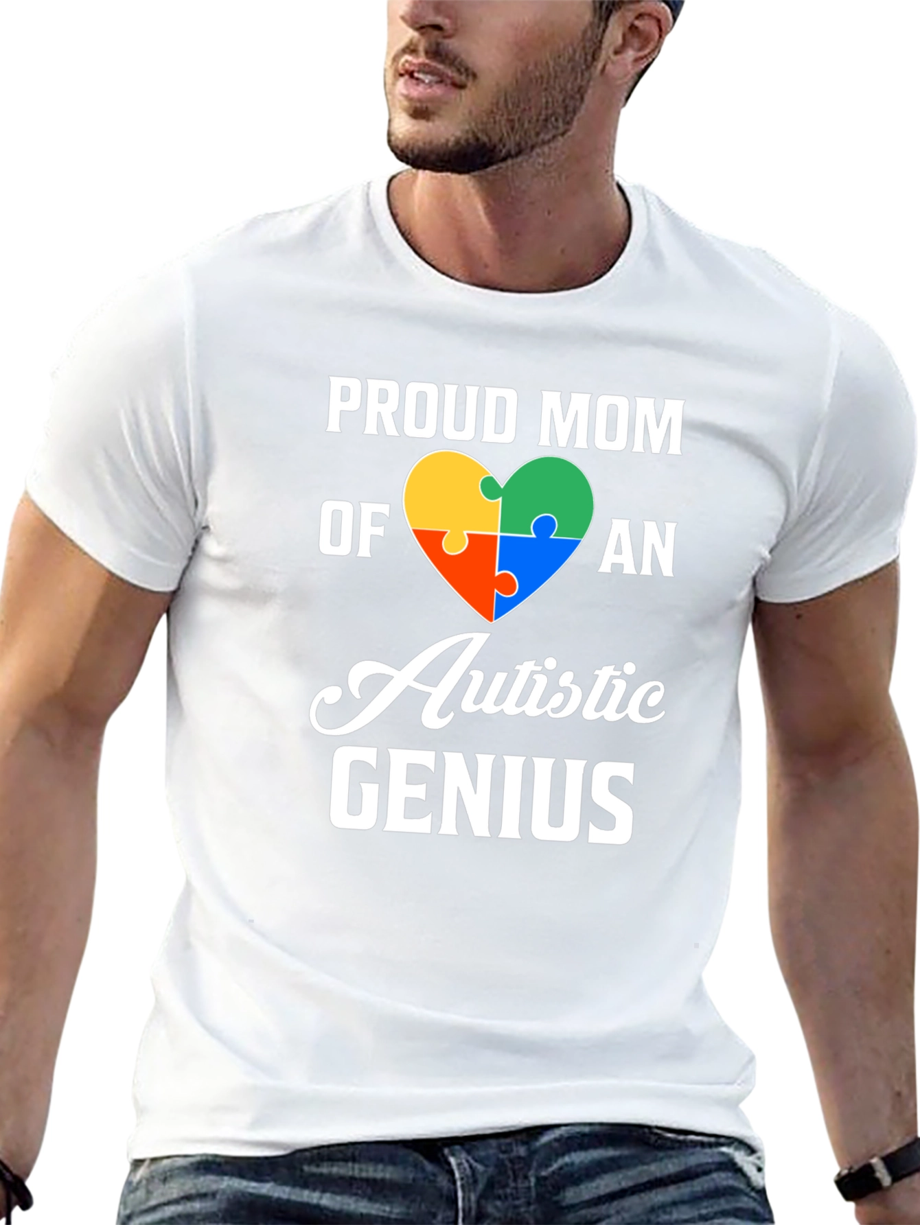Muestre su apoyo y orgullo con esta camiseta negra de manga corta. Presenta un diseño llamativo con el texto "PROUD MOM OF AN Autistic GENIUS", decorado con un corazón de rompecabezas en colores vibrantes. Ideal para usar en eventos de concientización sobre el autismo, reuniones familiares o simplemente para expresar su amor y admiración por su hijo o hija. Confeccionada con materiales cómodos y duraderos, esta camiseta es perfecta para el uso diario. Una declaración poderosa de amor y aceptación.