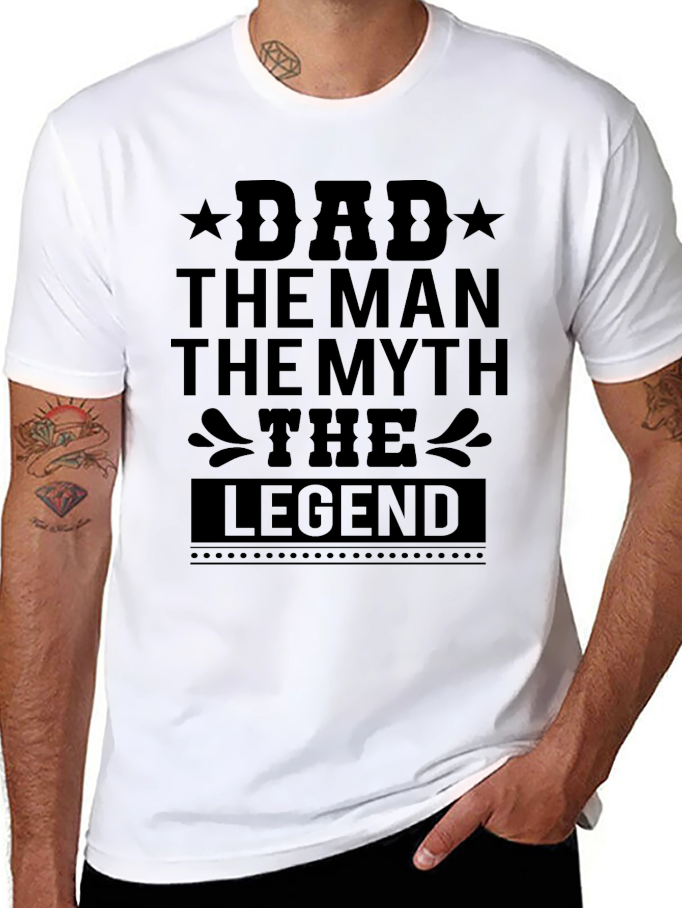 Esta camiseta negra presenta un diseño llamativo con la frase "Papá, El Hombre, El Mito, La Leyenda", destacada con estrellas. Confeccionada en un material que parece ser algodón suave, ofrece comodidad y estilo. Ideal para regalar a un padre orgulloso o para que cualquier papá demuestre su estatus legendario con orgullo. Perfecta para el uso diario, reuniones familiares o cualquier ocasión en la que quieras destacar tu papel de padre de una forma divertida y original. Muestra tu amor y admiración por papá con esta camiseta única.