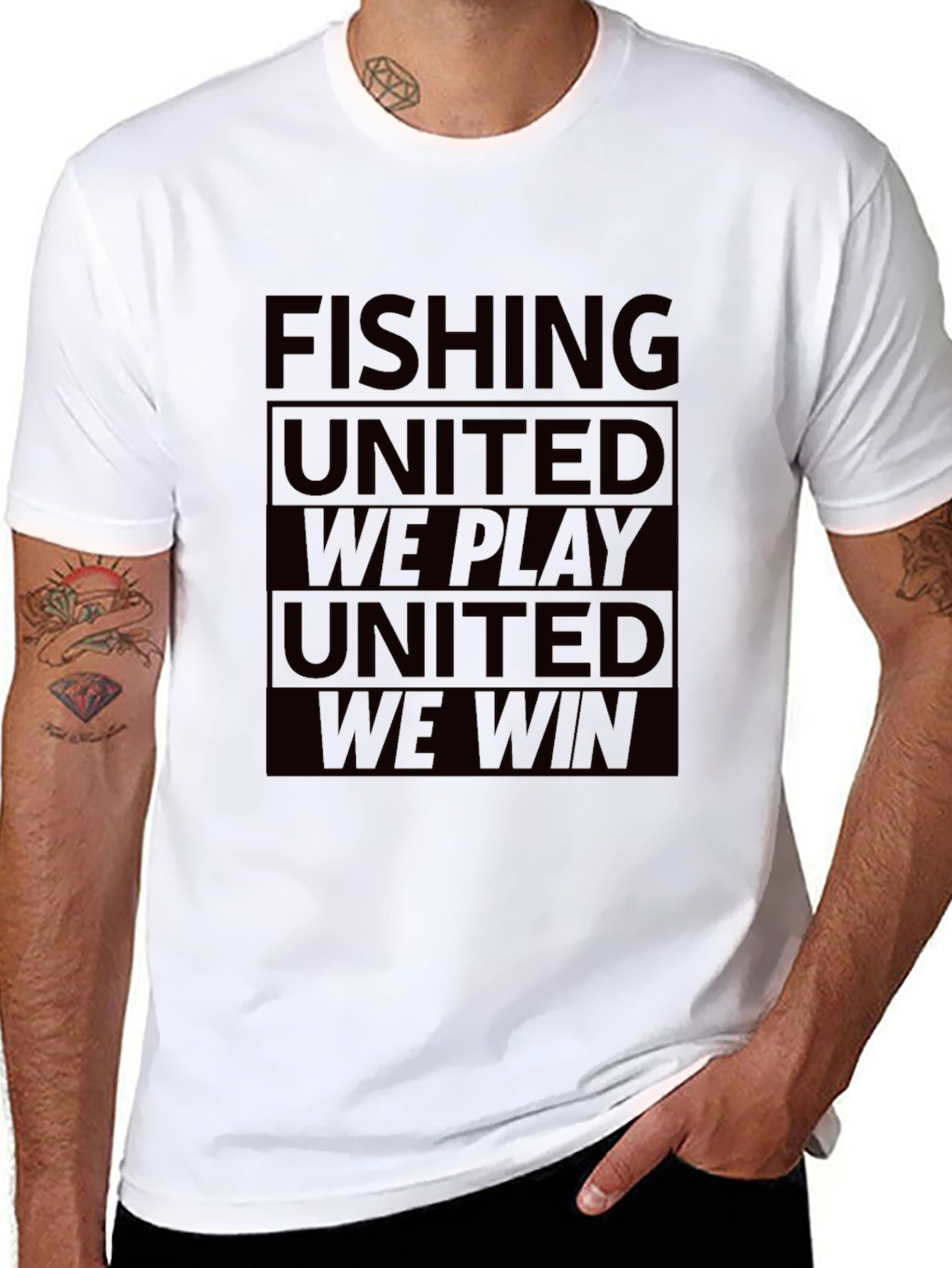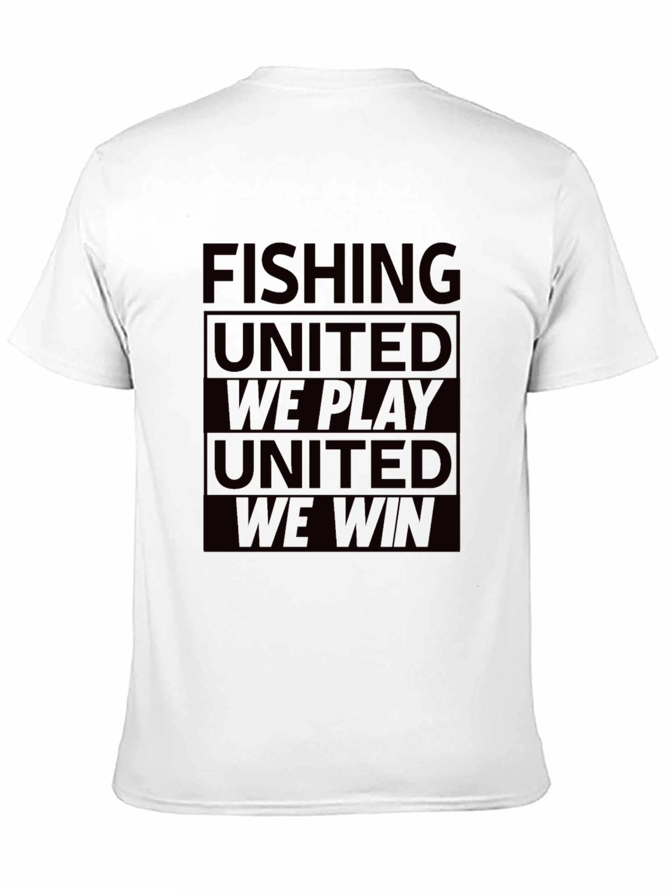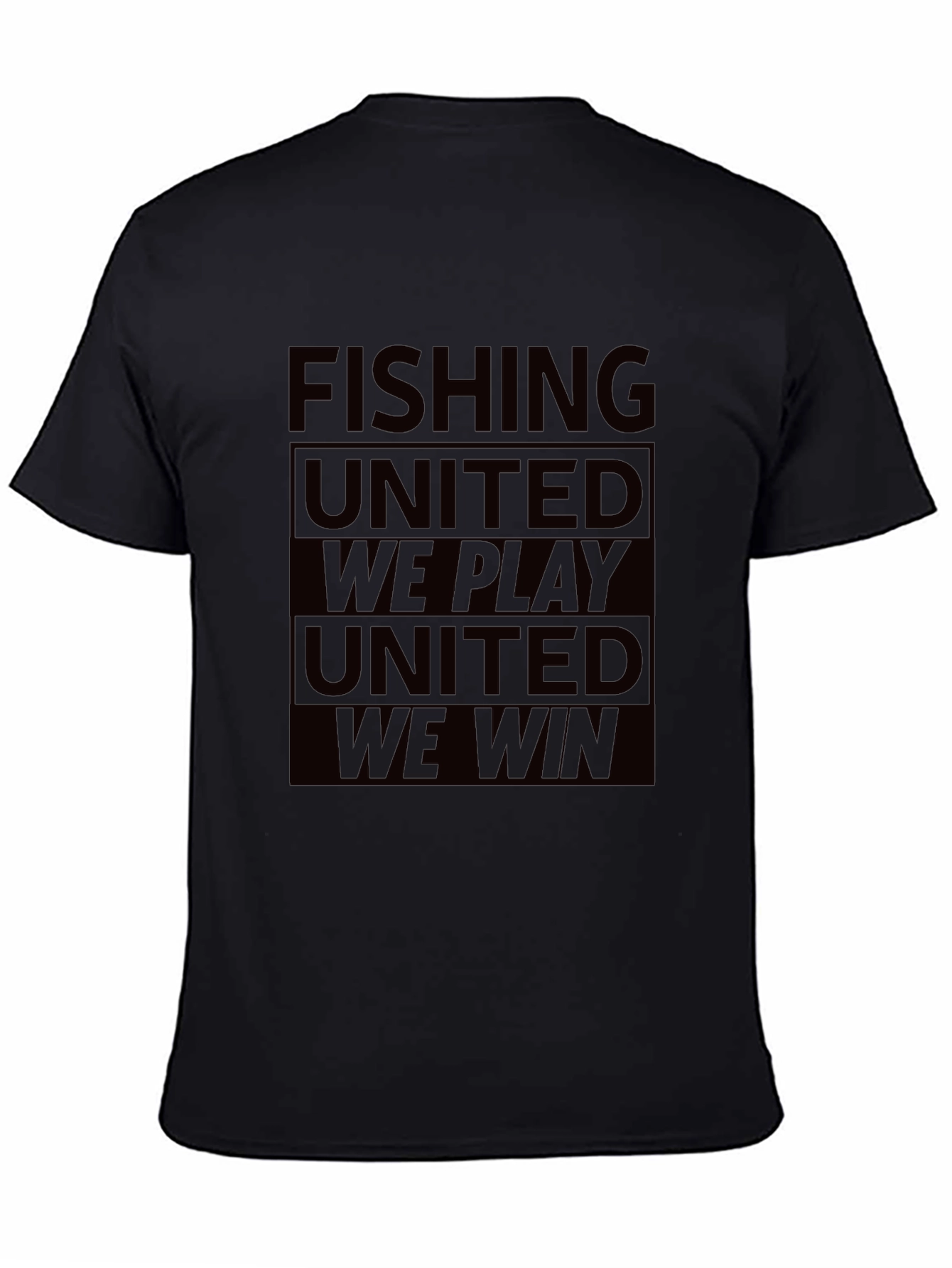Luce esta elegante camiseta negra con un diseño impactante. La frase "FISHING UNITED WE PLAY UNITED WE WIN" (Pesca Unida - Jugamos, Ganamos) está impresa en un estilo moderno y llamativo en la parte frontal. Perfecta para los amantes de la pesca y aquellos que disfrutan del trabajo en equipo. Su corte clásico y tejido suave aseguran comodidad durante todo el día. Ideal para usar en tus jornadas de pesca, reuniones con amigos o simplemente para mostrar tu pasión por este deporte. Combina fácilmente con jeans, pantalones cortos o bermudas. ¡Consigue la tuya y demuestra tu espíritu de equipo!