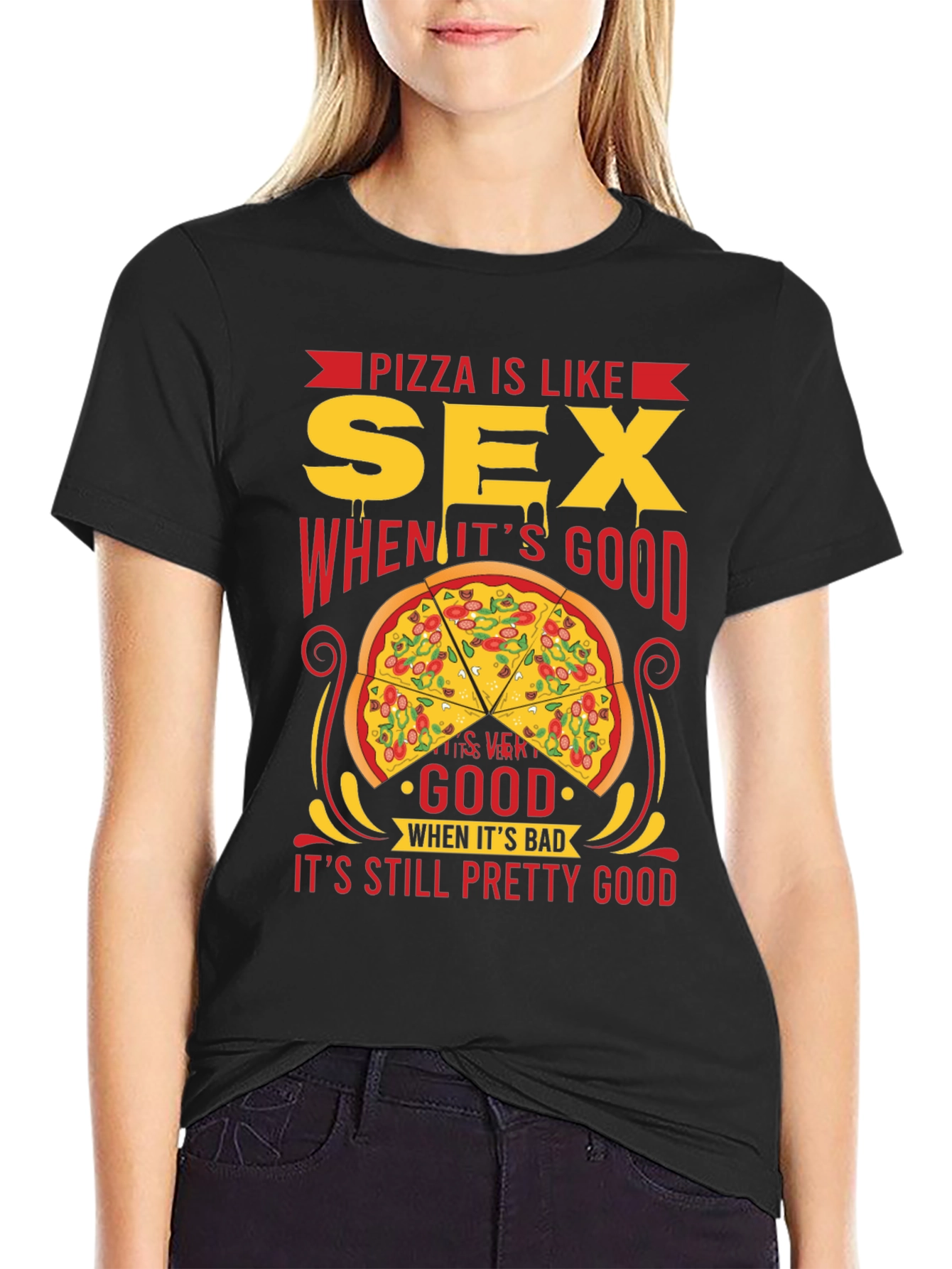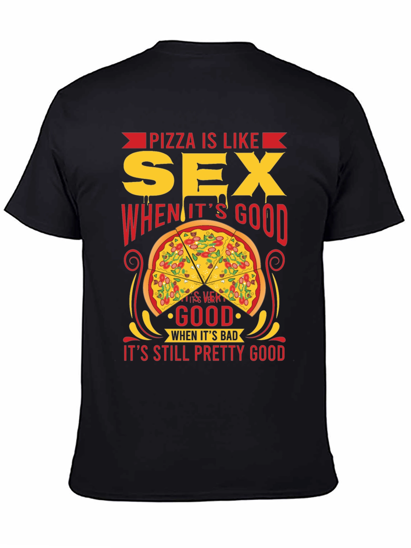 Camiseta Negra: Pizza es Como Sexo - ¡Siempre Buena!