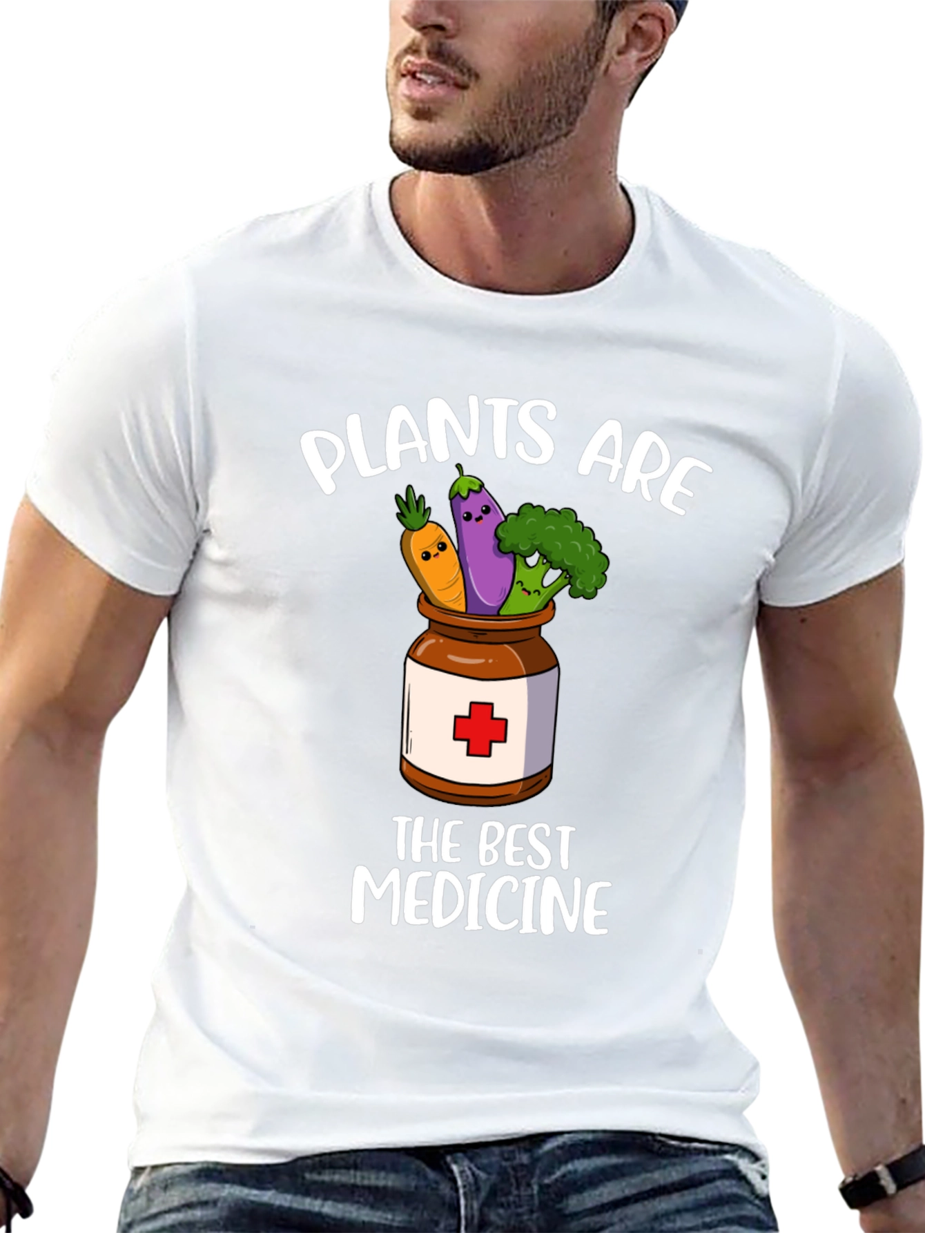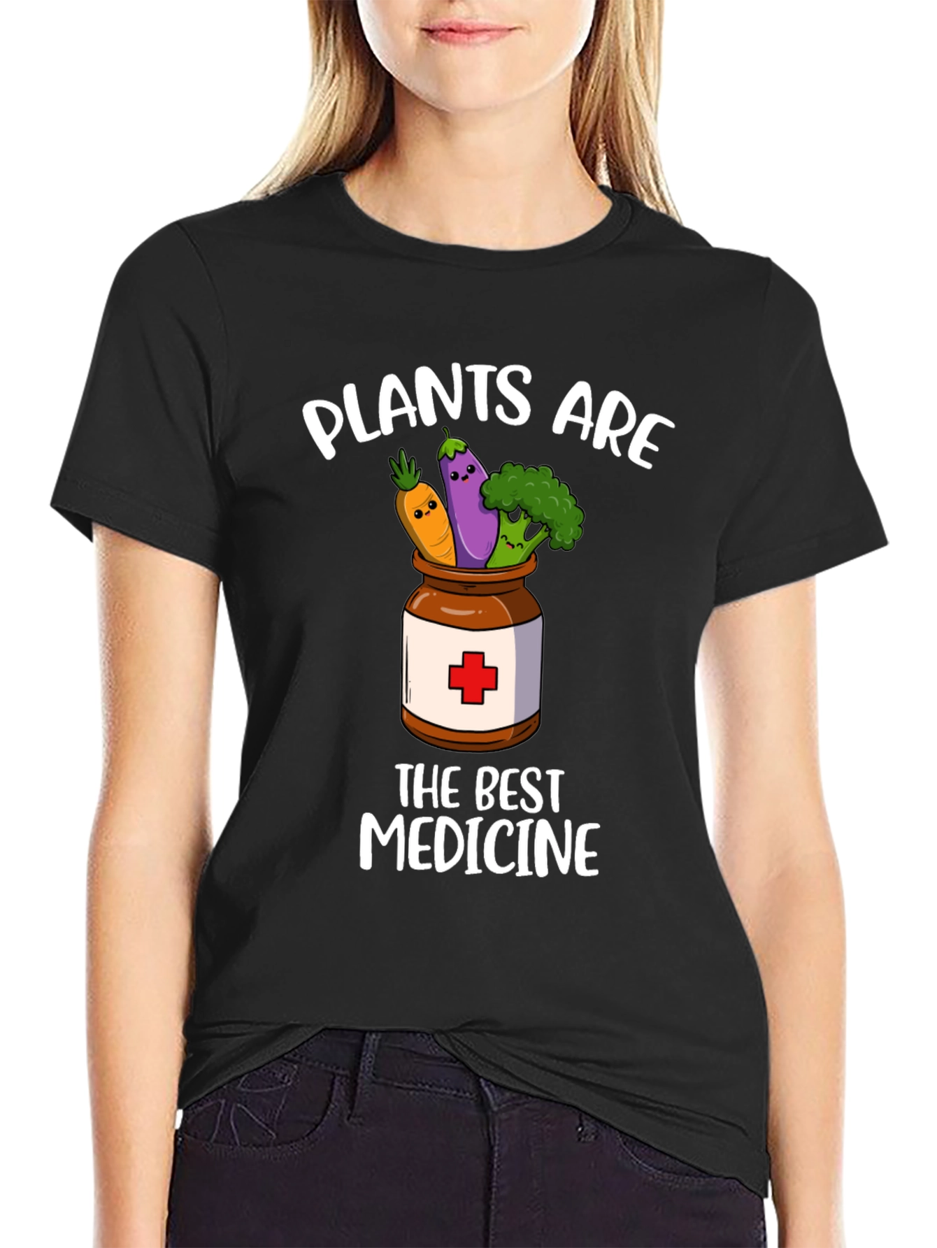 ¡Muestra tu amor por la salud natural con esta camiseta negra única! Presenta un diseño divertido y llamativo con una ilustración de verduras como zanahoria, berenjena y brócoli en un frasco de pastillas, junto con el mensaje "PLANTS ARE THE BEST MEDICINE". Perfecta para veganos, vegetarianos y cualquier persona que valore un estilo de vida saludable. Hecha con materiales cómodos, esta camiseta es ideal para uso diario, ya sea para ir al gimnasio, pasear por la ciudad o relajarte en casa. ¡Agrega un toque de humor y conciencia a tu guardarropa con esta prenda original!