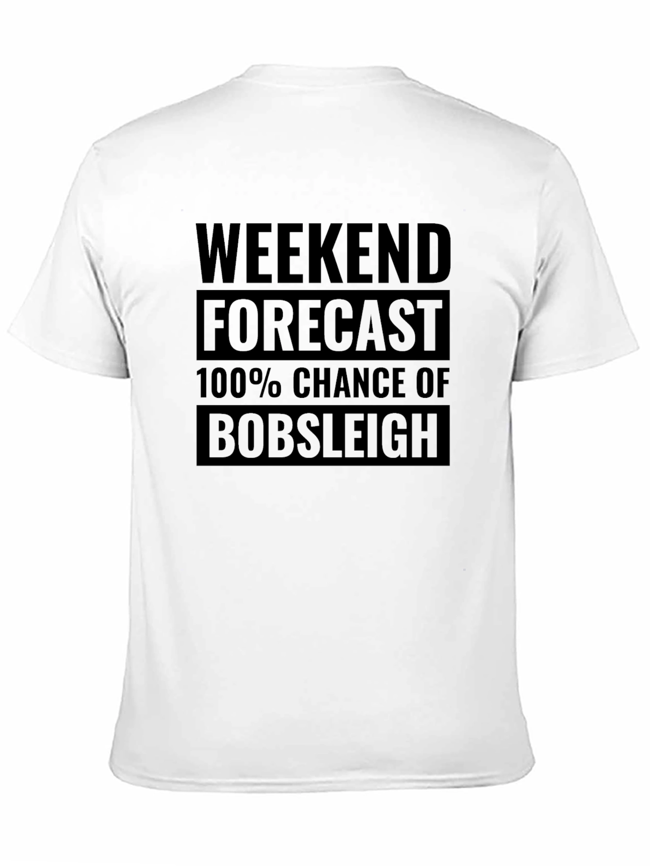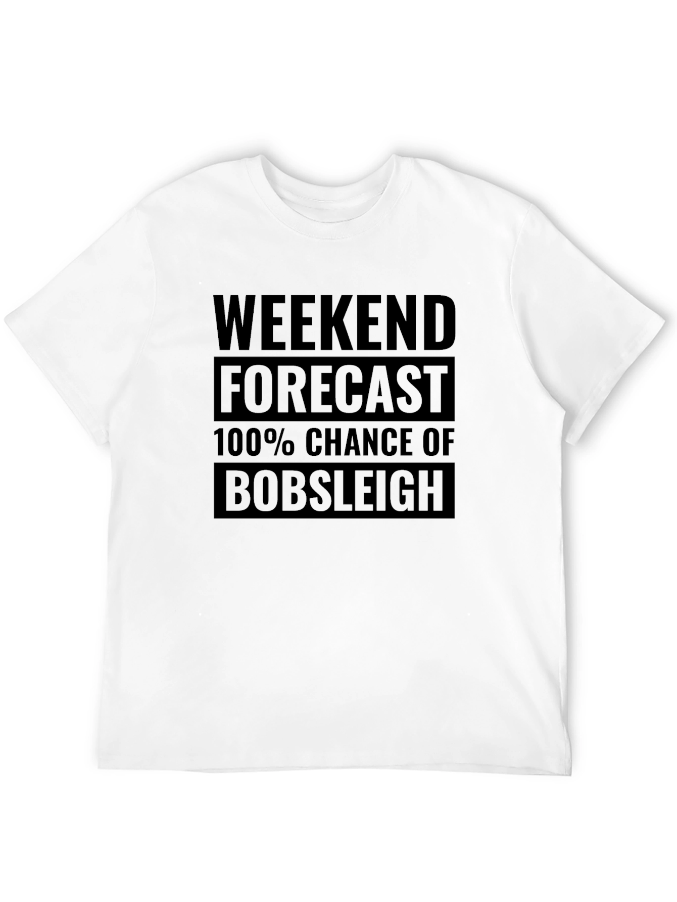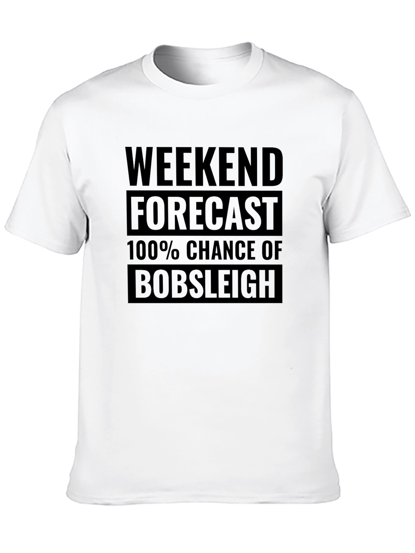 Prepárate para el fin de semana con esta camiseta negra de algodón de corte clásico. Presenta un diseño audaz con la frase "Weekend Forecast: 100% Chance of Bobsleigh" estampada en el pecho, perfecta para los amantes de la adrenalina y los deportes de invierno. Su tejido suave y cómodo la hace ideal para el uso diario, ya sea para relajarte en casa o salir con amigos. Combina esta camiseta con tus jeans favoritos para un look casual y deportivo. ¡Muestra tu pasión por el bobsleigh con esta prenda única y llamativa!