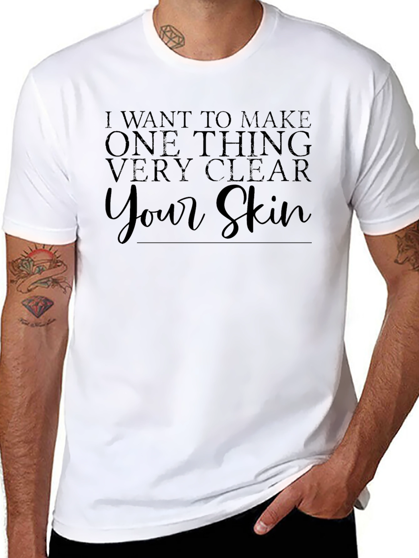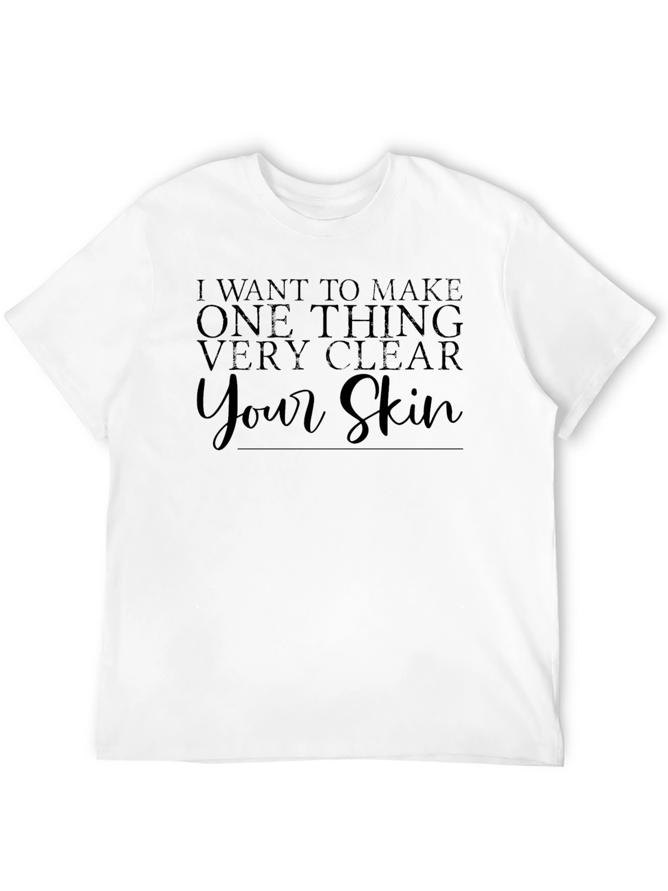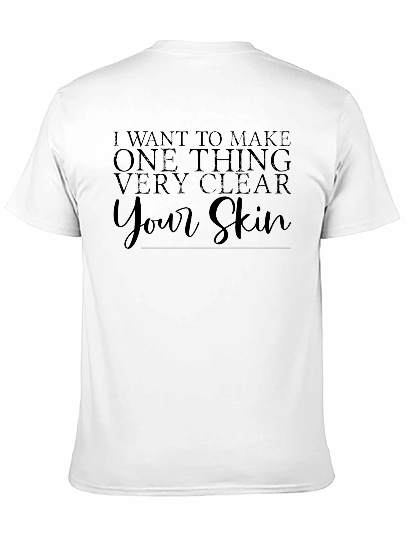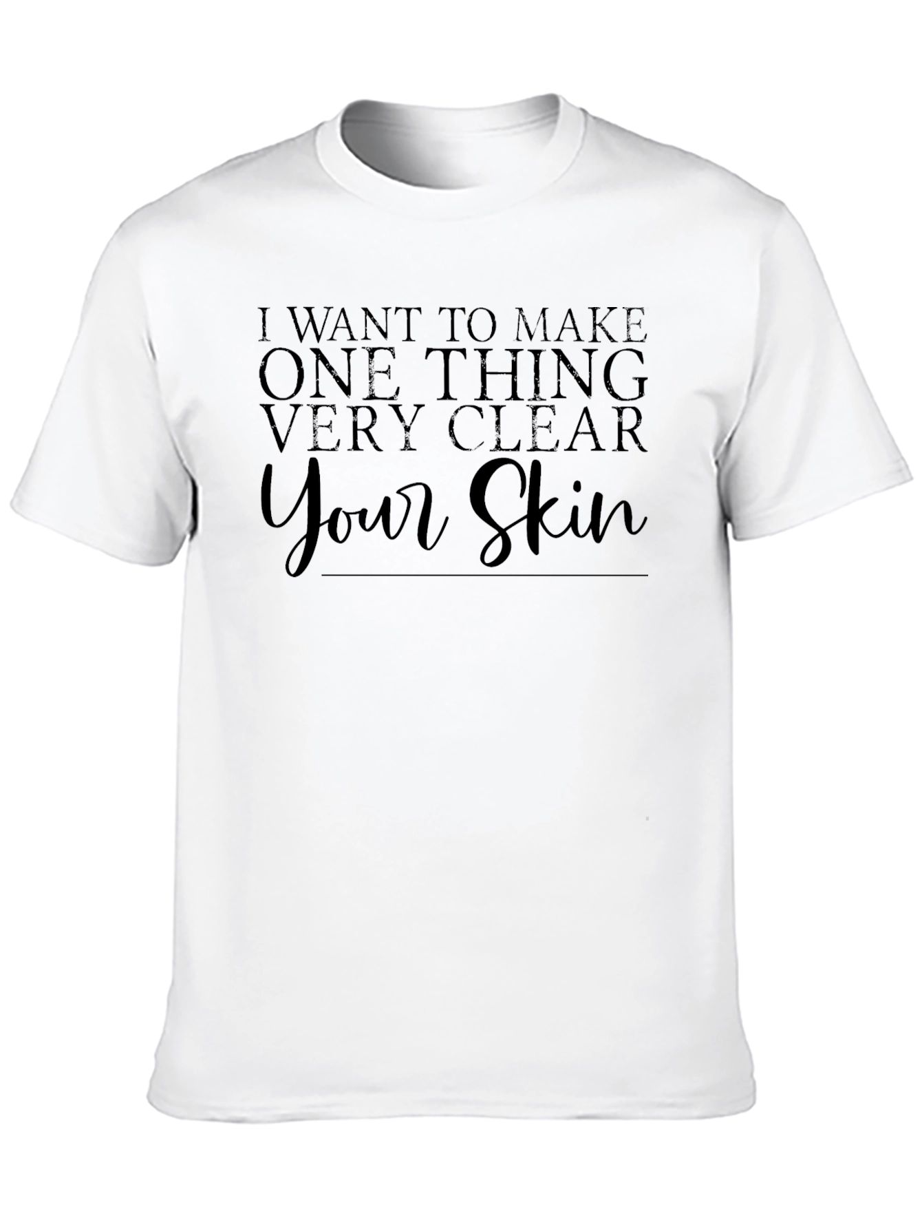Esta camiseta negra de manga corta presenta un diseño llamativo con la frase "I want to make one thing very clear... Your Skin" impresa en la parte delantera. La tipografía elegante y moderna le da un toque distintivo. Hecha de un material suave y cómodo, parece ideal para usar en el día a día. El color negro sólido la hace fácil de combinar con una variedad de pantalones y chaquetas. Perfecta para aquellos que quieren hacer una declaración audaz y moderna en su vestimenta casual. Ya sea para salir con amigos o para un evento informal, esta camiseta es una elección segura para destacar.