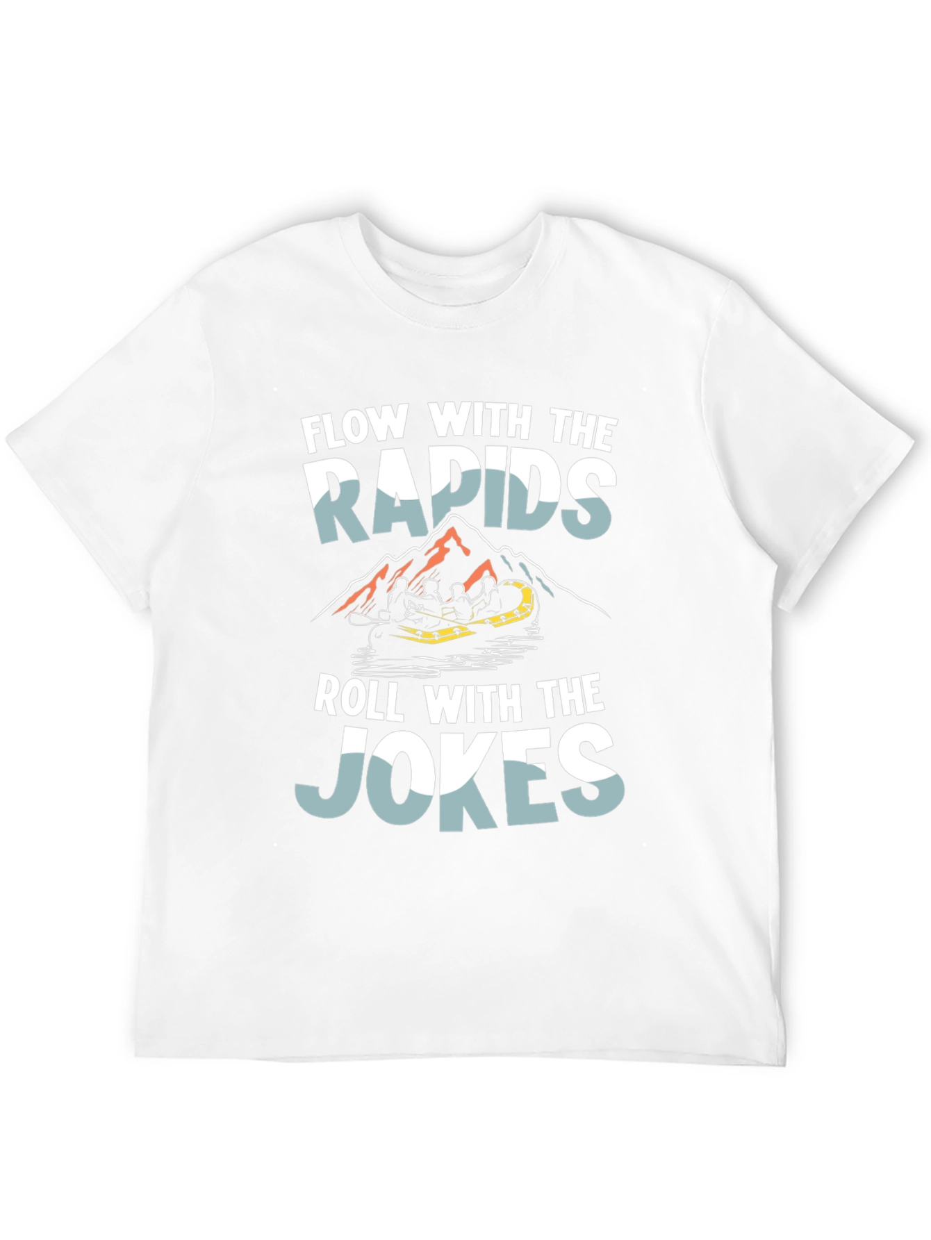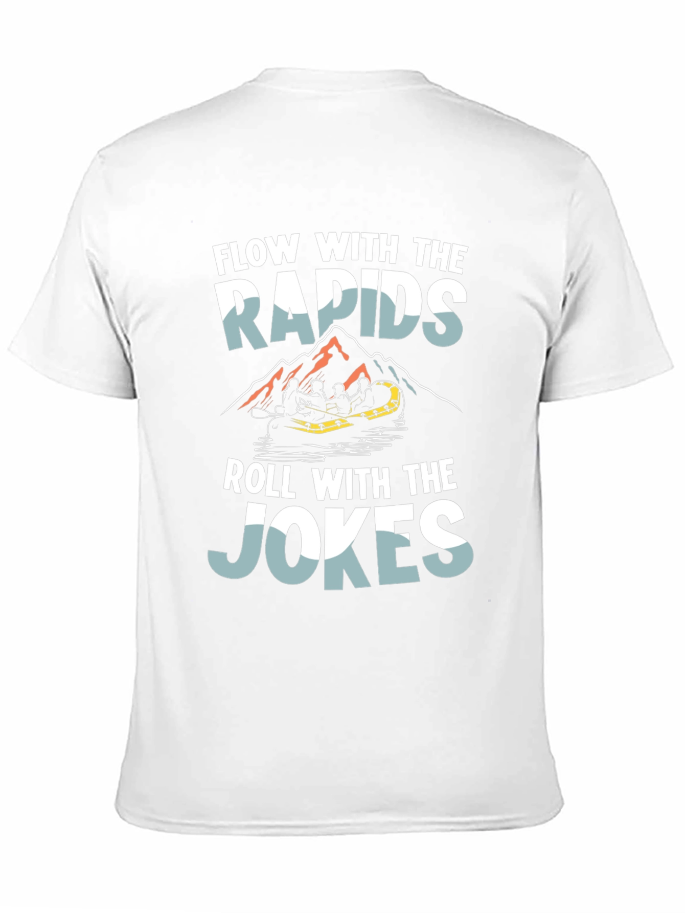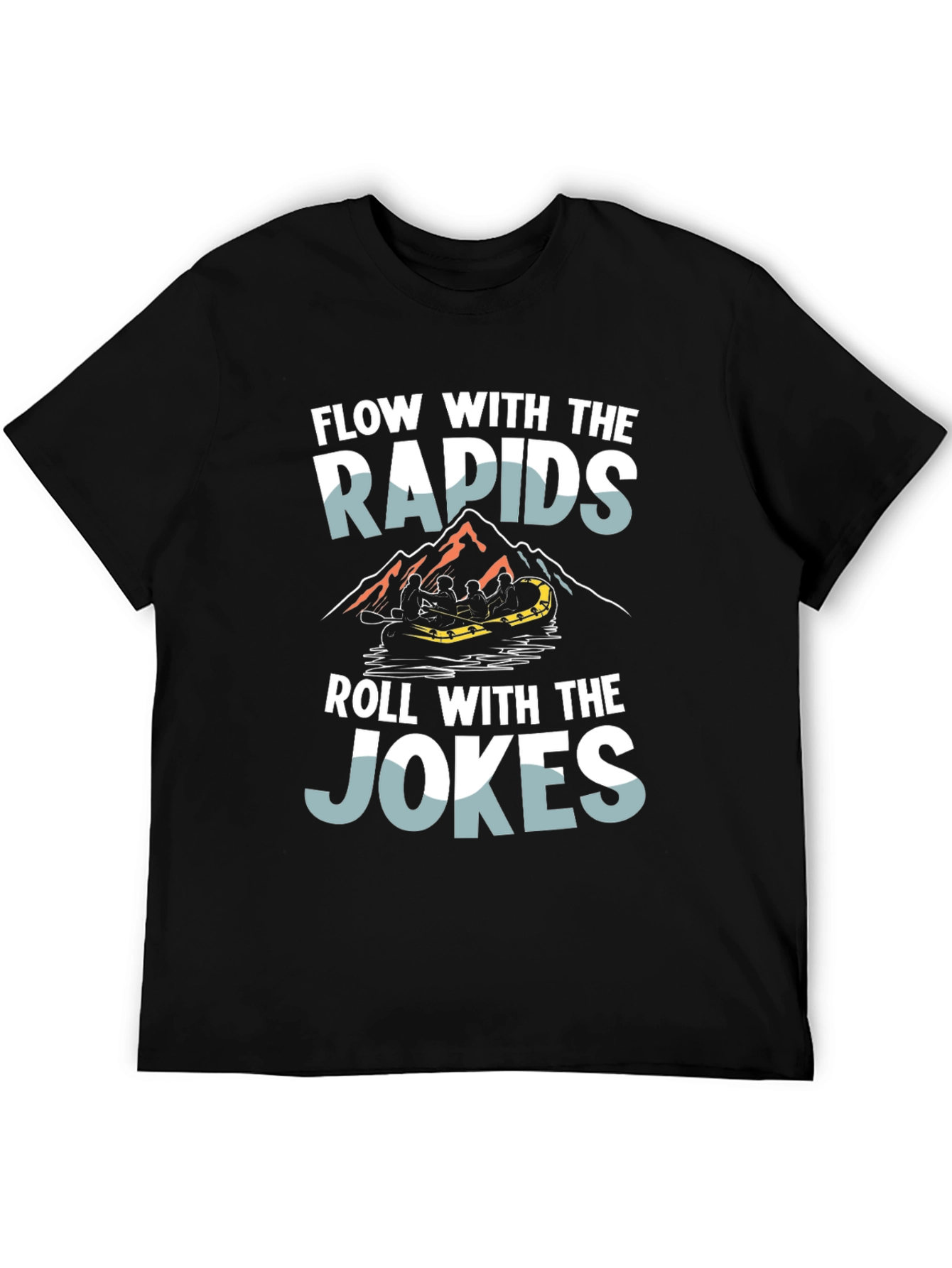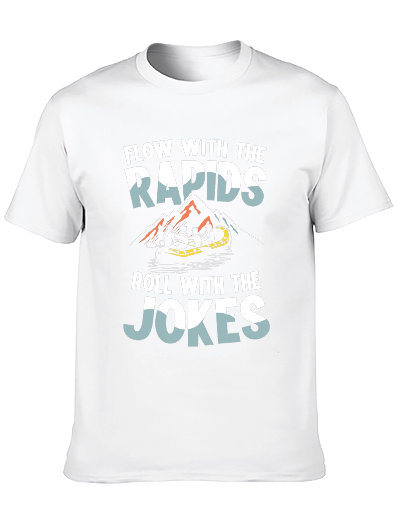 Esta camiseta negra presenta un diseño divertido y original. Con la frase "Flow with the Rapids, Roll with the Jokes" (Fluye con los rápidos, rueda con los chistes), la camiseta evoca una actitud relajada y aventurera. El diseño incluye una ilustración de una balsa navegando en rápidos con un fondo montañoso. Ideal para los amantes de la naturaleza, los deportes de aventura y aquellos con un gran sentido del humor. Perfecta para usar en salidas casuales, actividades al aire libre o simplemente para expresar tu personalidad única. ¡Atrévete a lucir esta camiseta y contagia tu buena onda!