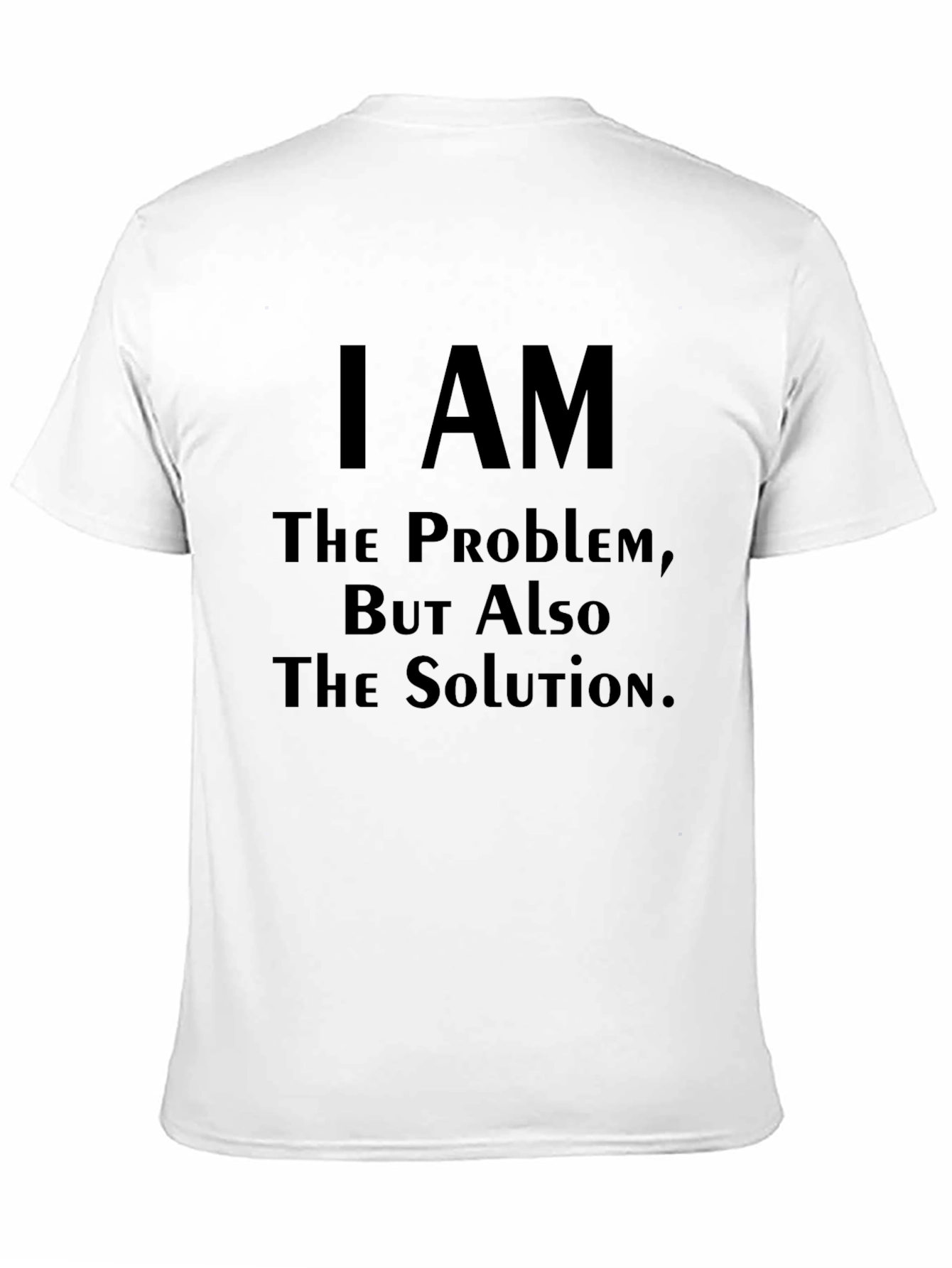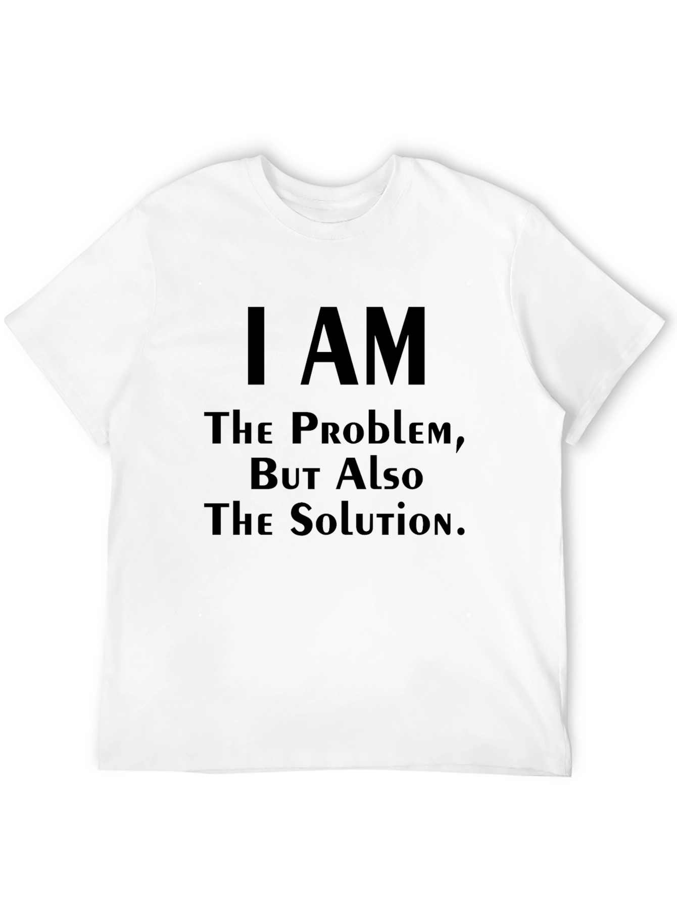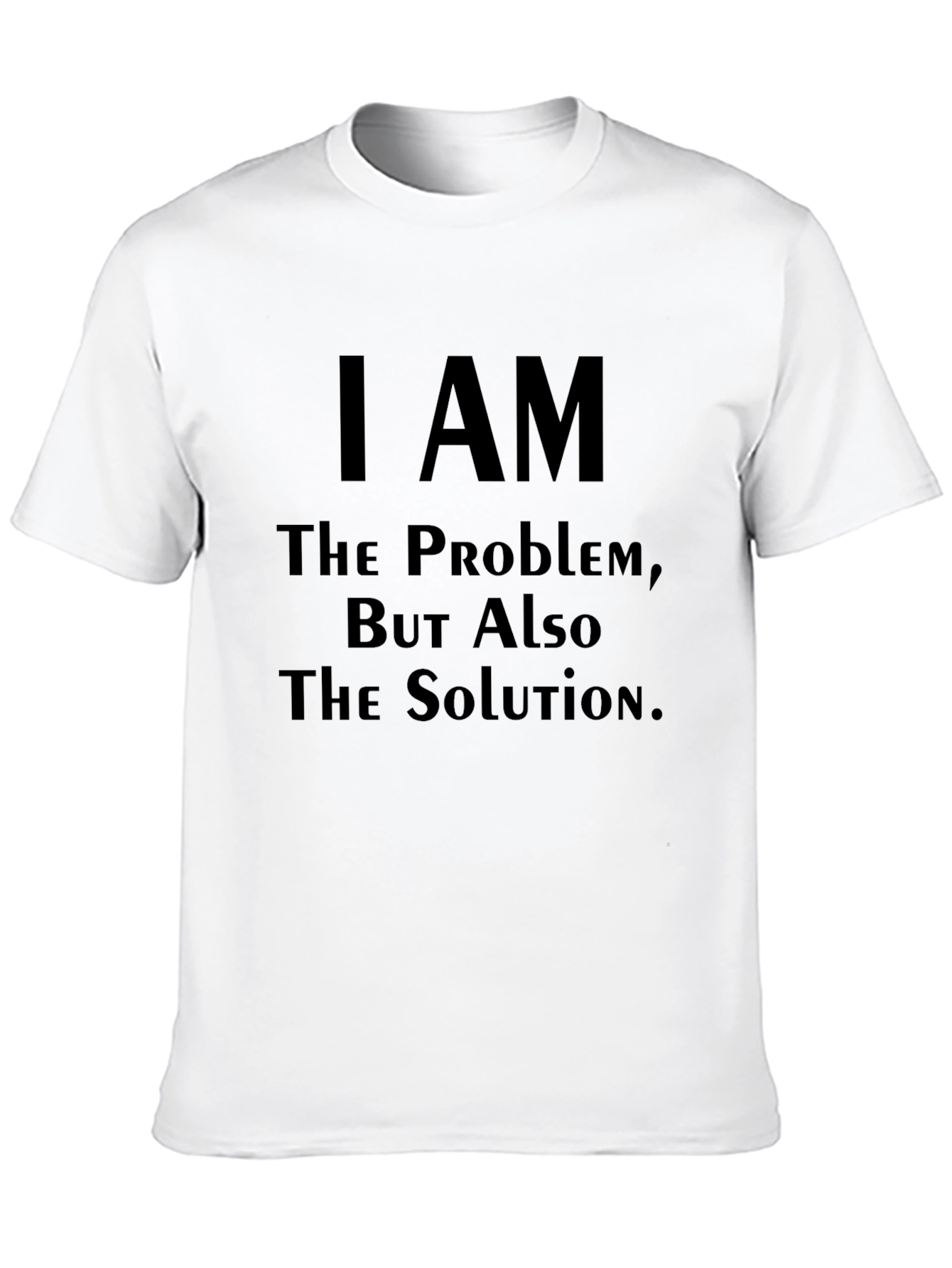 Luce esta original camiseta negra con un mensaje audaz: "I AM The Problem, But Also The Solution". Confeccionada en tela suave y cómoda, esta camiseta de manga corta es perfecta para expresar tu individualidad con estilo. El diseño simple pero impactante la hace ideal para usar en cualquier ocasión casual, desde una salida con amigos hasta un día relajado en casa. Su color negro versátil combina fácilmente con cualquier pantalón o jeans. Atrévete a llevar un mensaje poderoso y original con esta prenda única.