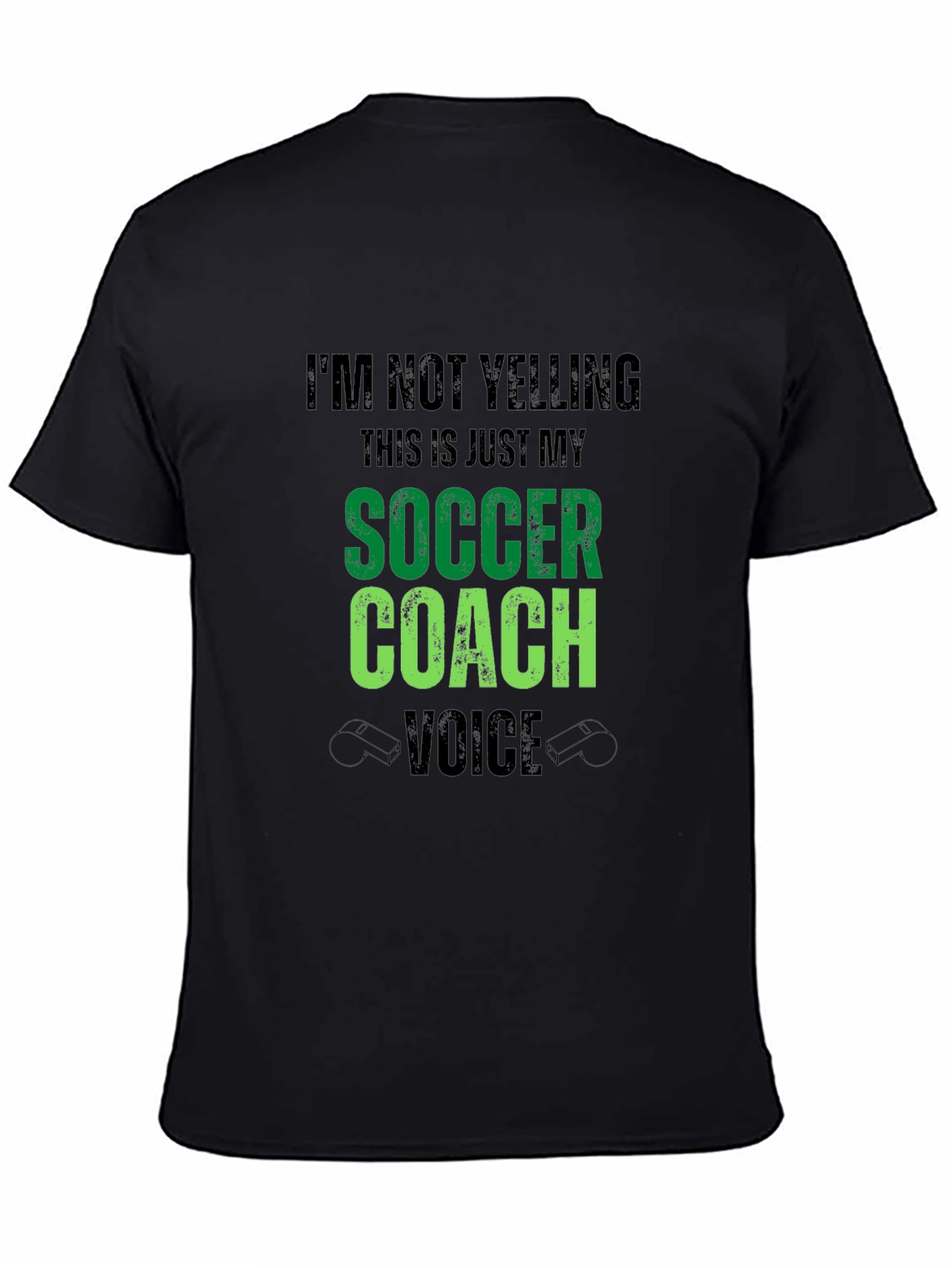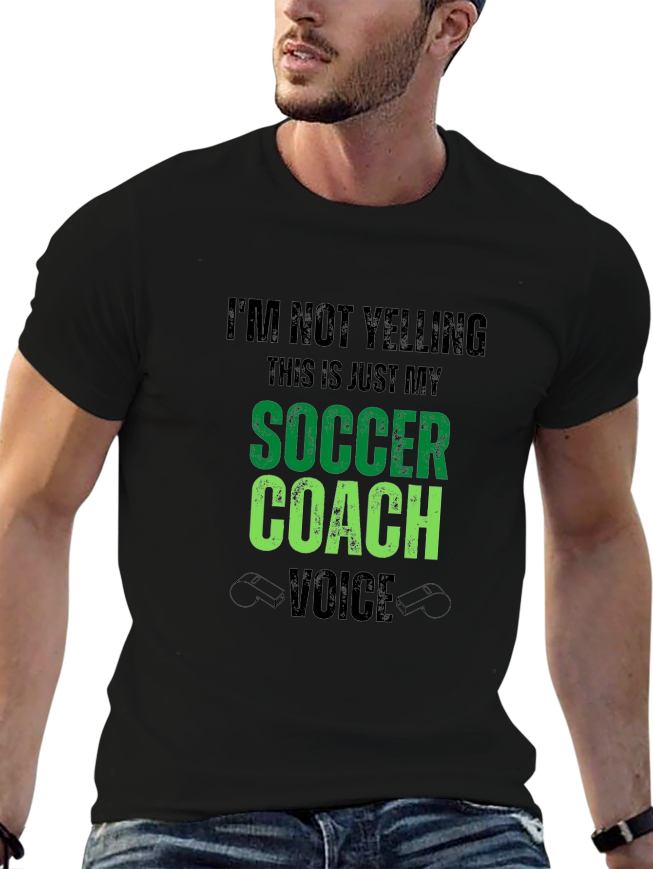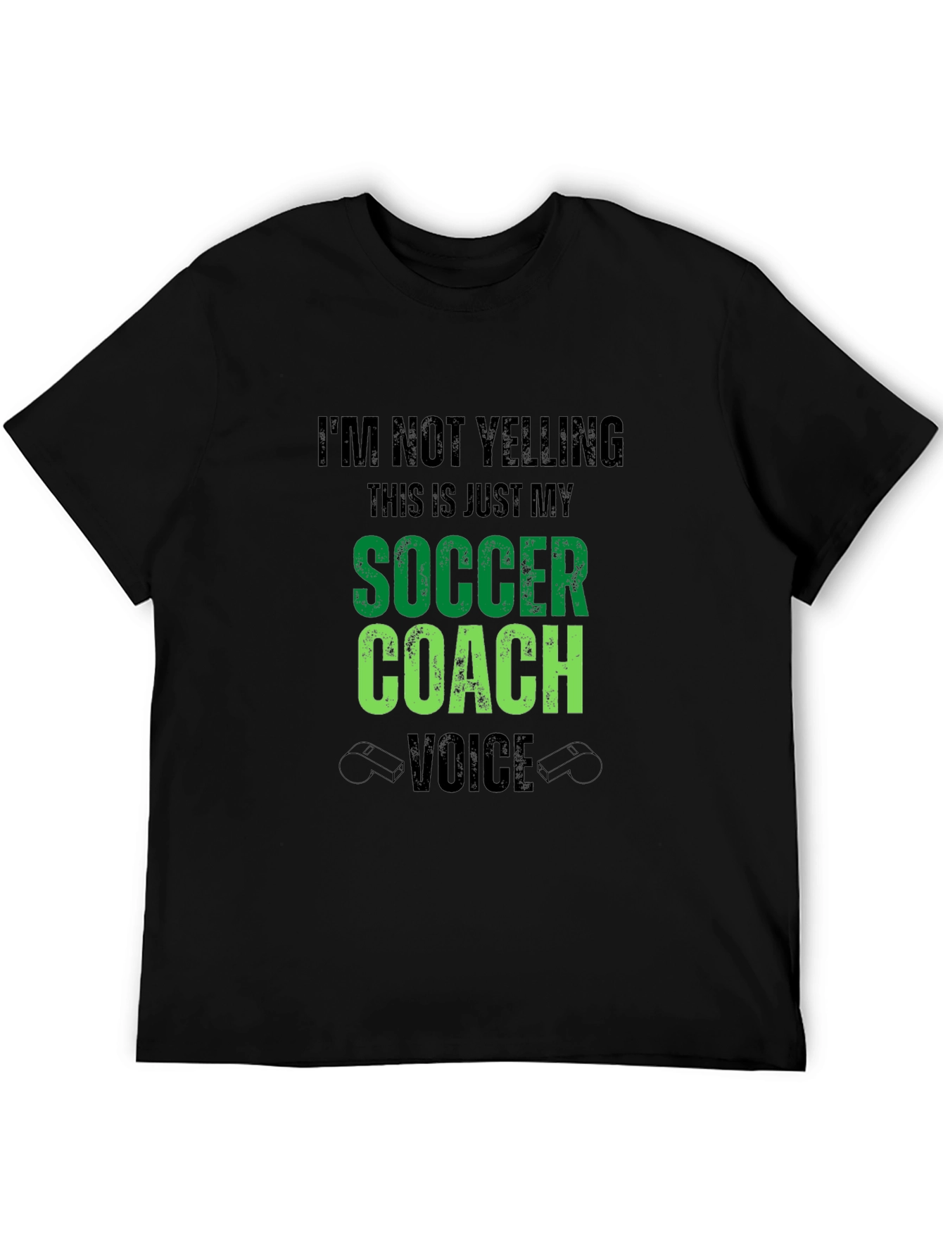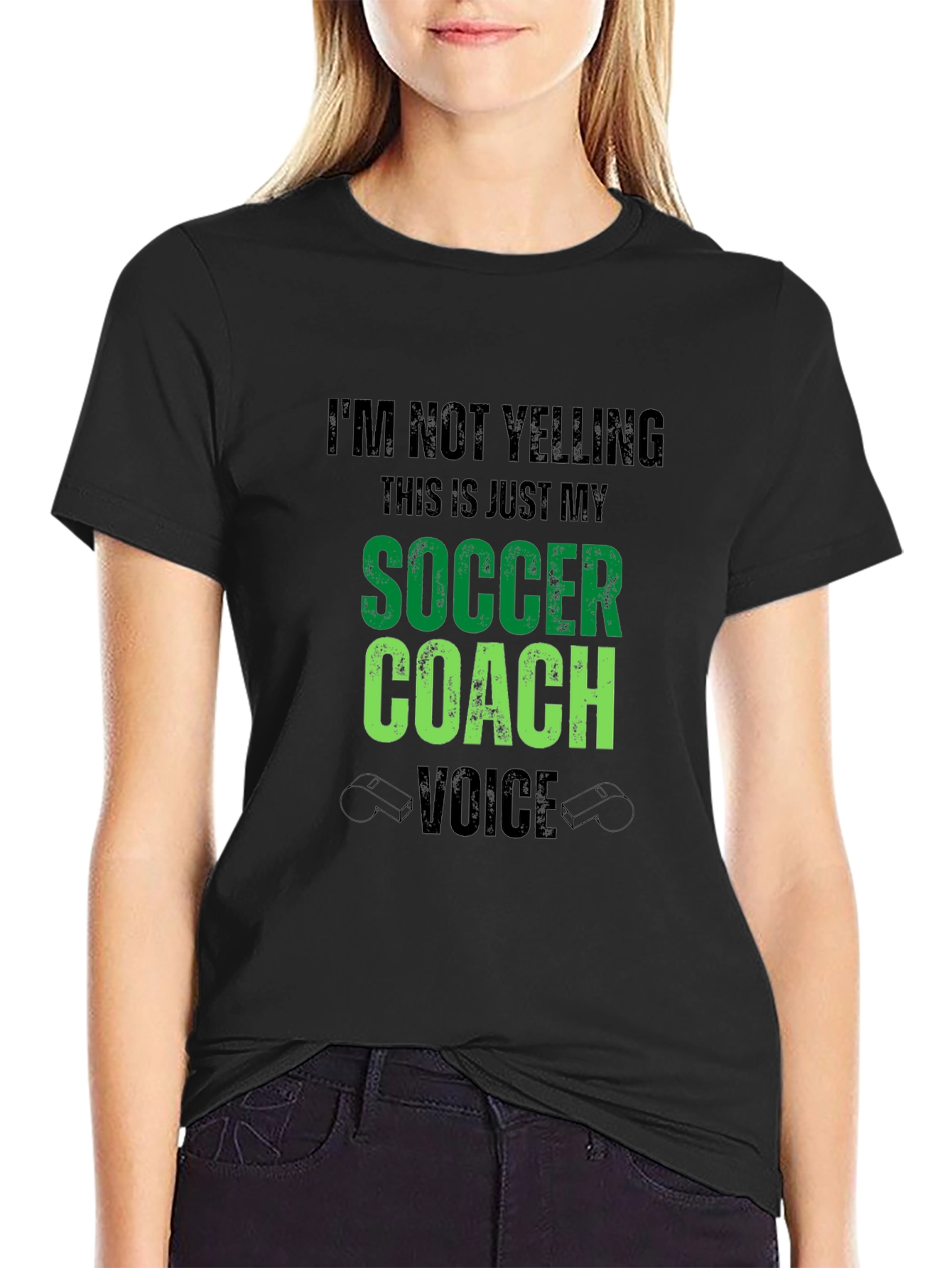 ¡Prepárate para el partido con esta camiseta negra de cuello redondo! Presenta un divertido diseño con letras en degradado de verde que dicen "I'M NOT YELLING THIS IS JUST MY SOCCER COACH VOICE" (No estoy gritando, esta es solo mi voz de entrenador de fútbol). Perfecta para entrenadores de fútbol con sentido del humor, esta camiseta es ideal para usar durante los entrenamientos, partidos o simplemente para mostrar tu pasión por el fútbol. Su diseño llamativo y cómodo la convierte en una prenda imprescindible en el armario de cualquier entrenador. ¡Consigue la tuya y haz que tu voz de entrenador se escuche con estilo!
