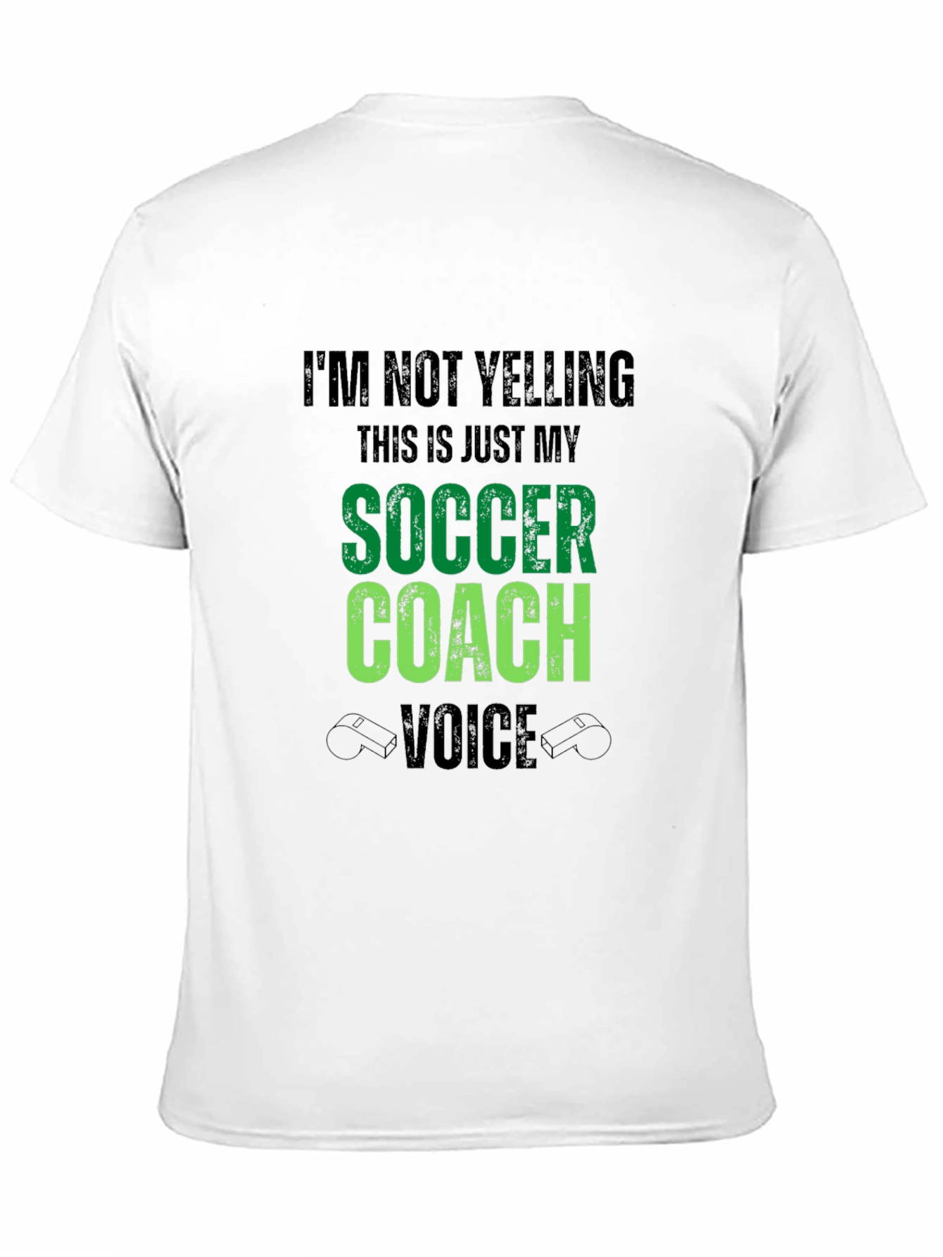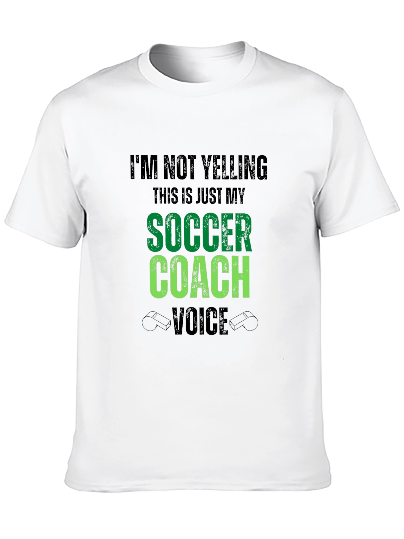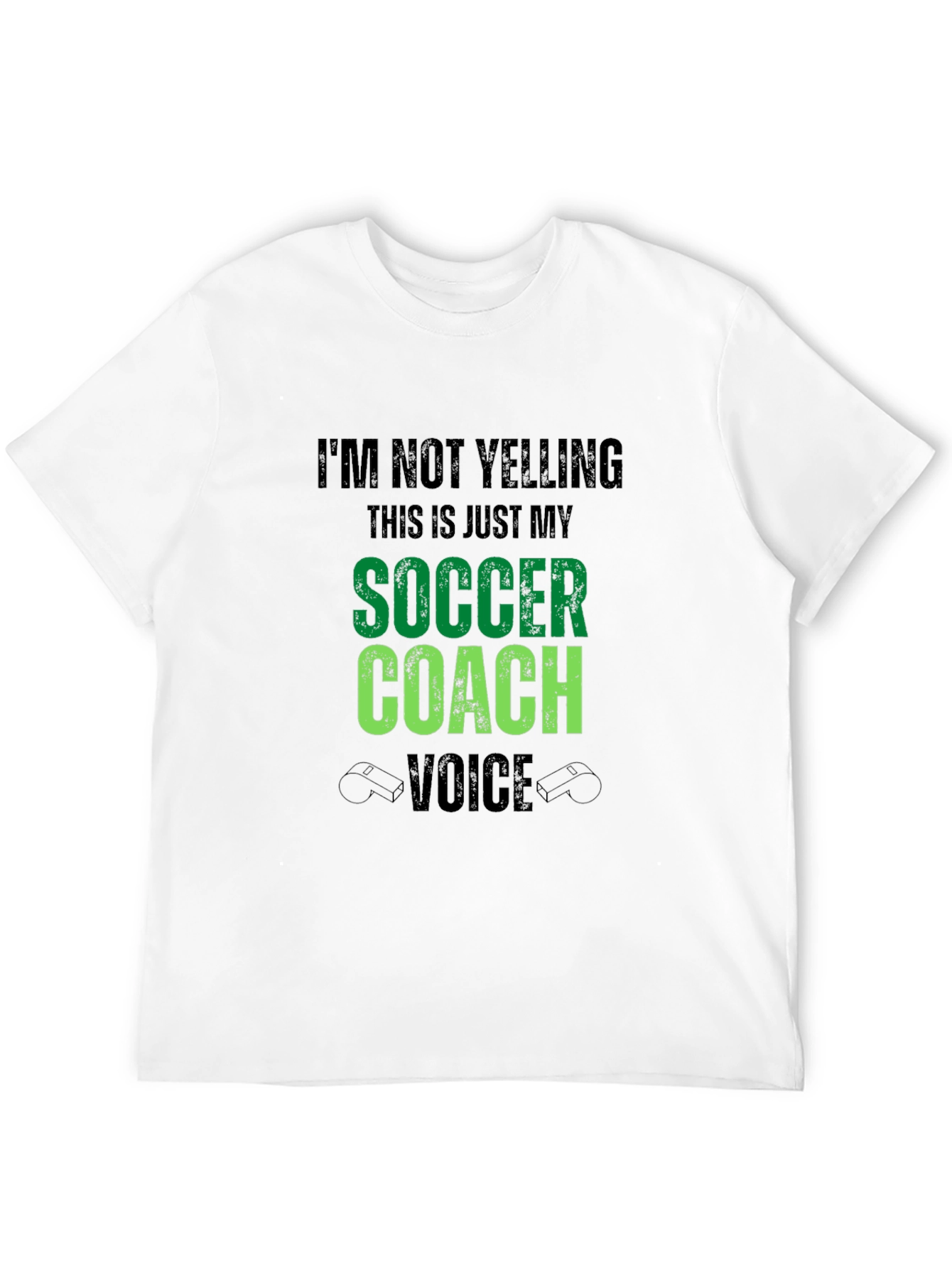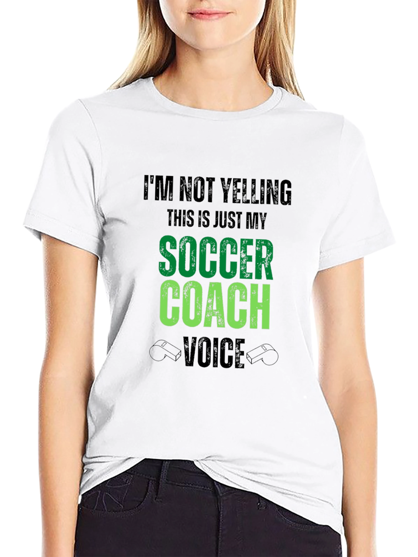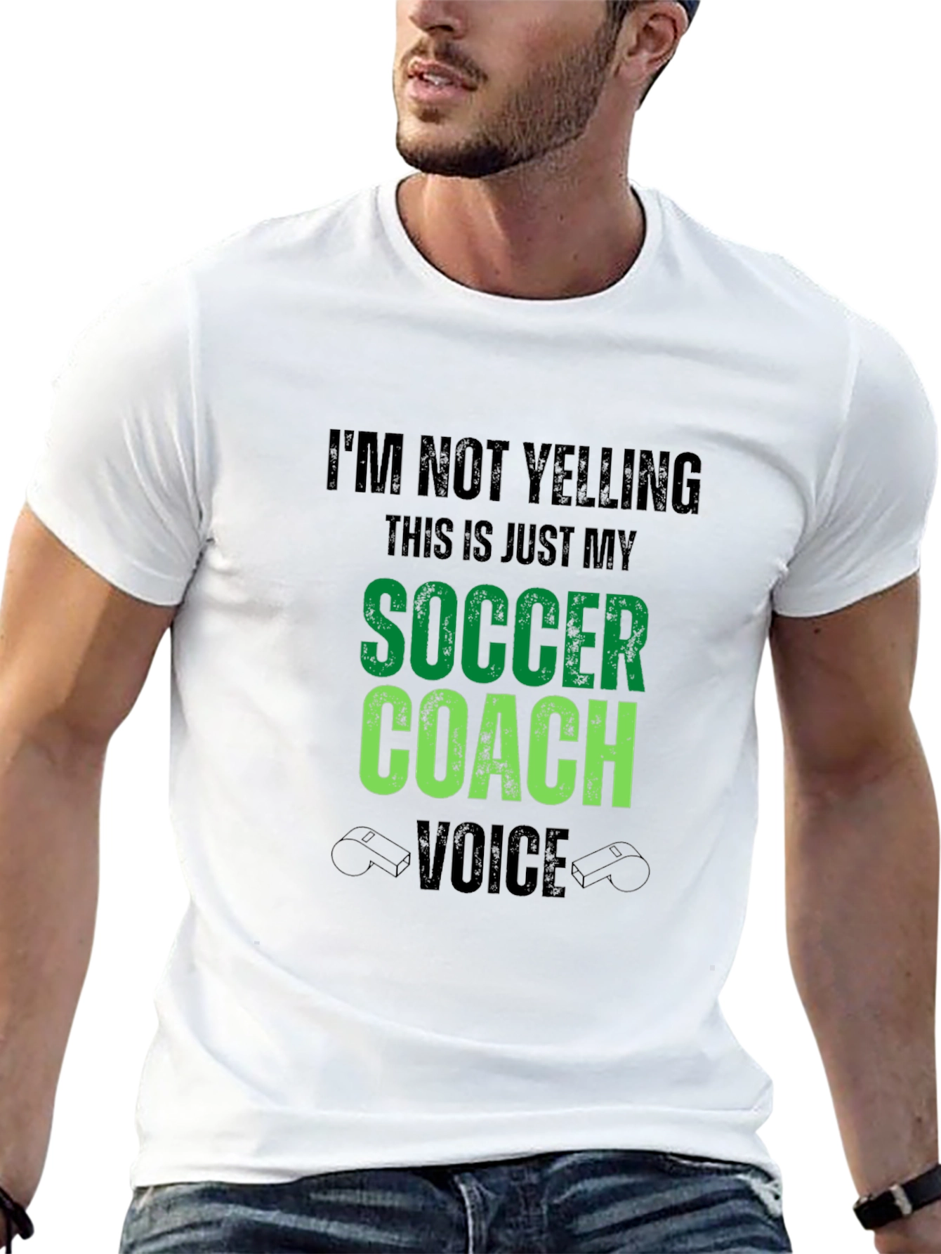 ¡Prepárate para el partido con esta camiseta negra de cuello redondo! Presenta un divertido diseño con letras en degradado de verde que dicen "I'M NOT YELLING THIS IS JUST MY SOCCER COACH VOICE" (No estoy gritando, esta es solo mi voz de entrenador de fútbol). Perfecta para entrenadores de fútbol con sentido del humor, esta camiseta es ideal para usar durante los entrenamientos, partidos o simplemente para mostrar tu pasión por el fútbol. Su diseño llamativo y cómodo la convierte en una prenda imprescindible en el armario de cualquier entrenador. ¡Consigue la tuya y haz que tu voz de entrenador se escuche con estilo!