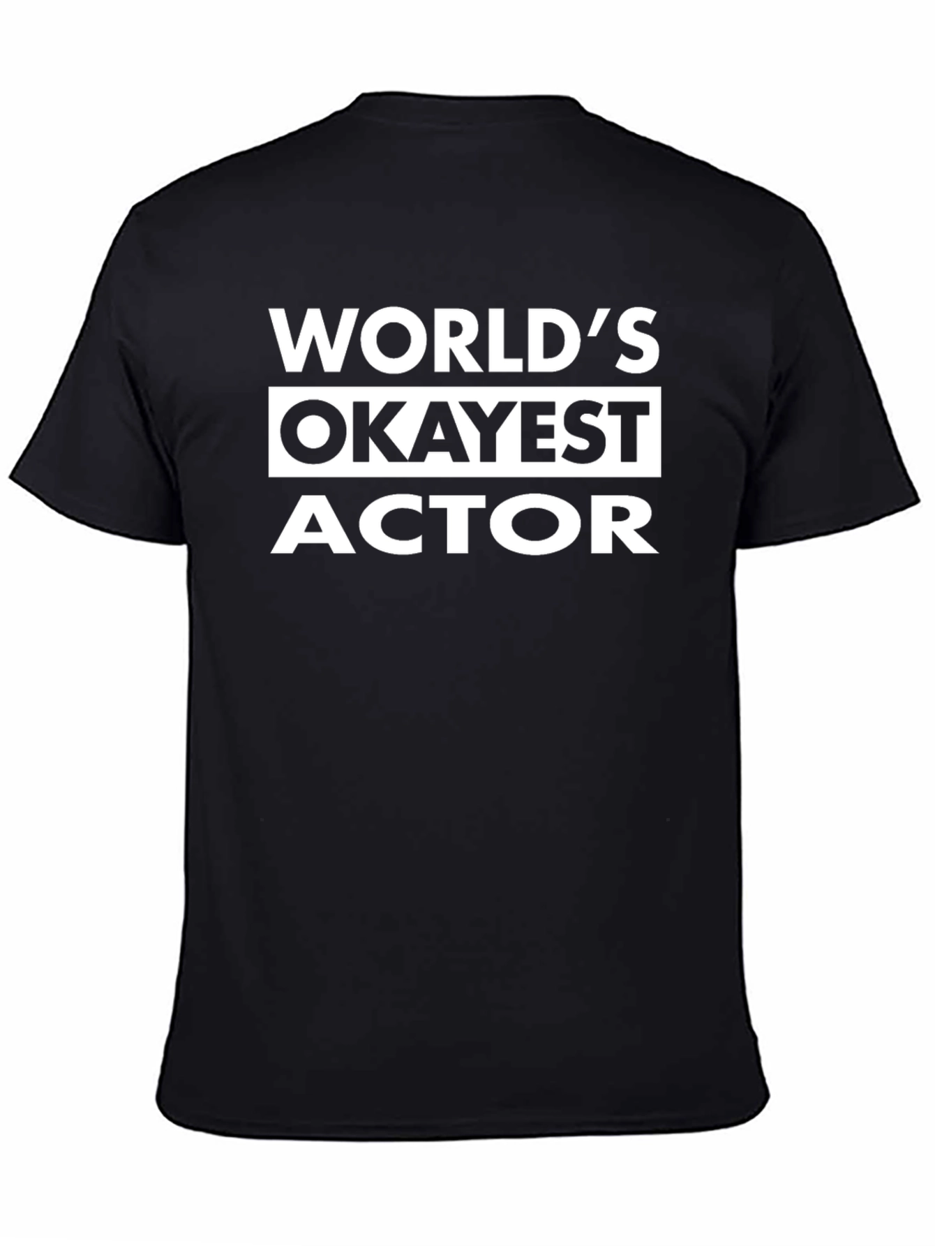 Muestra tu sentido del humor con esta camiseta negra clásica. Presenta un diseño llamativo con la frase "World's Okayest Actor" en letras blancas, ideal para actores modestos o amantes del teatro con un toque de ironía. El diseño simple y elegante la hace versátil para usar en el día a día, ya sea para ensayar, ir a clases o simplemente relajarte con amigos. Su tejido suave promete comodidad y durabilidad. Perfecta para regalar a ese amigo actor con un gran sentido del humor.