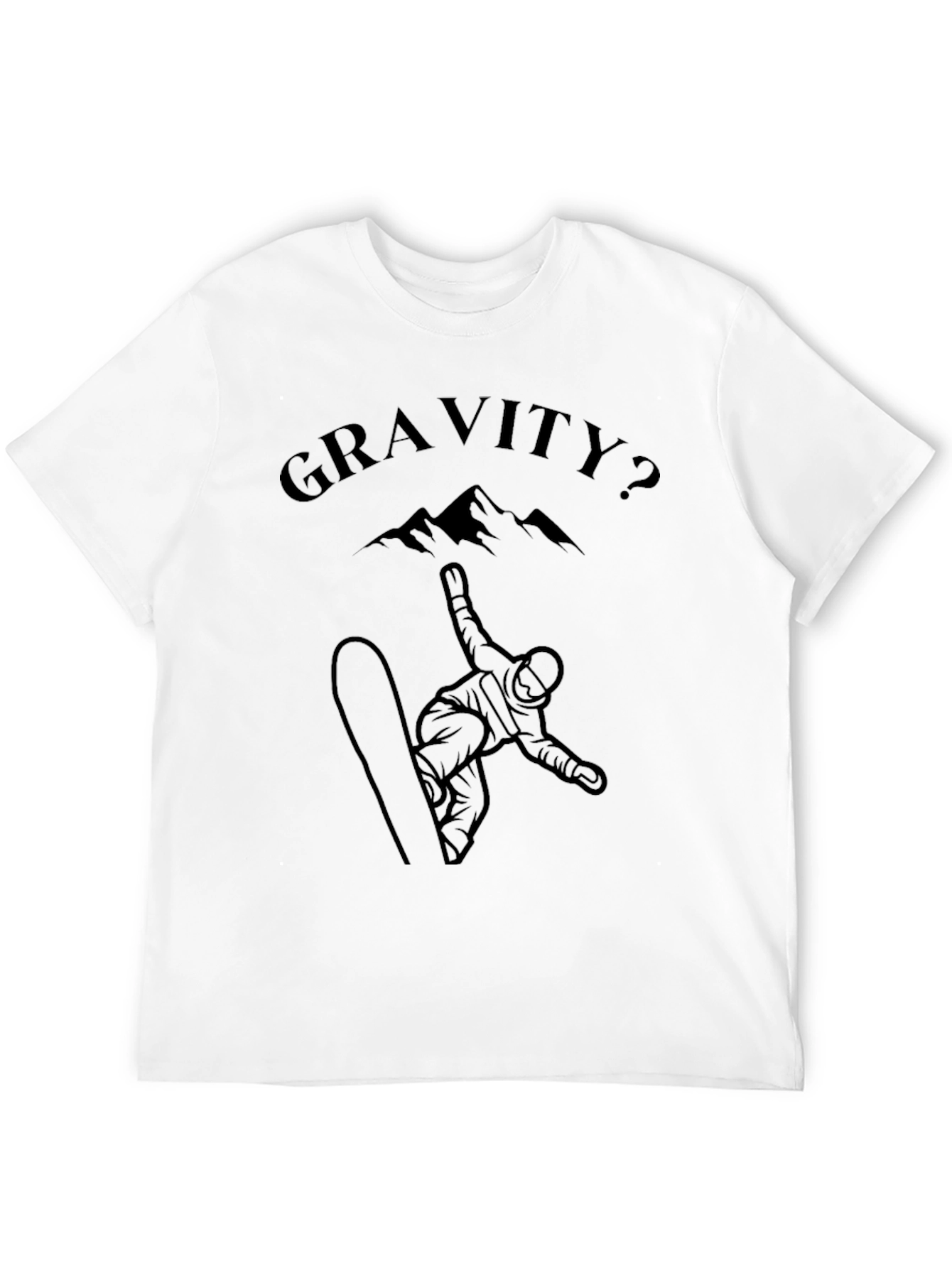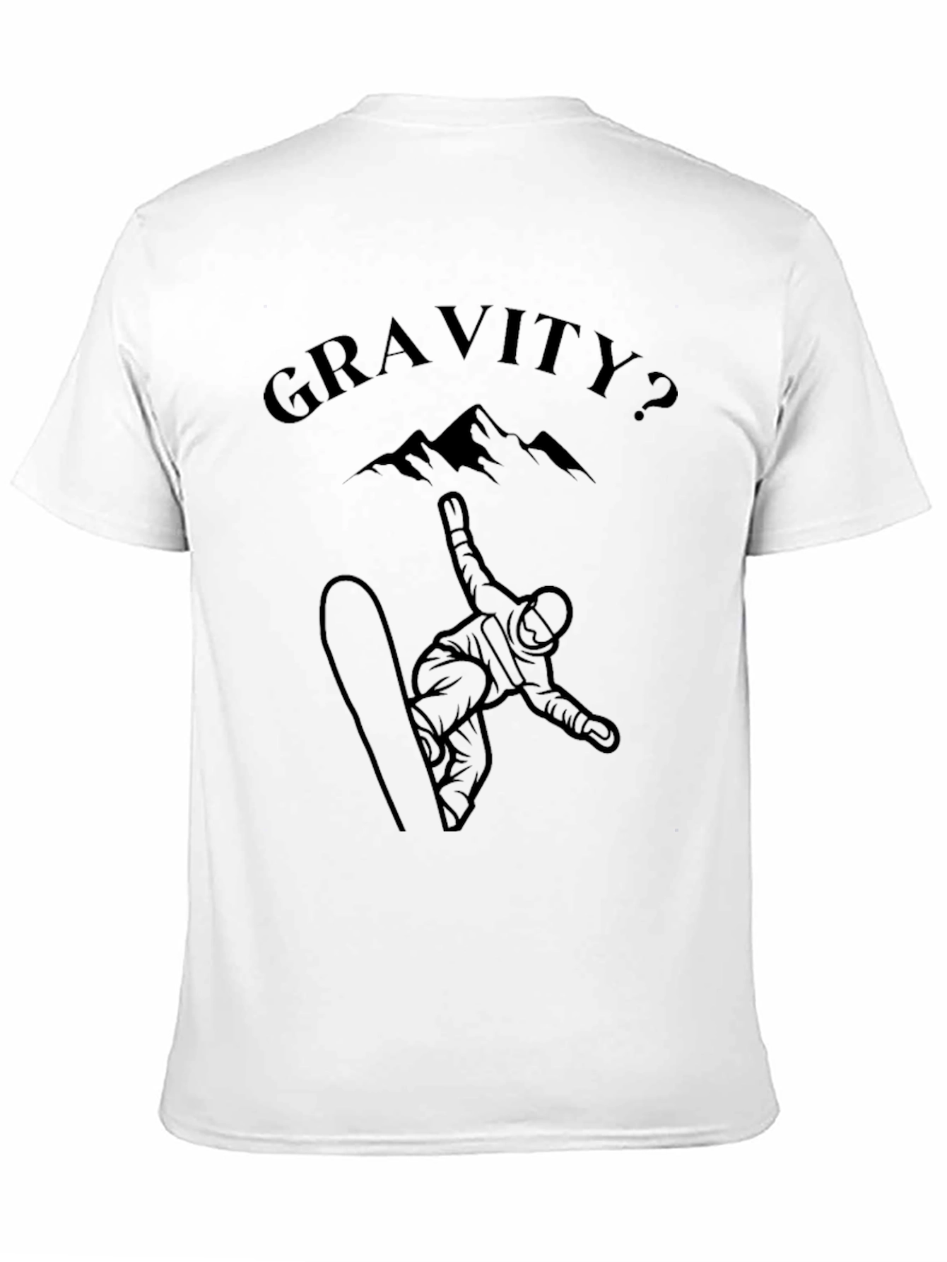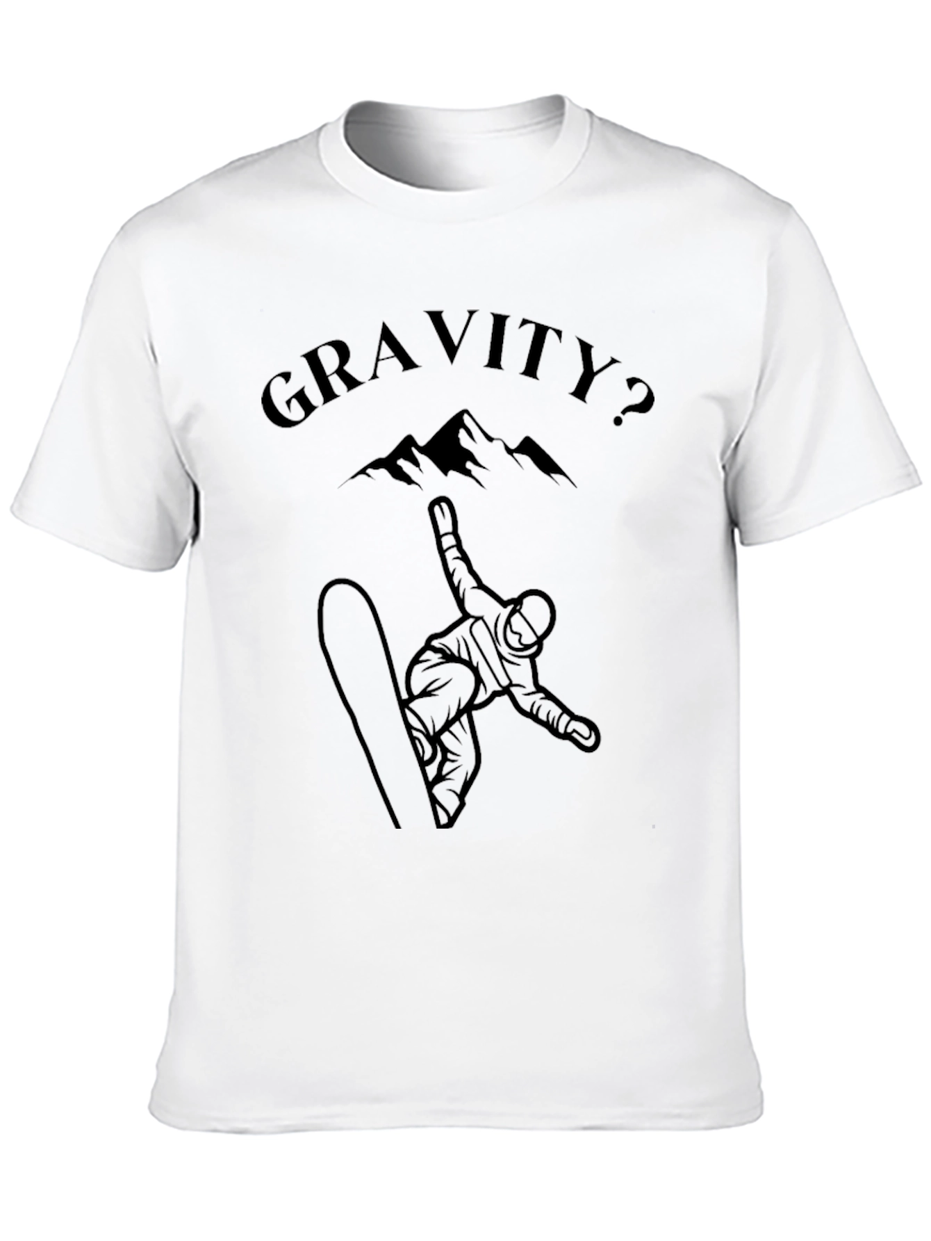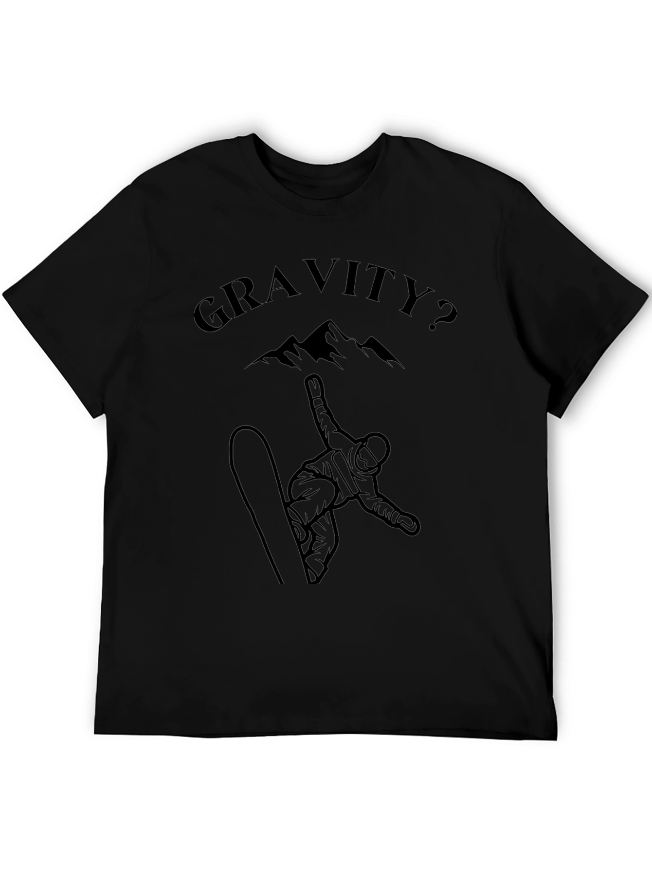 Luce esta llamativa camiseta negra de algodón con un diseño único. Muestra un esquiador haciendo un truco de snowboard frente a unas montañas, acompañado del texto "¿GRAVITY?". Perfecta para los amantes de los deportes de invierno, el snowboard y el humor. Ideal para usar en la montaña o en el día a día, esta camiseta te permite expresar tu pasión por la aventura con estilo. Un regalo original y divertido para amigos y familiares con espíritu aventurero. Fabricada con materiales de alta calidad para una comodidad y durabilidad excepcionales.
