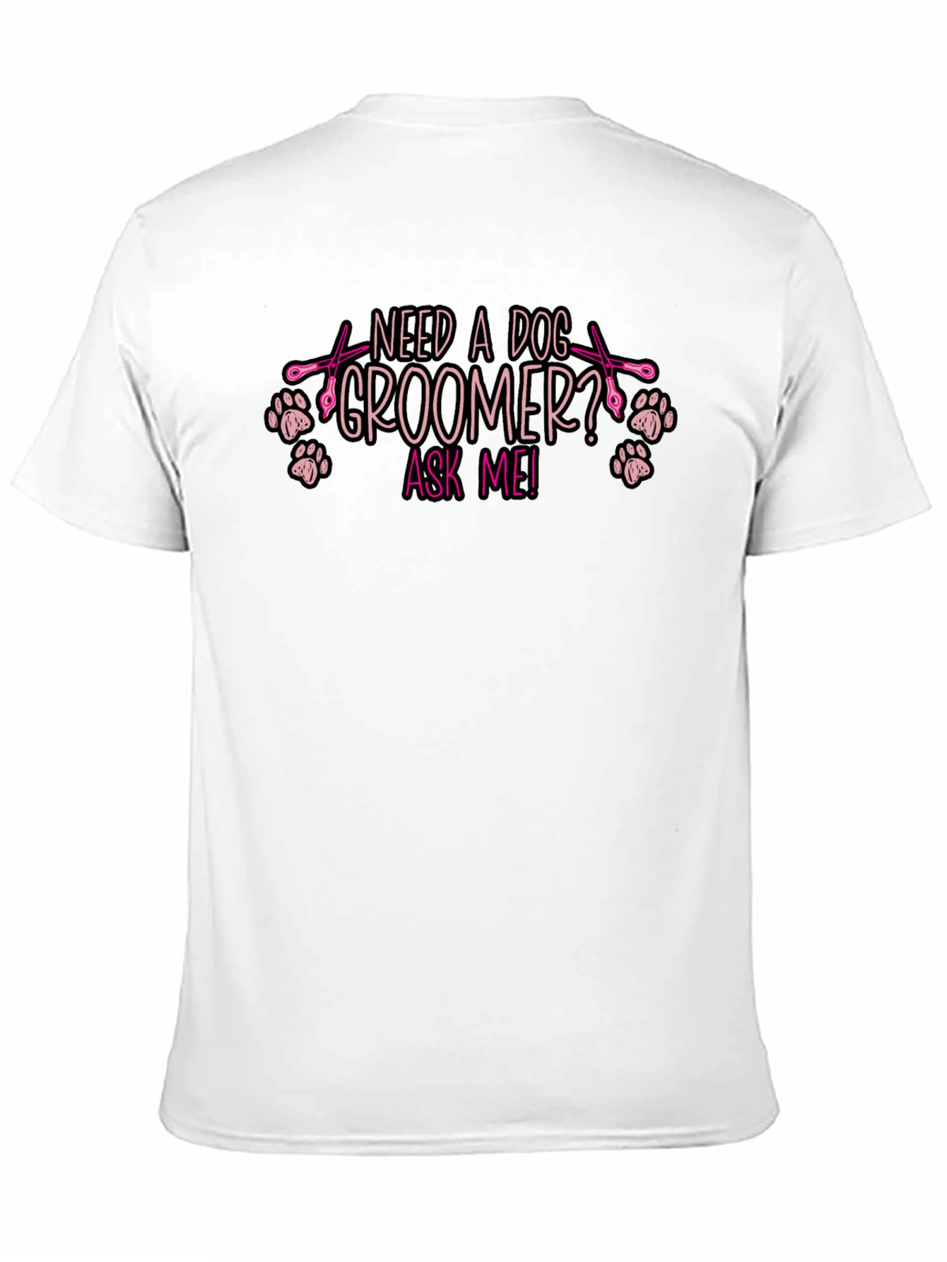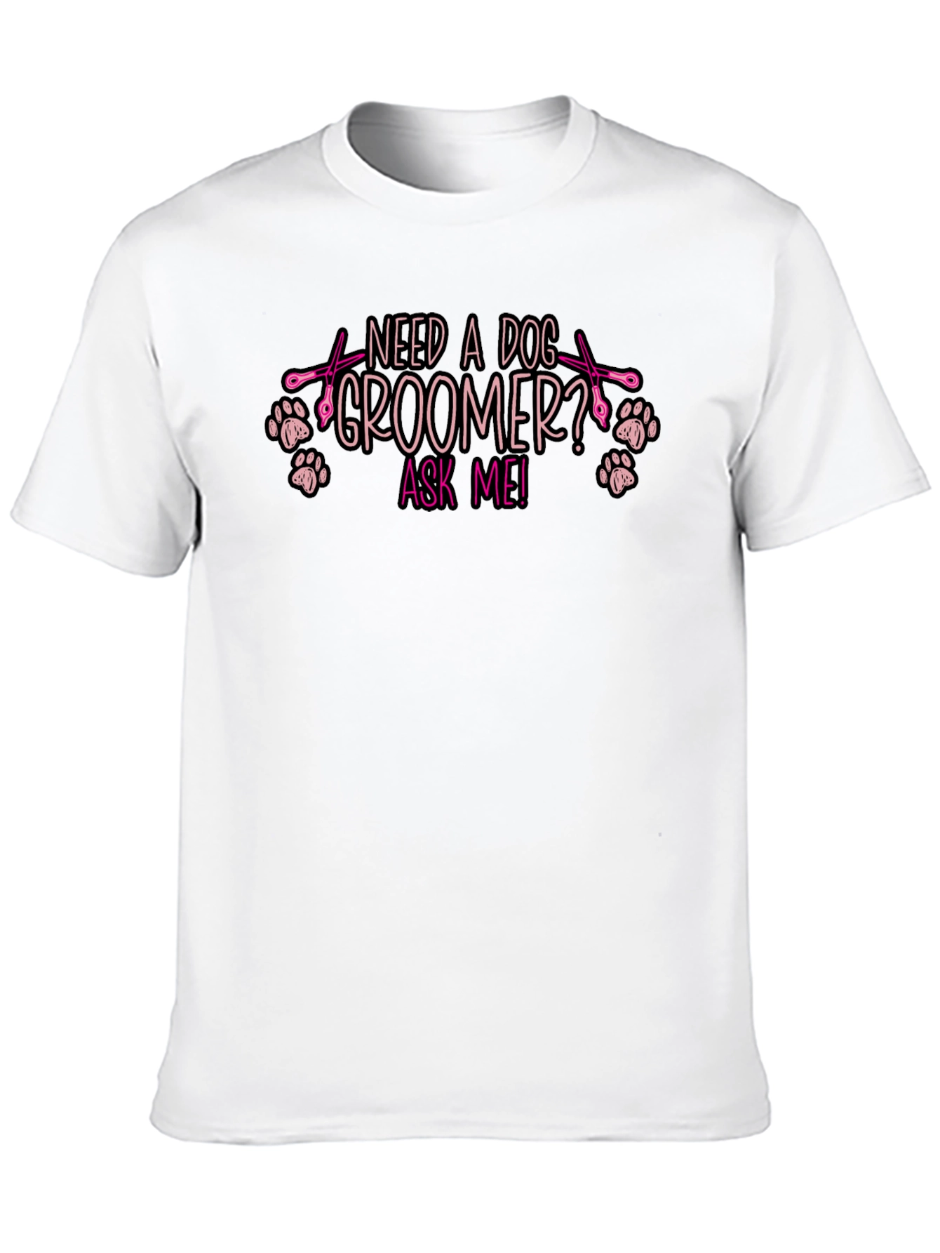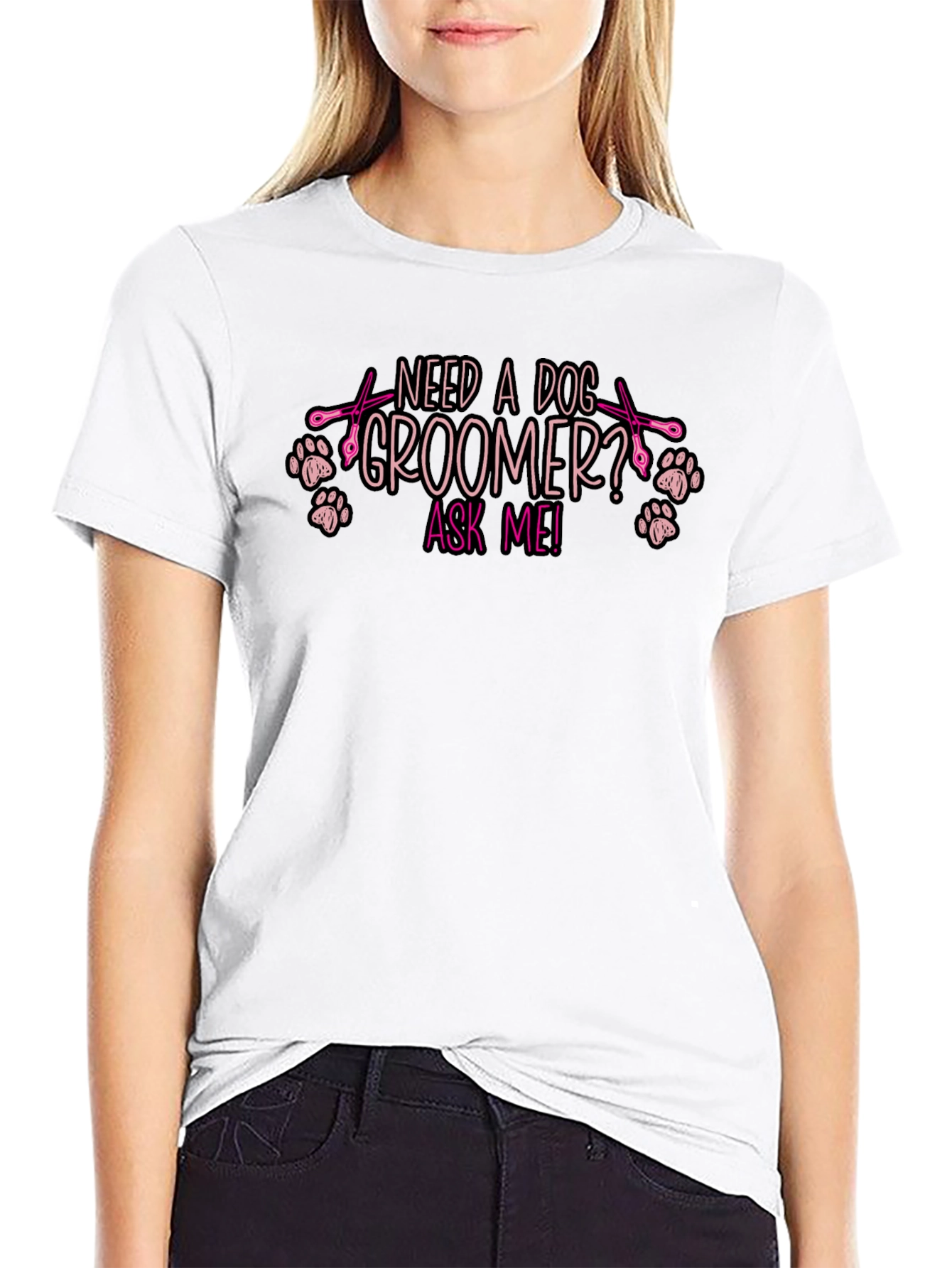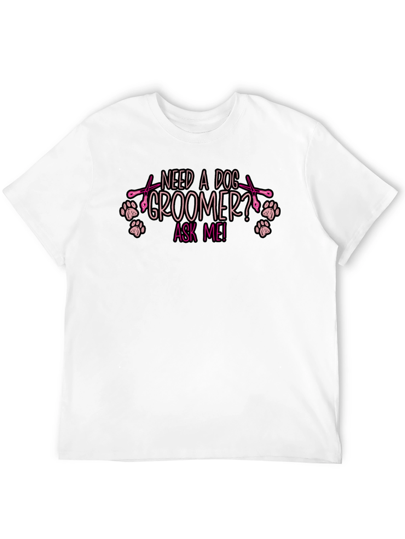 Muestra tu amor por los perros con esta llamativa camiseta negra. El diseño presenta la frase "¿Necesitas un Peluquero Canino?" en letras de color rosa vibrante, adornada con ilustraciones de tijeras y adorables huellas de patas. Fabricada con un tejido suave y cómodo, esta camiseta de corte clásico es perfecta para el uso diario. Ideal para paseos con tu perro, visitas al parque o simplemente para expresar tu pasión por los animales. ¡Llama la atención y demuestra tu dedicación al cuidado de las mascotas con esta divertida y original camiseta!