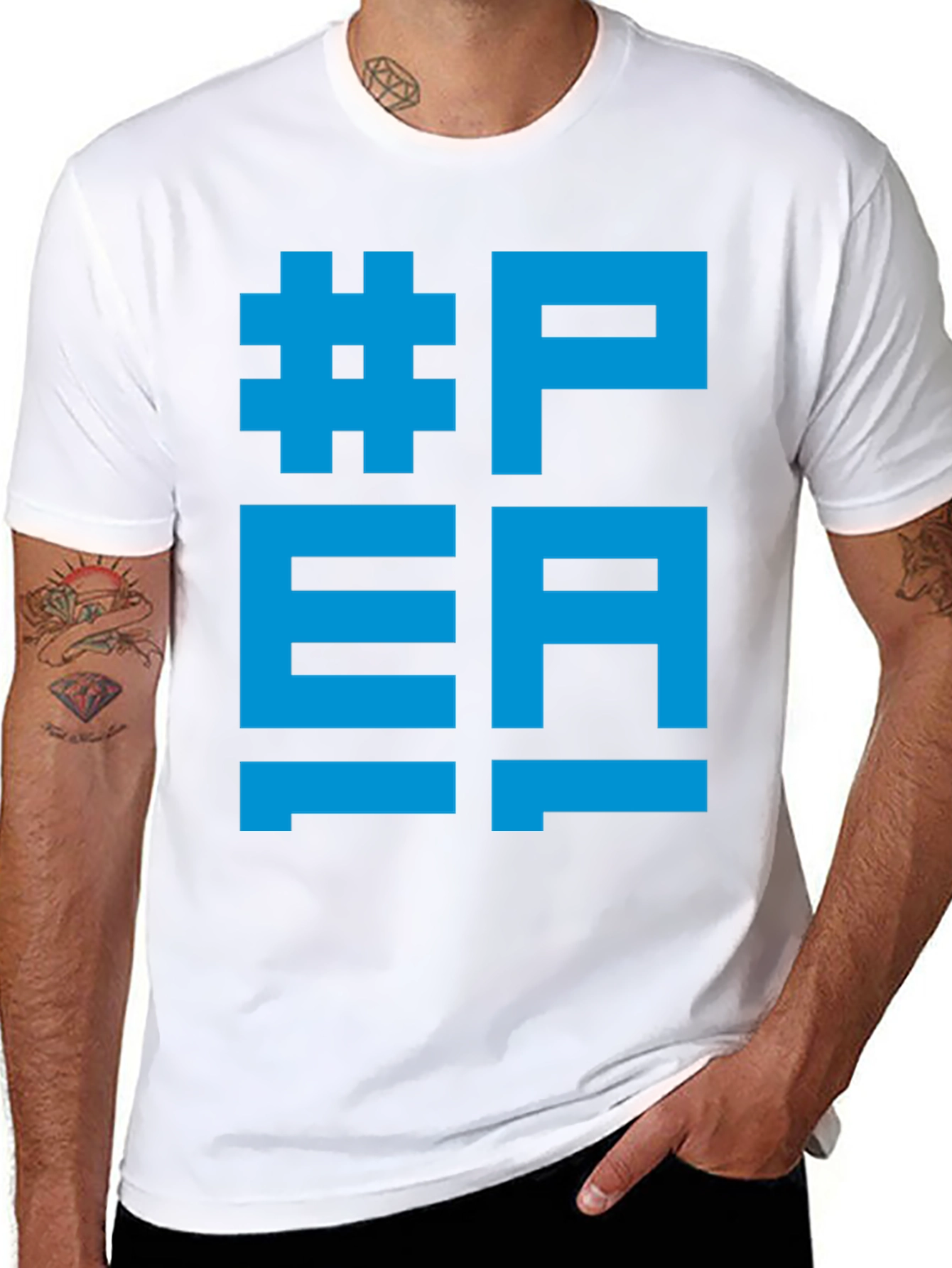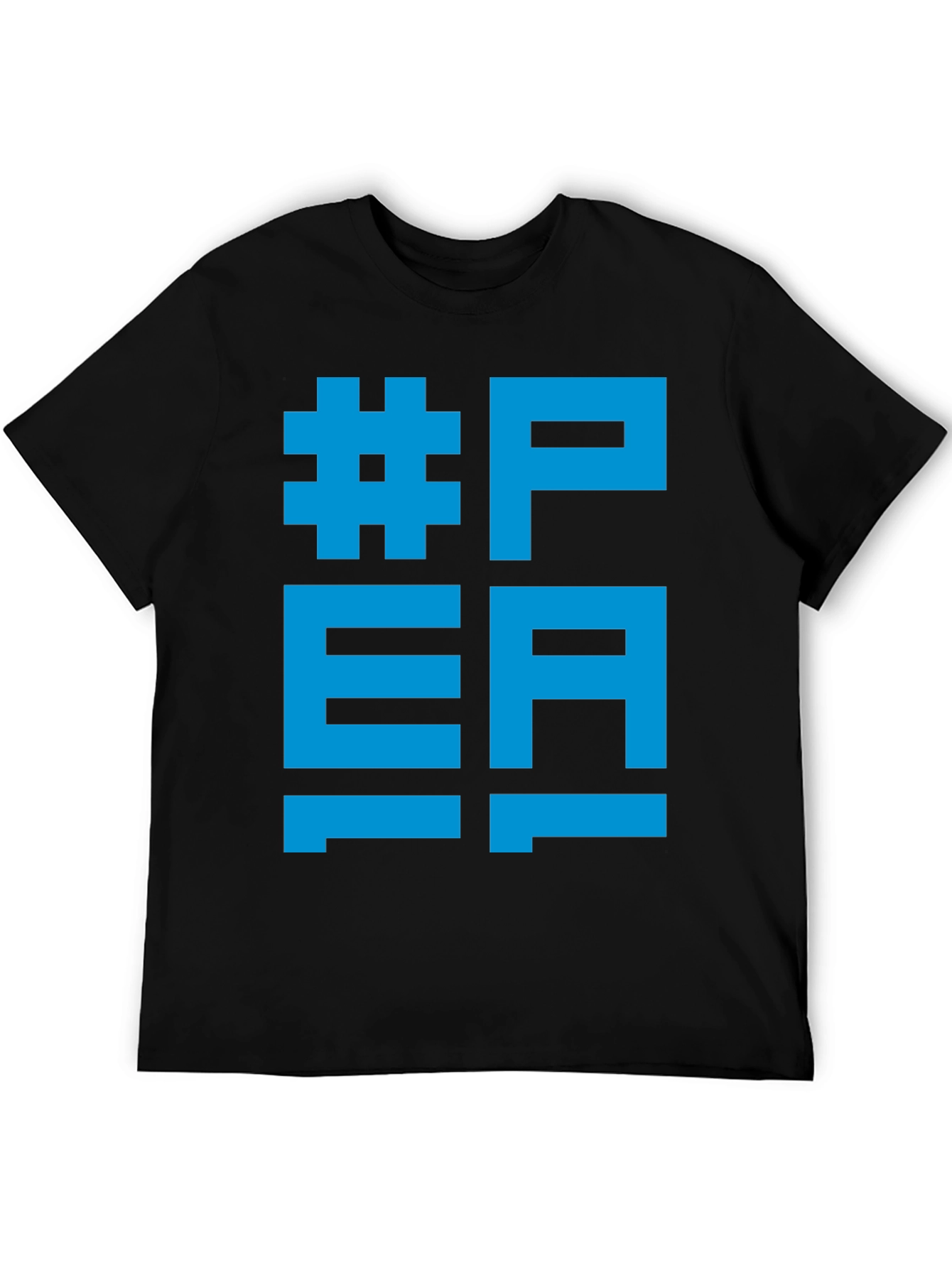 Luce un estilo moderno y llamativo con esta camiseta negra de manga corta. Presenta un diseño gráfico en color azul brillante con el texto #PEA, resaltando por su tipografía única y estilo contemporáneo. Fabricada en un material suave al tacto, esta camiseta es perfecta para un look casual y cómodo. Ideal para expresar tu personalidad y destacar en cualquier ocasión. Combínala con tus jeans o shorts favoritos para un outfit relajado pero con estilo. ¡Atrévete a lucir diferente con esta original camiseta!