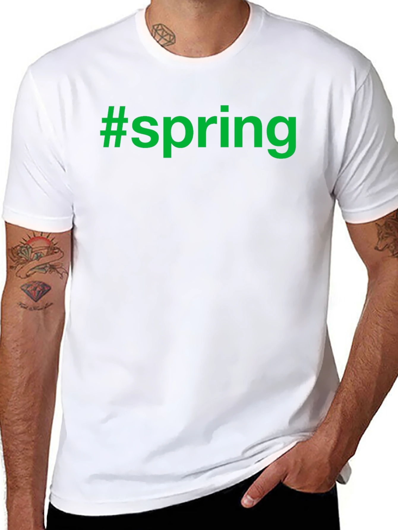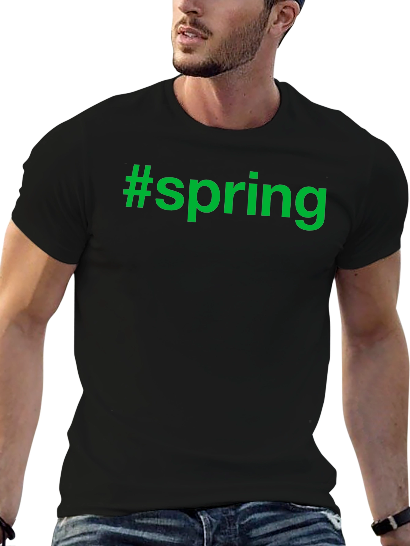 Presentamos esta camiseta negra de manga corta para hombre, perfecta para un look casual y moderno. Con un diseño simple pero llamativo, destaca la etiqueta "#spring" en color verde brillante en el pecho, añadiendo un toque fresco y actual. Hecha de un material suave y cómodo, ideal para usar durante todo el día. Esta camiseta es perfecta para combinar con jeans o pantalones casuales para un estilo relajado pero con onda. ¡Añade un toque primaveral a tu guardarropa!