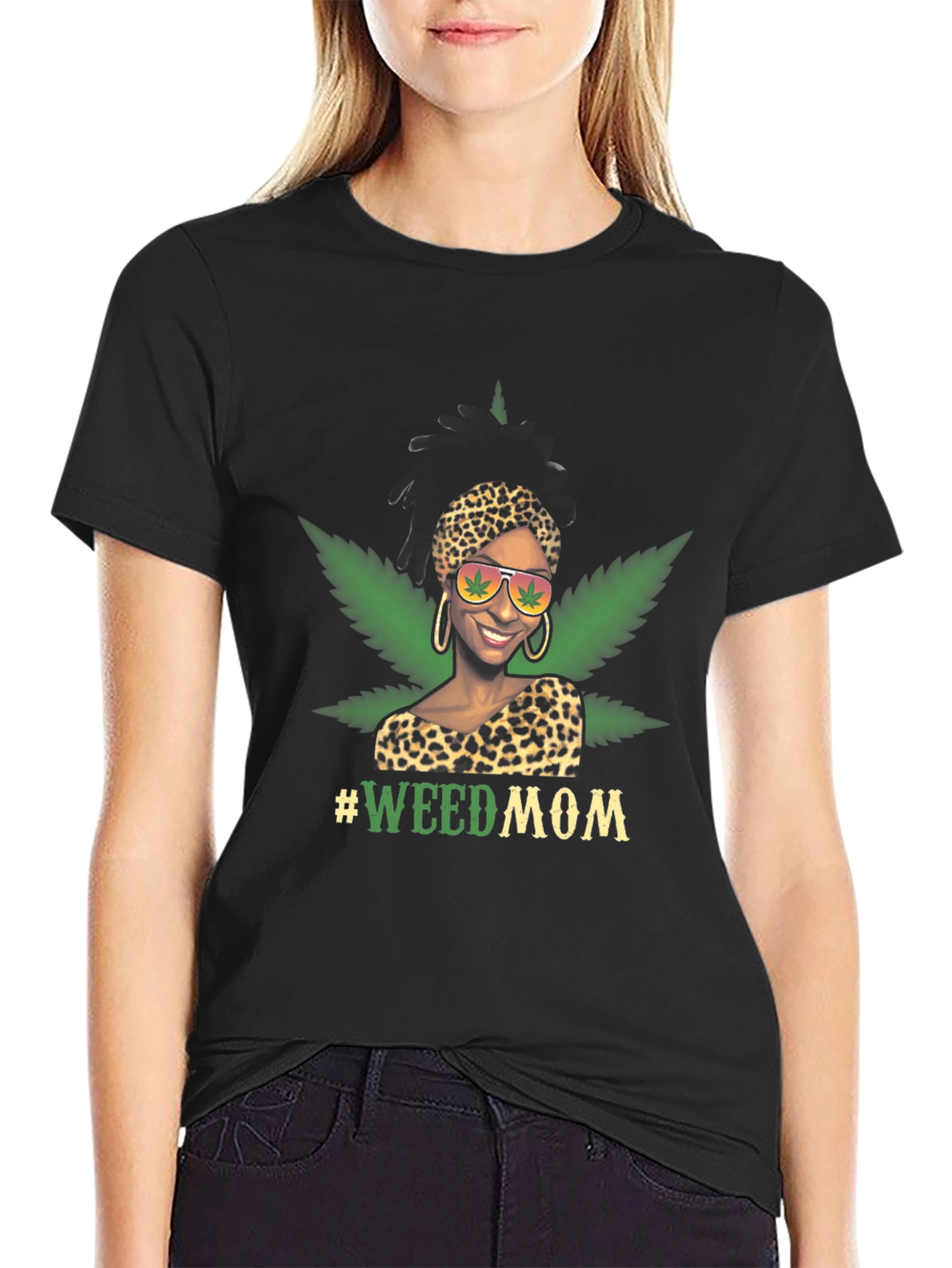 Camiseta Negra #WeedMom Diseño Gráfico Divertido