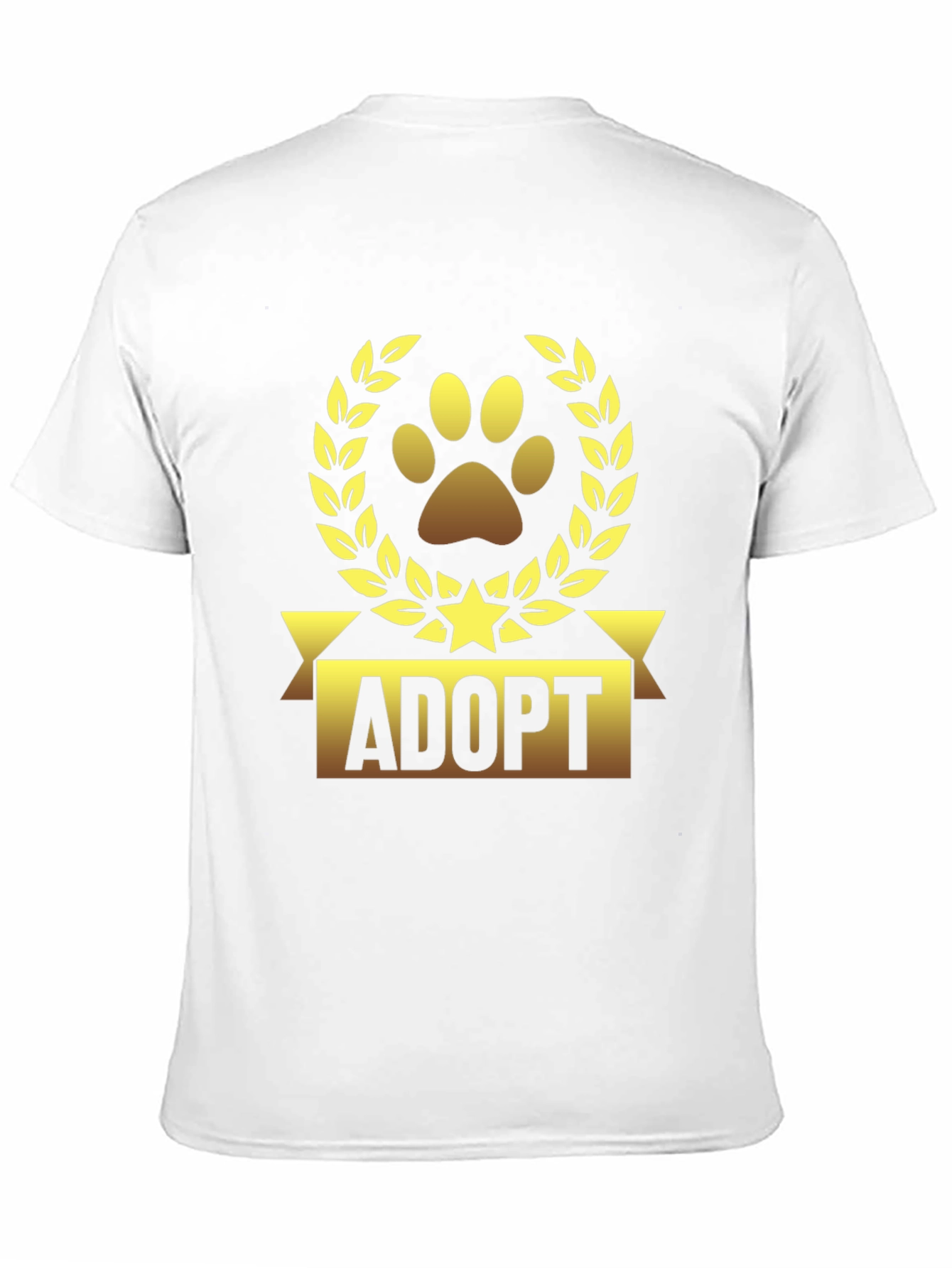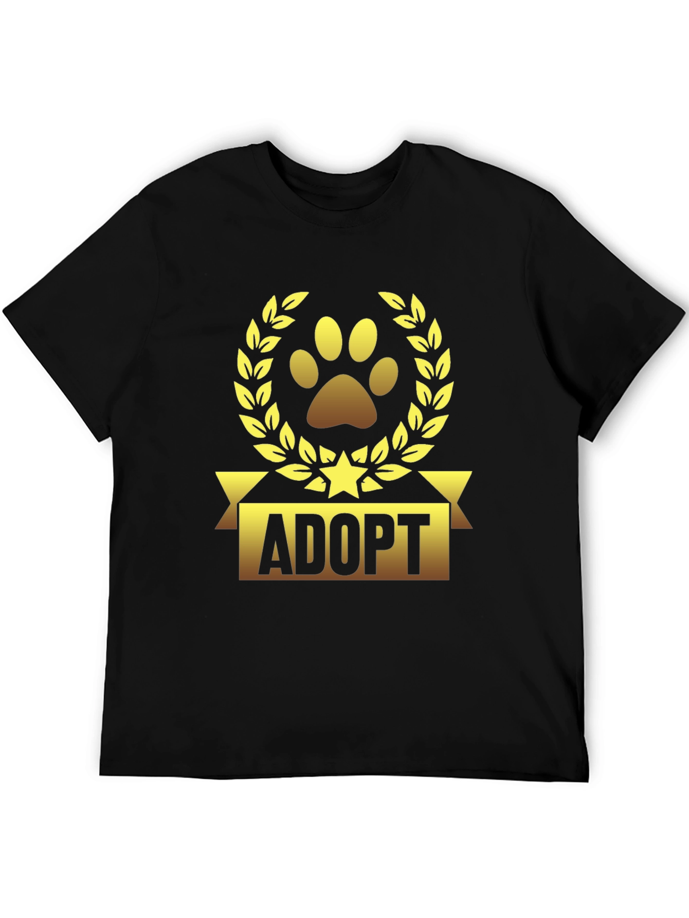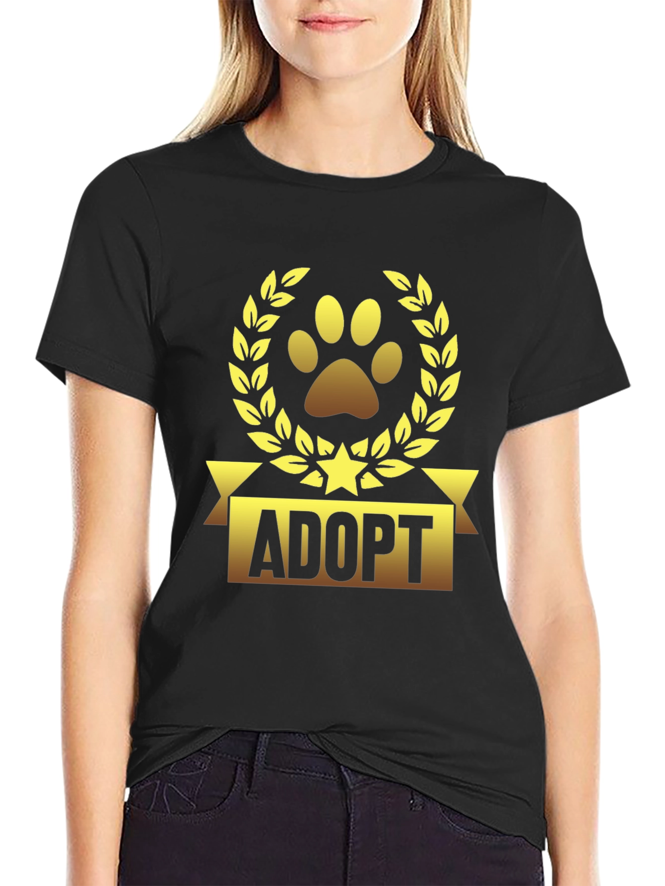 Luce esta elegante camiseta negra con un diseño único que promueve la adopción de mascotas. El llamativo estampado dorado presenta una huella de pata rodeada de una corona de hojas, sobre una pancarta con la palabra "ADOPT". Fabricada con materiales suaves y cómodos, esta camiseta es ideal para usar a diario y mostrar tu apoyo a los animales necesitados. Perfecta para amantes de los animales, voluntarios de refugios o cualquier persona que quiera crear conciencia sobre la adopción. ¡Vístete con estilo y haz una declaración!