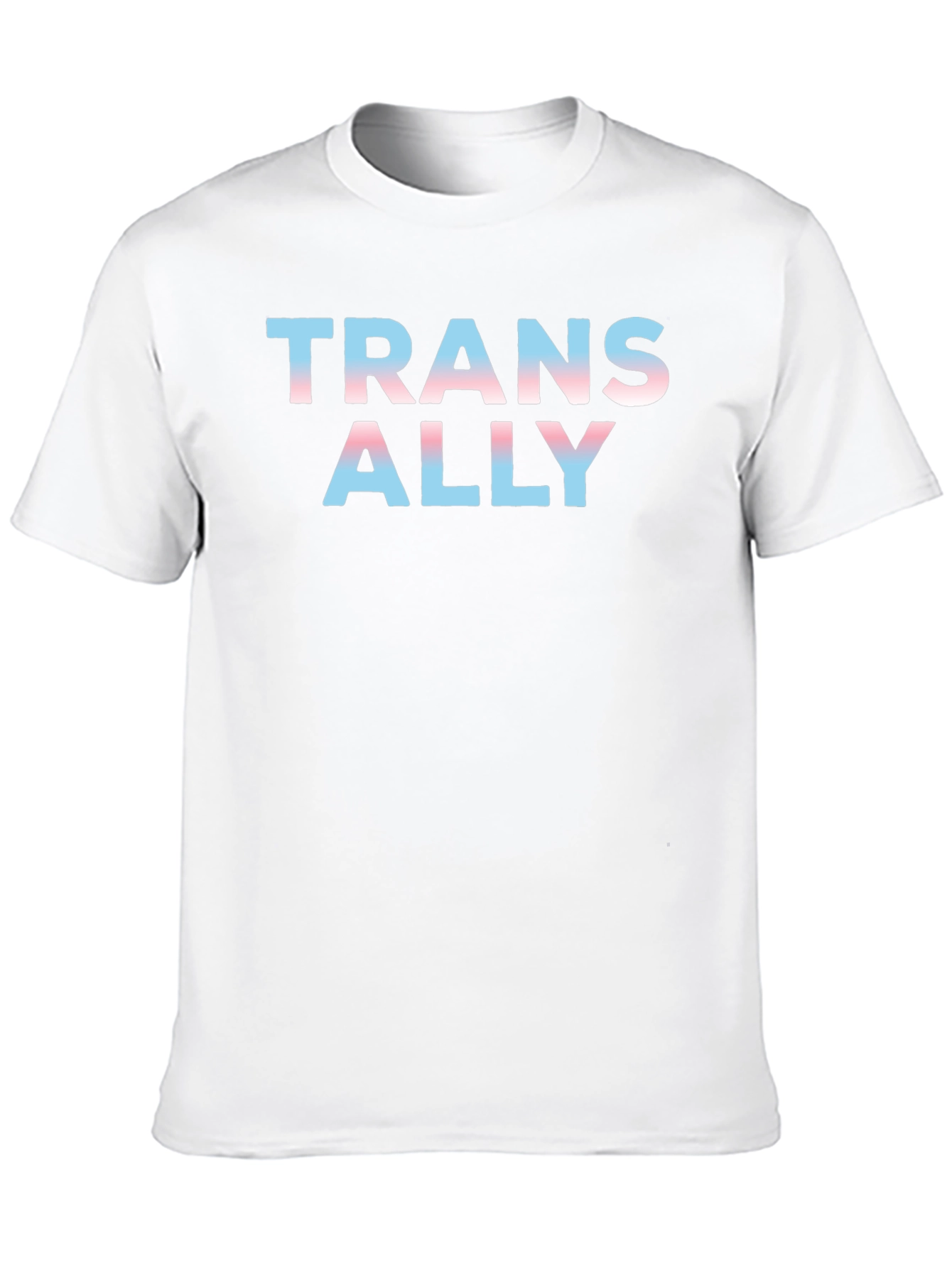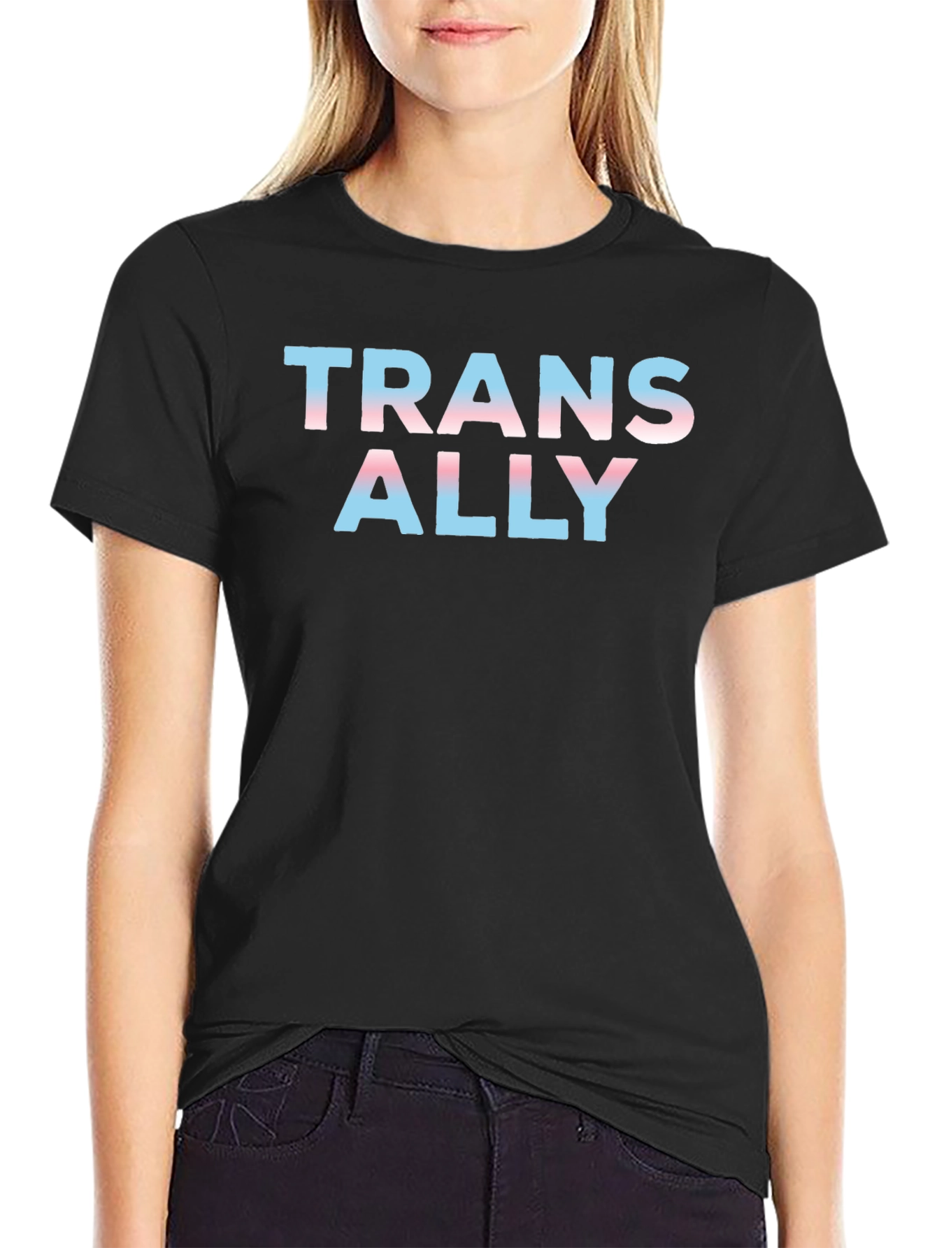 Muestra tu apoyo con esta elegante camiseta negra que proclama "TRANS ALLY" en llamativos colores azul, rosa y blanco, los colores de la bandera transgénero. Perfecta para el uso diario, eventos de orgullo o como una declaración de apoyo a la comunidad transgénero. Su diseño sencillo y su mensaje claro la hacen una prenda versátil que combina con cualquier estilo. El suave tejido garantiza comodidad durante todo el día. Llévala con orgullo y demuestra tu compromiso con la inclusión y la igualdad.