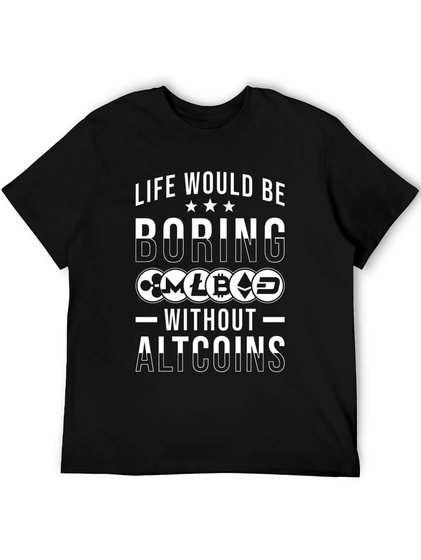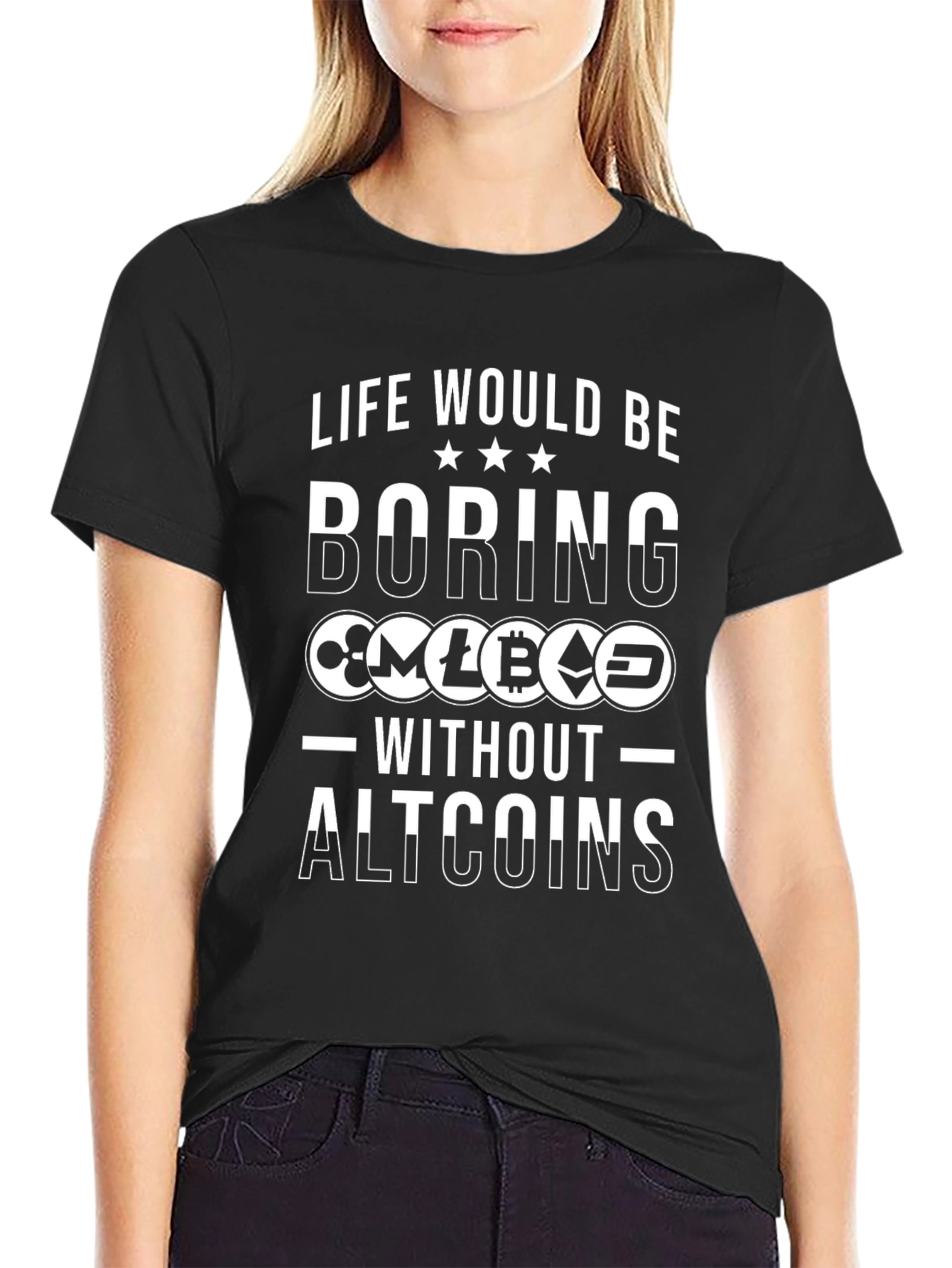 Luce esta moderna camiseta negra con un diseño llamativo para los amantes de las criptomonedas. La frase "Life would be boring without Altcoins" destaca el espíritu de la innovación financiera. El diseño integra los logos de varias criptomonedas populares, ideal para entusiastas del mundo crypto. Fabricada en materiales suaves y cómodos, esta camiseta es perfecta para uso diario, eventos crypto o simplemente para mostrar tu pasión por las monedas digitales. ¡Añade un toque único y moderno a tu guardarropa!