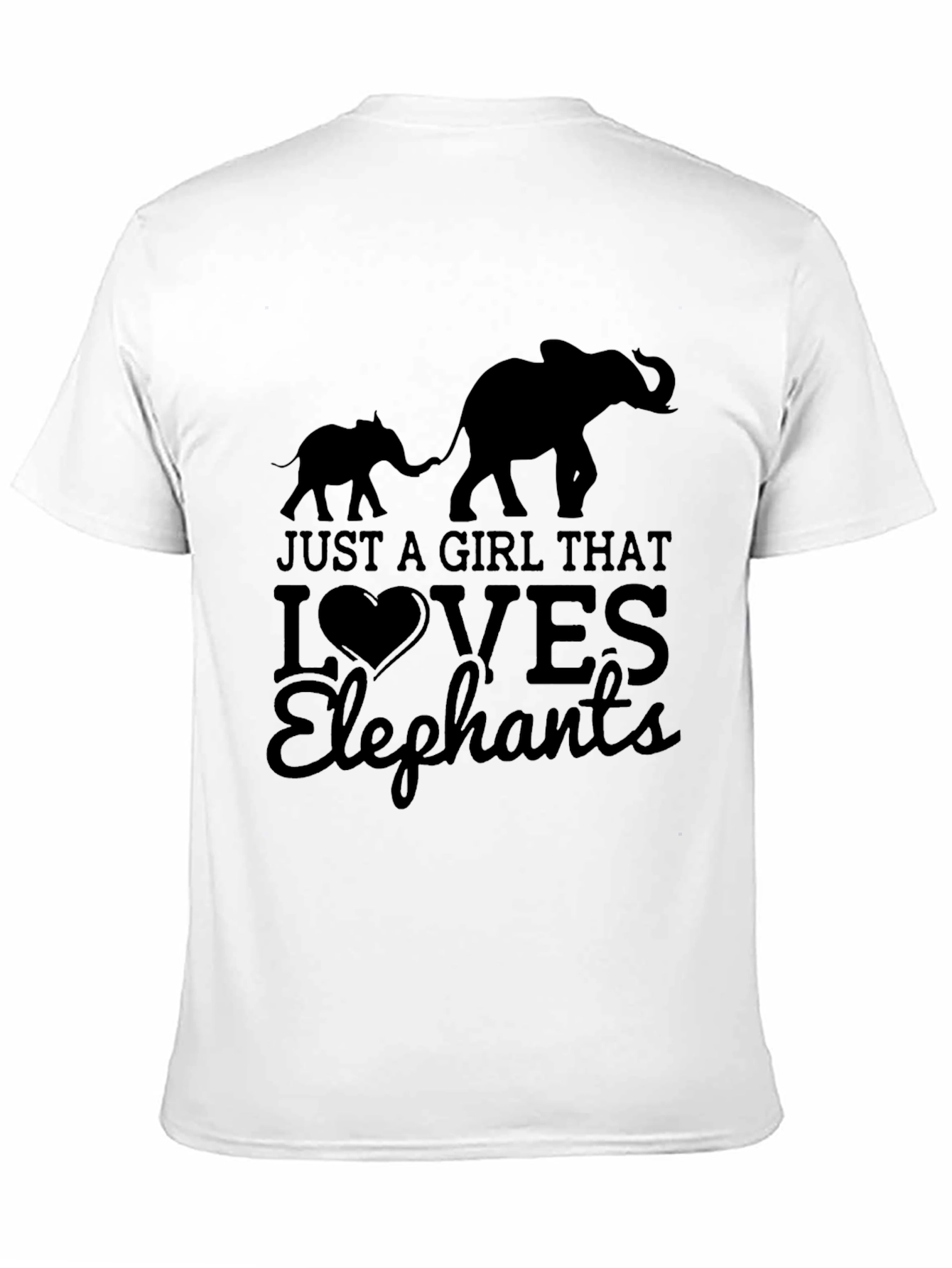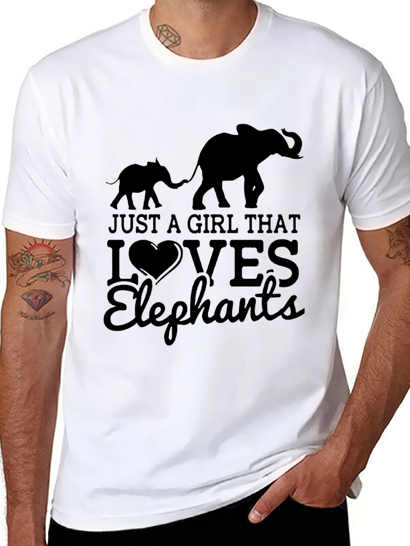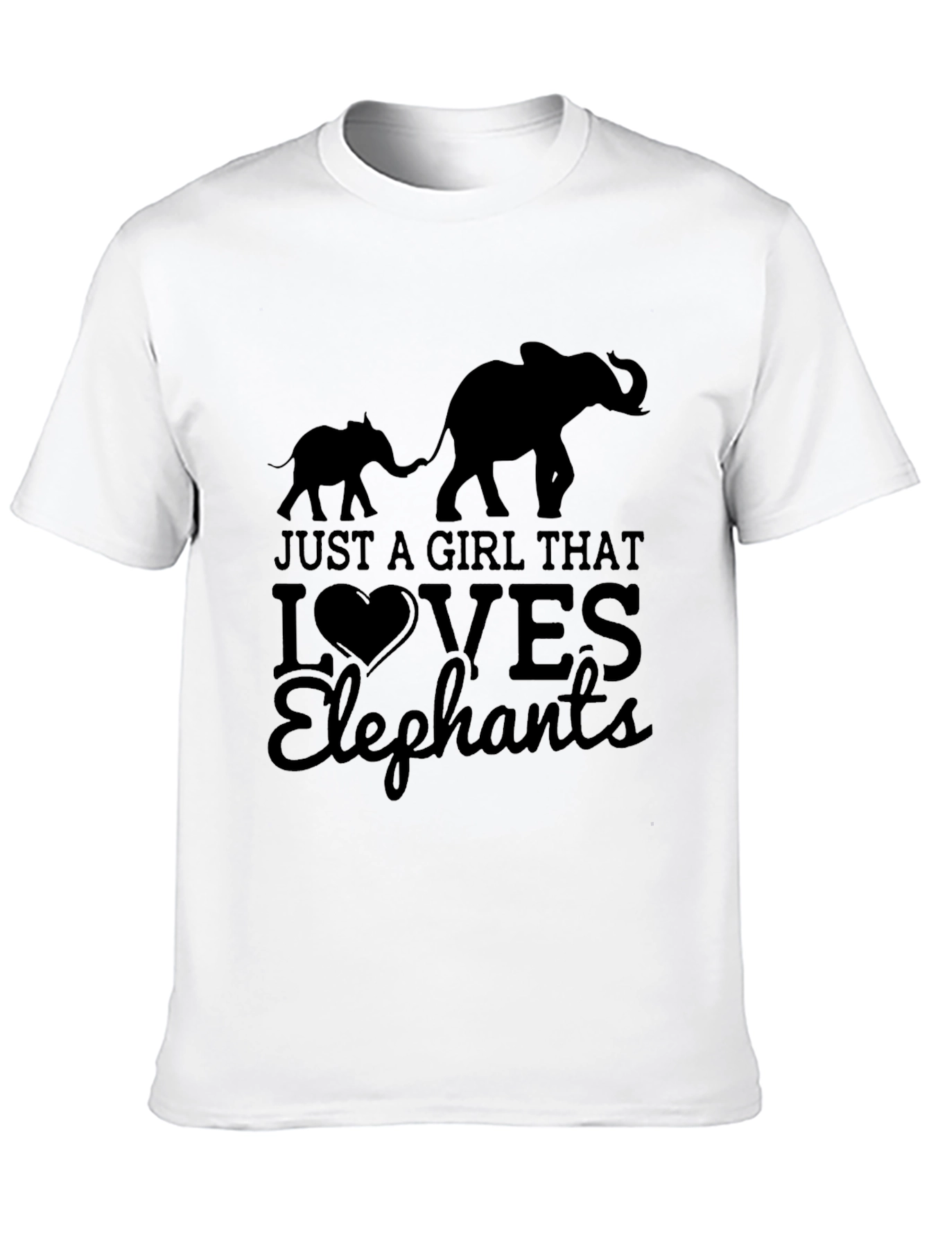 Muestra tu amor por los elefantes con esta encantadora camiseta negra. Con un diseño gráfico de una elefanta adulta y su cría, junto con la frase "Just a girl that LOVES Elephants" (Solo una chica que AMA a los elefantes) y un corazón sutilmente integrado, esta camiseta es perfecta para los amantes de estos majestuosos animales. Su color negro clásico la hace versátil para combinar con cualquier outfit casual. Ideal para usar en el día a día, en eventos informales o como un regalo especial para esa persona que adora los elefantes. Fabricada con un material suave al tacto que promete comodidad y durabilidad.