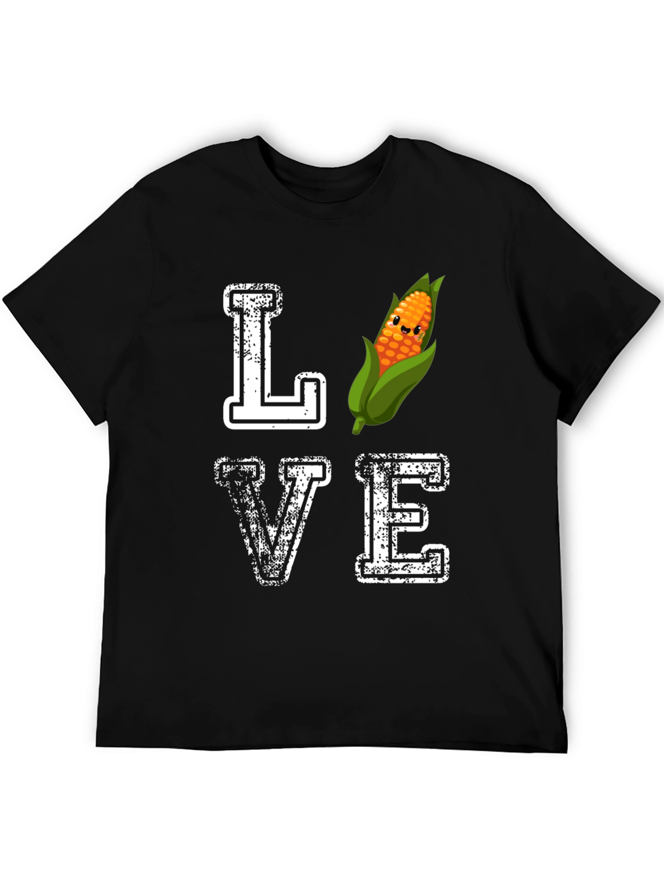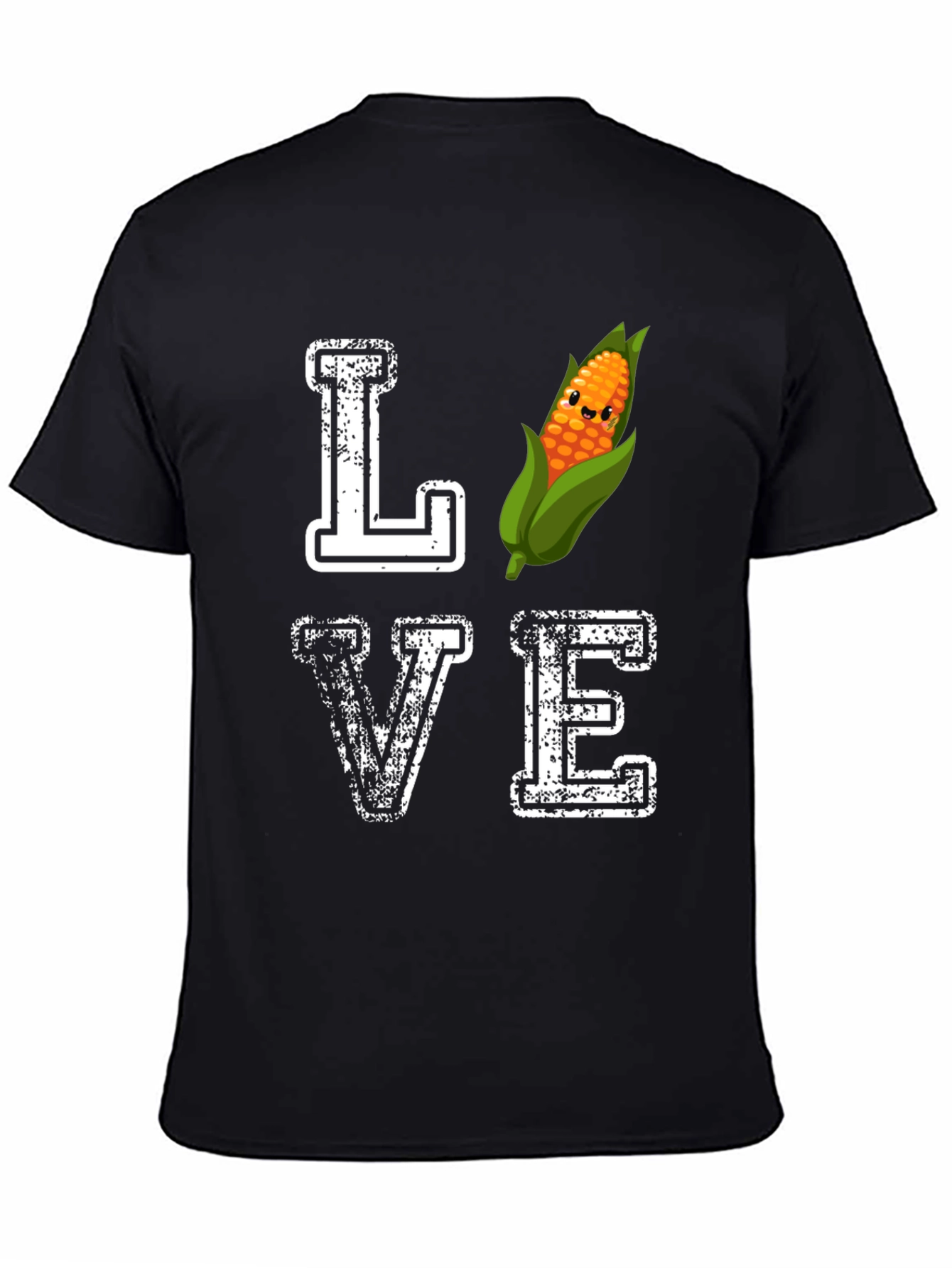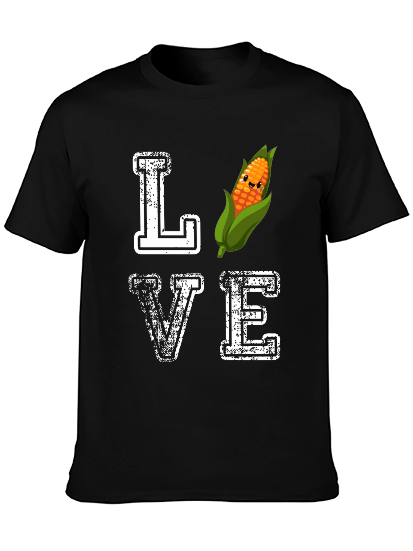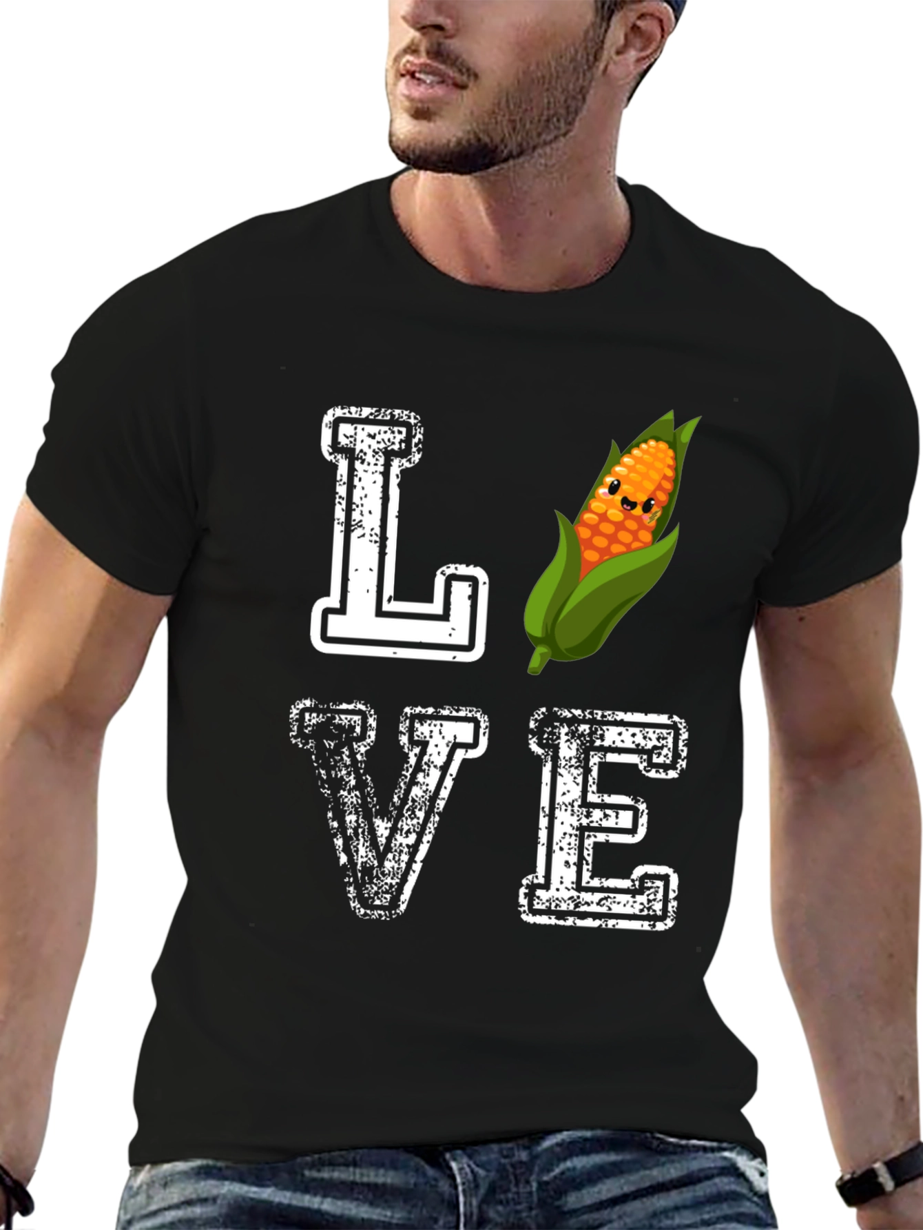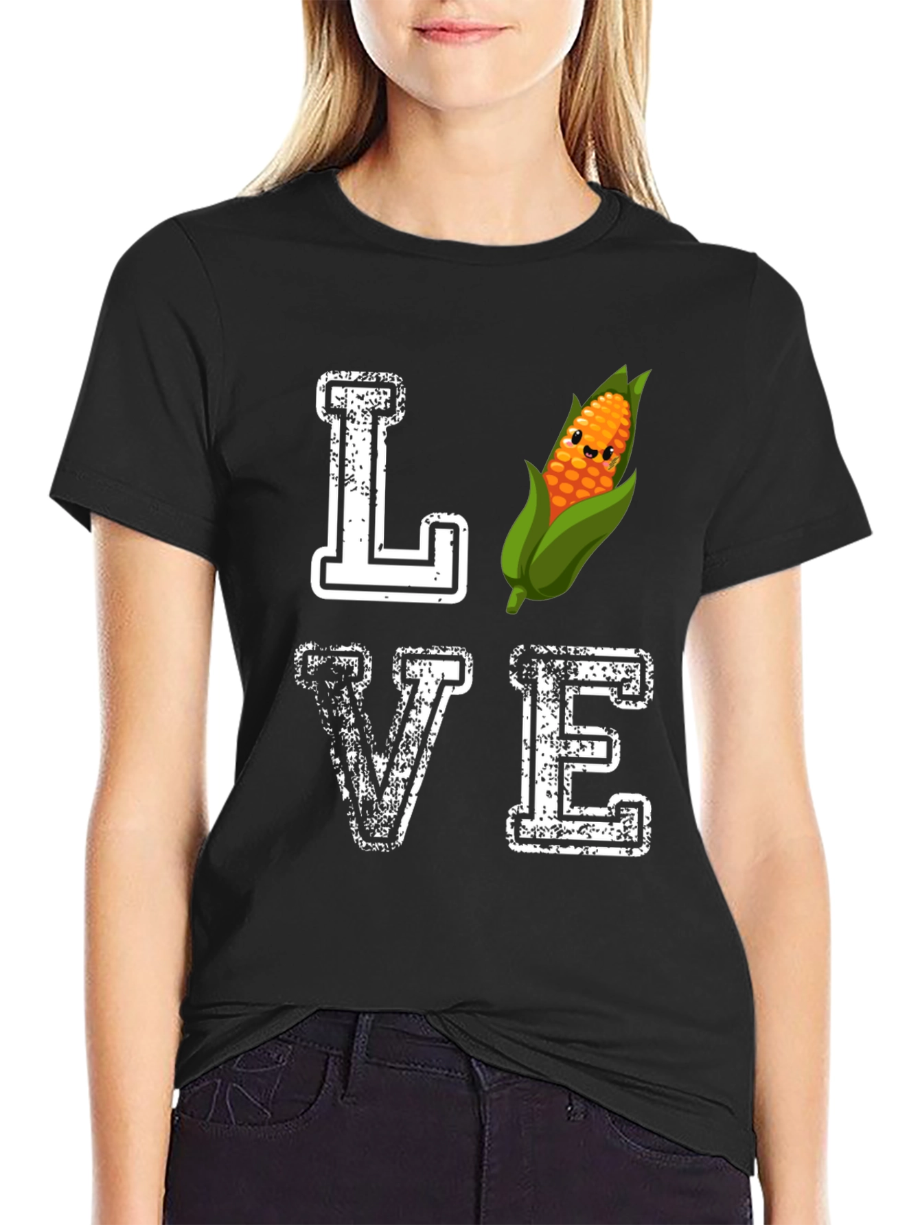 Muestra tu amor por el maíz con esta camiseta negra única. Presenta un diseño divertido que deletrea "AMOR", con una adorable caricatura de una mazorca de maíz reemplazando la "O". La impresión envejecida le da un toque vintage. Perfecta para los amantes del maíz, agricultores o cualquier persona con un gran sentido del humor. Úsala para eventos casuales, festivales de comida o simplemente para expresar tu personalidad amante de la comida. Confeccionada con un tejido cómodo y duradero, esta camiseta seguramente se convertirá en una de tus favoritas.